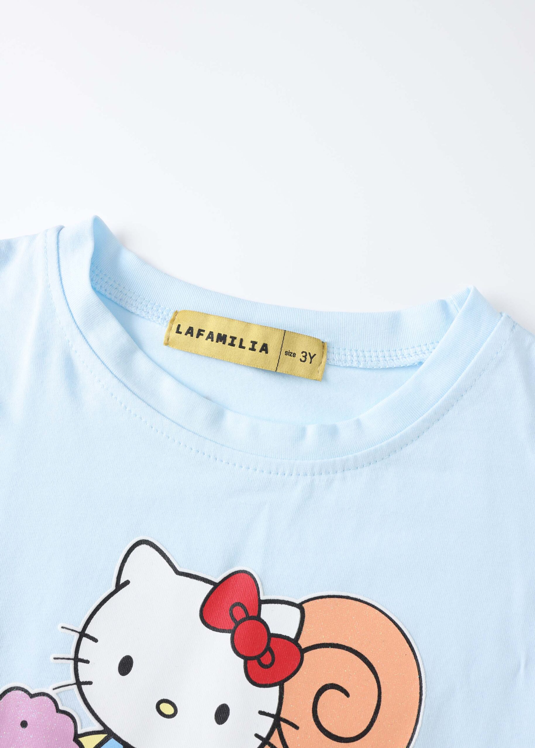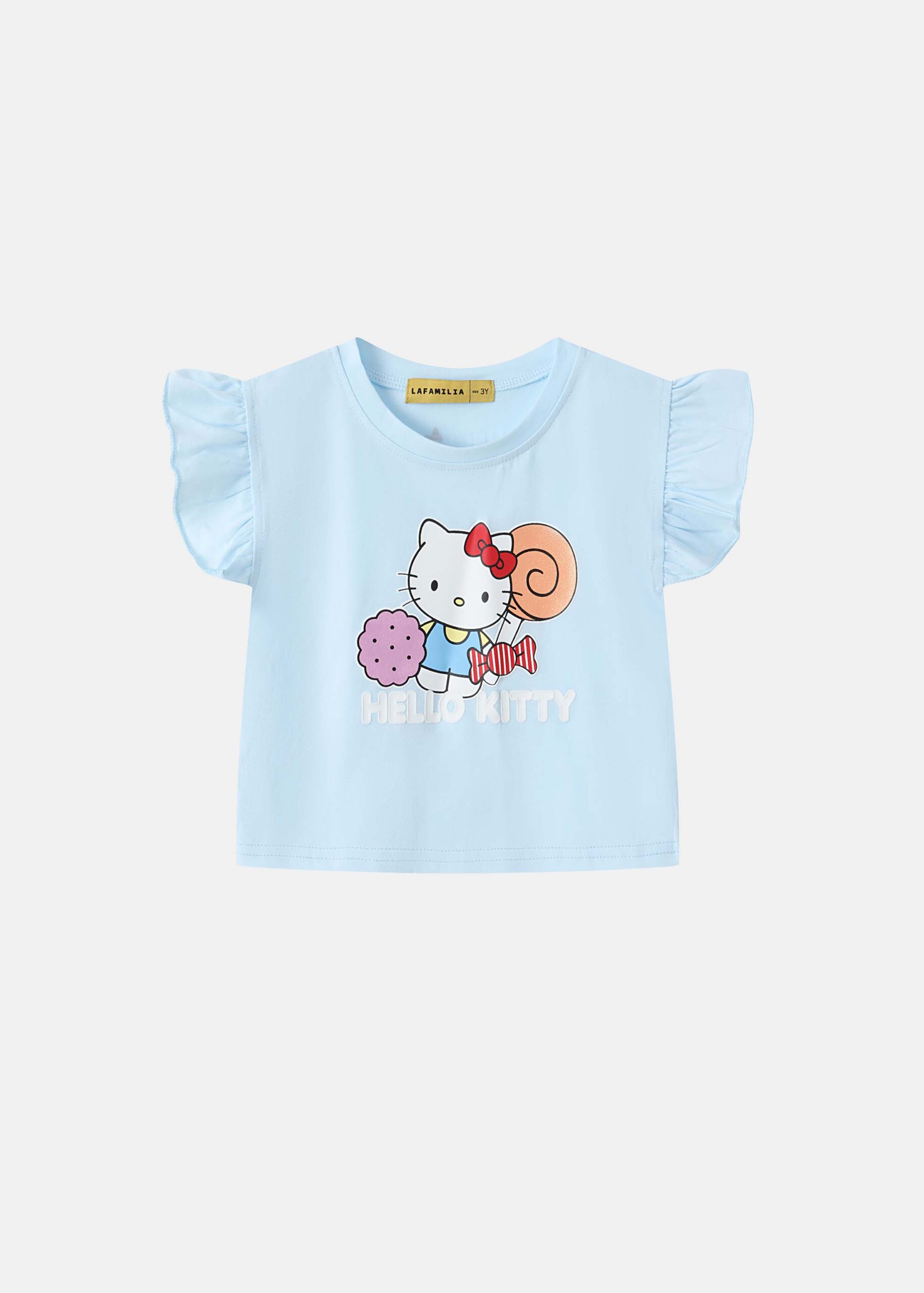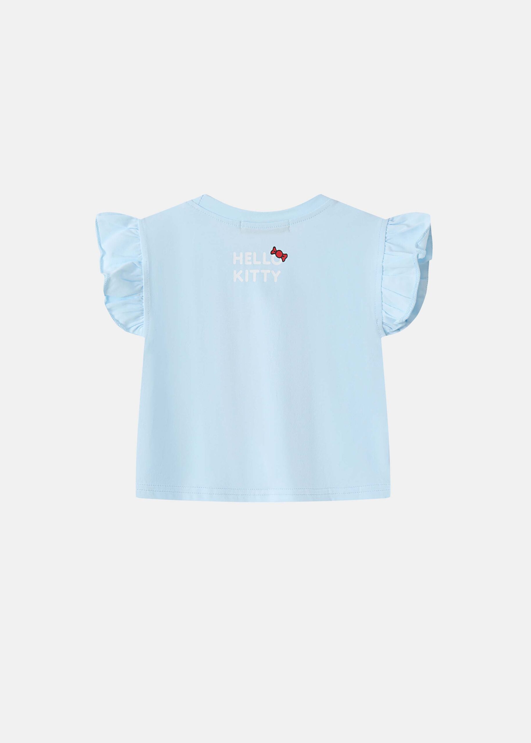 Baby girl t-shirt, “Hello Kitty” printed from the front and back, round neck, short ruffled sleeves, unique and modern