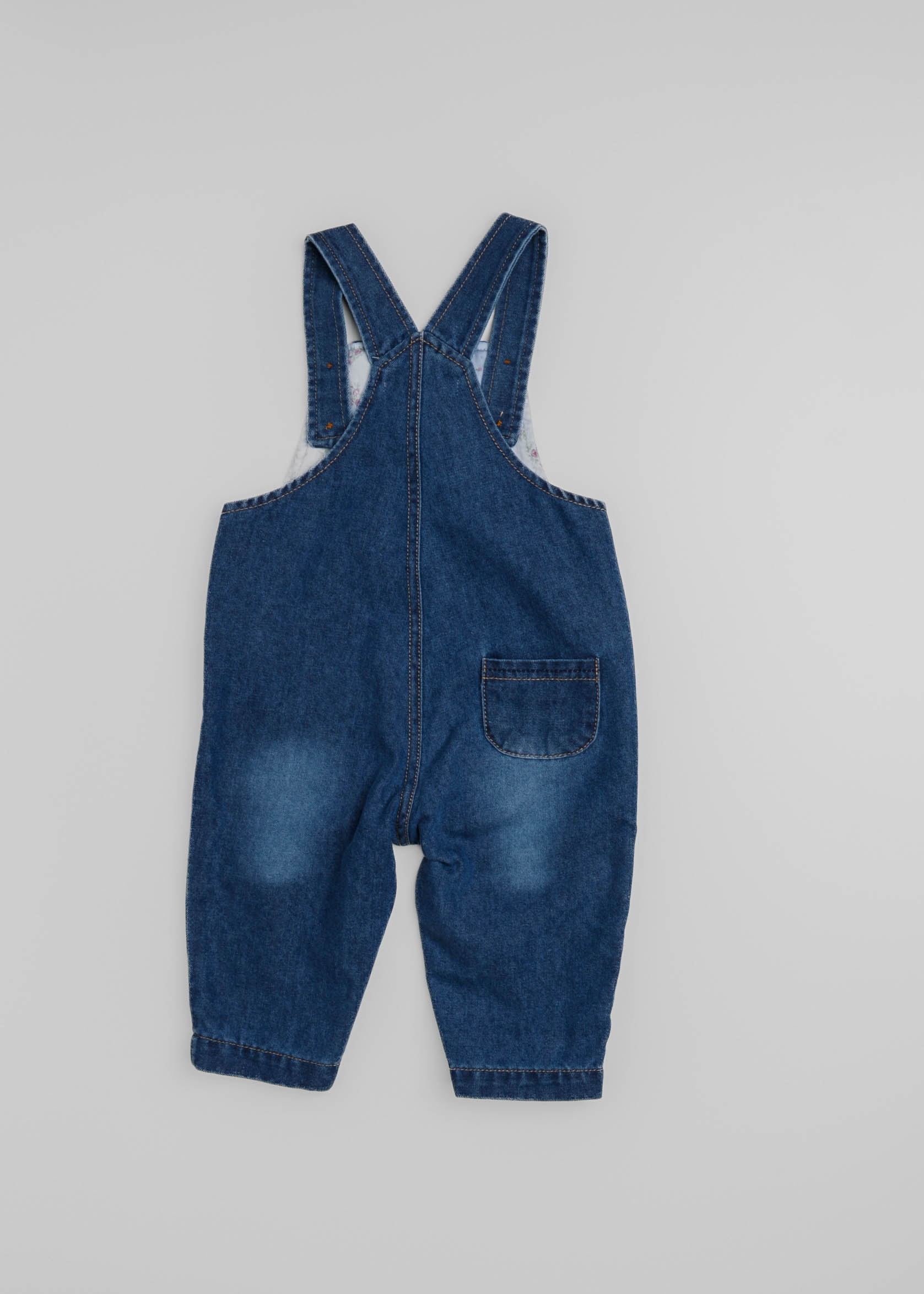 Baby girl overall, jeans, ruffled design from the front, sleeveless with shoulder straps and front buttons to close, unique and practical