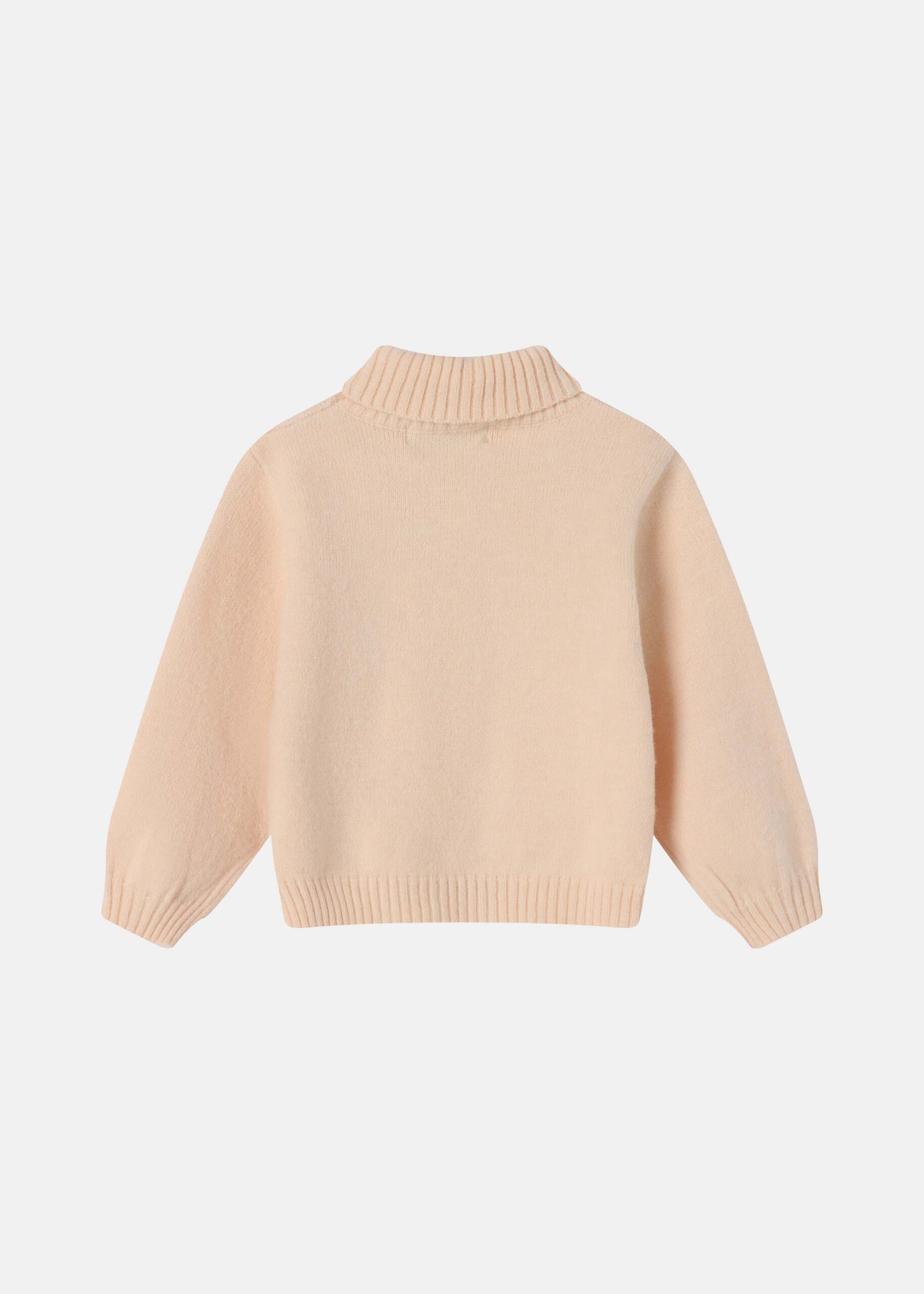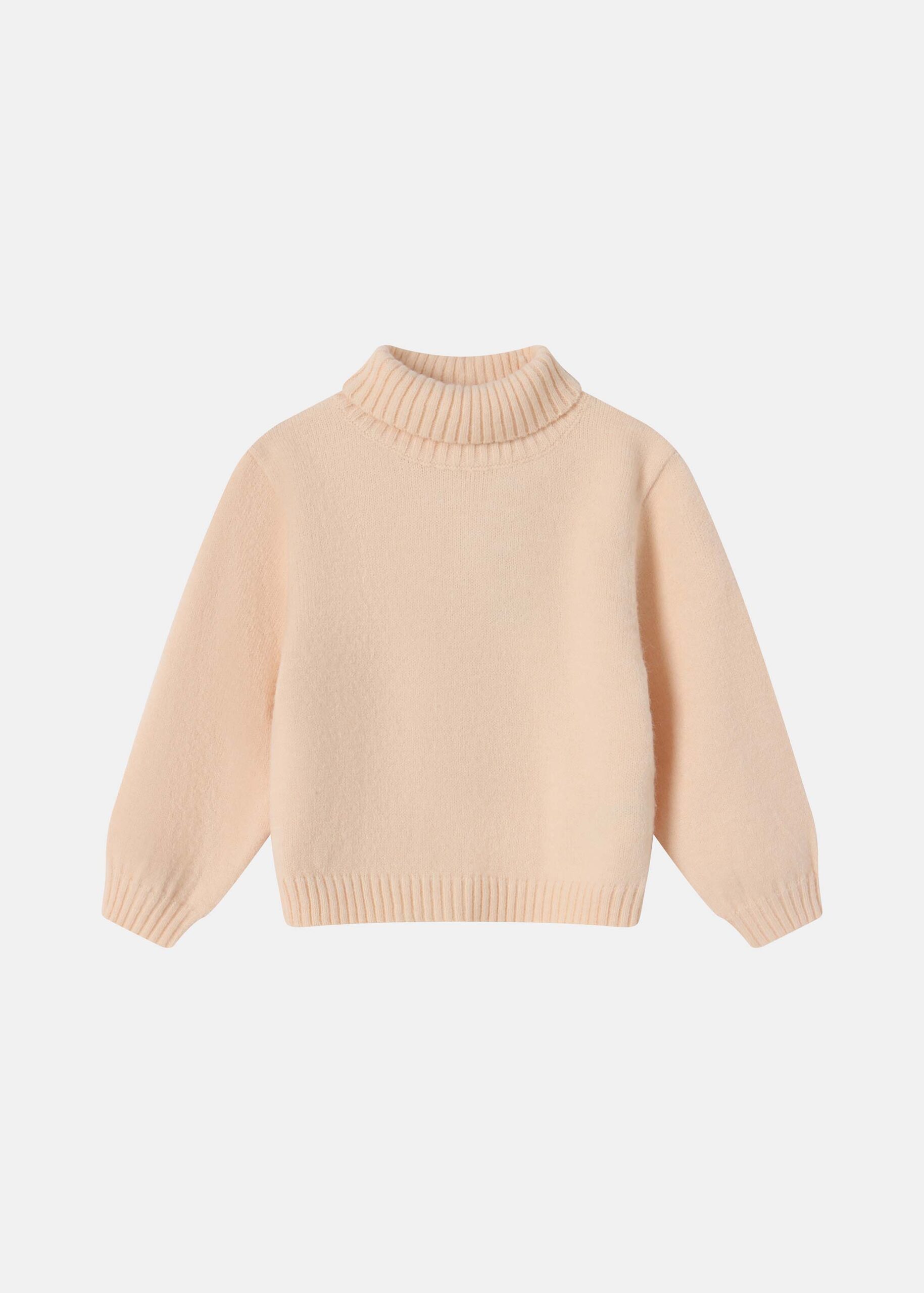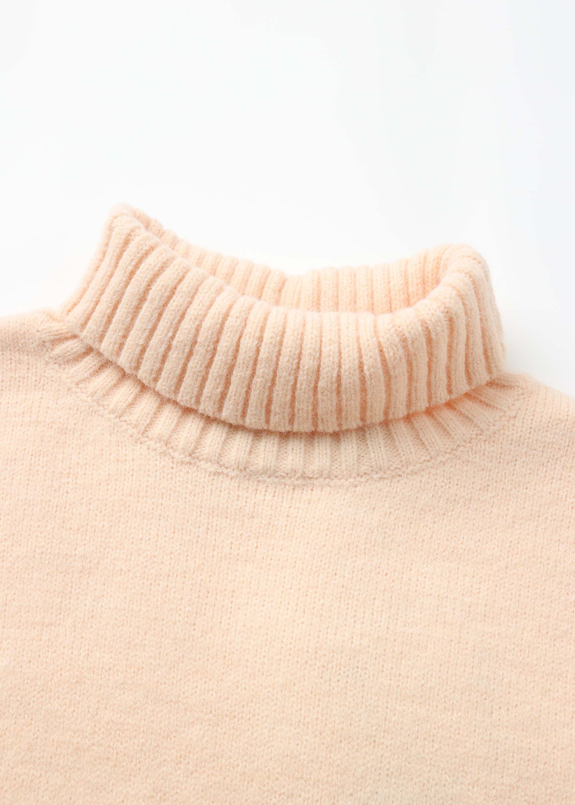 Baby girl blouse, knitted fabric, plain, high rolled neck, long sleeves, warm and comfortable