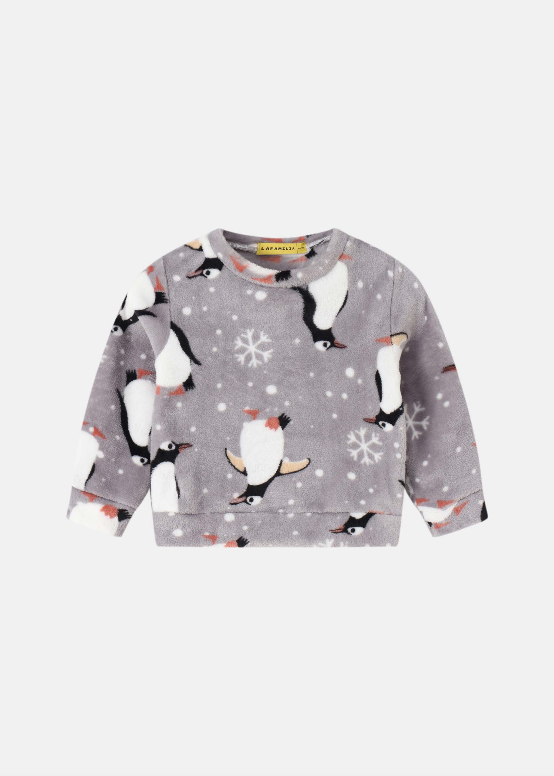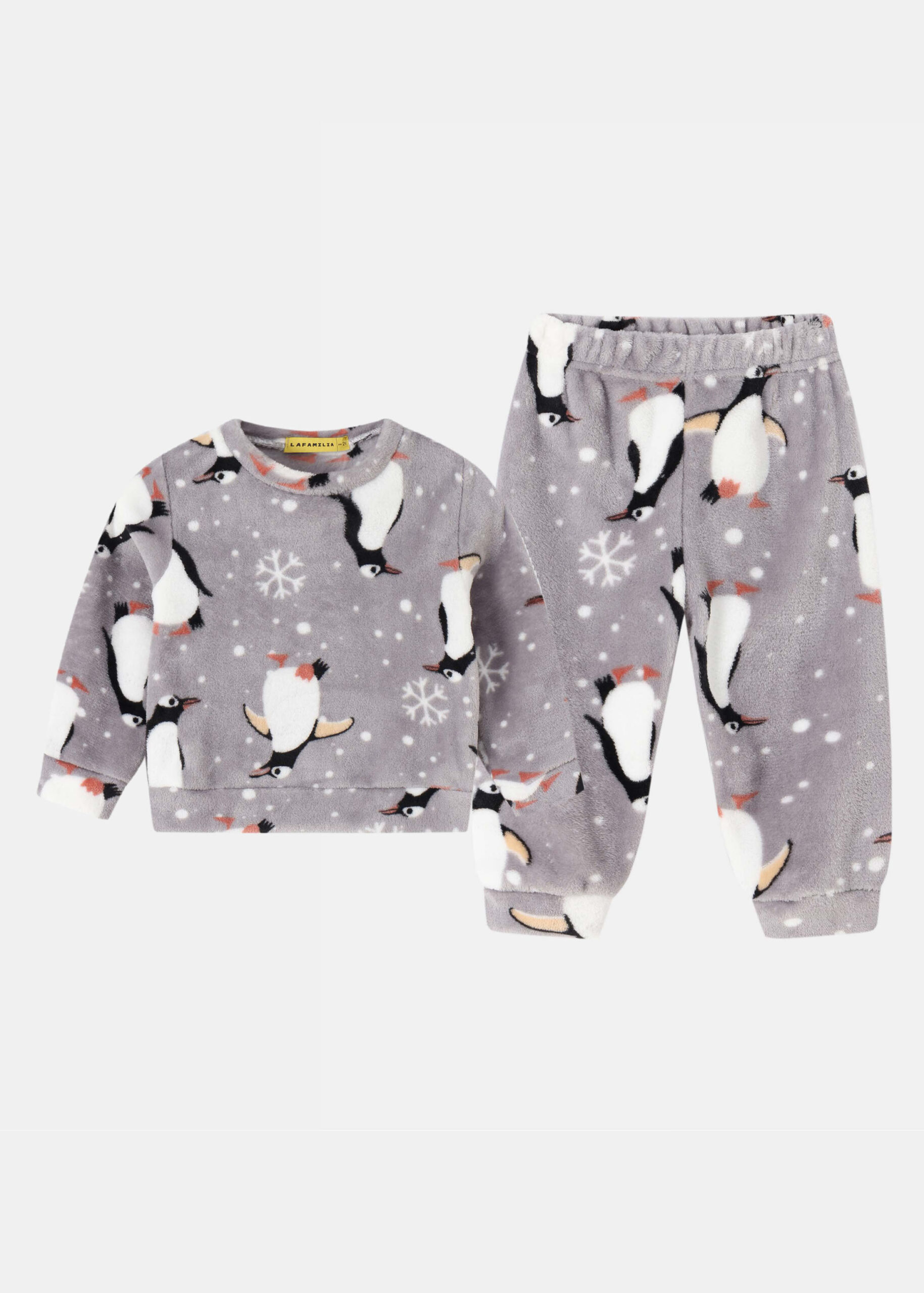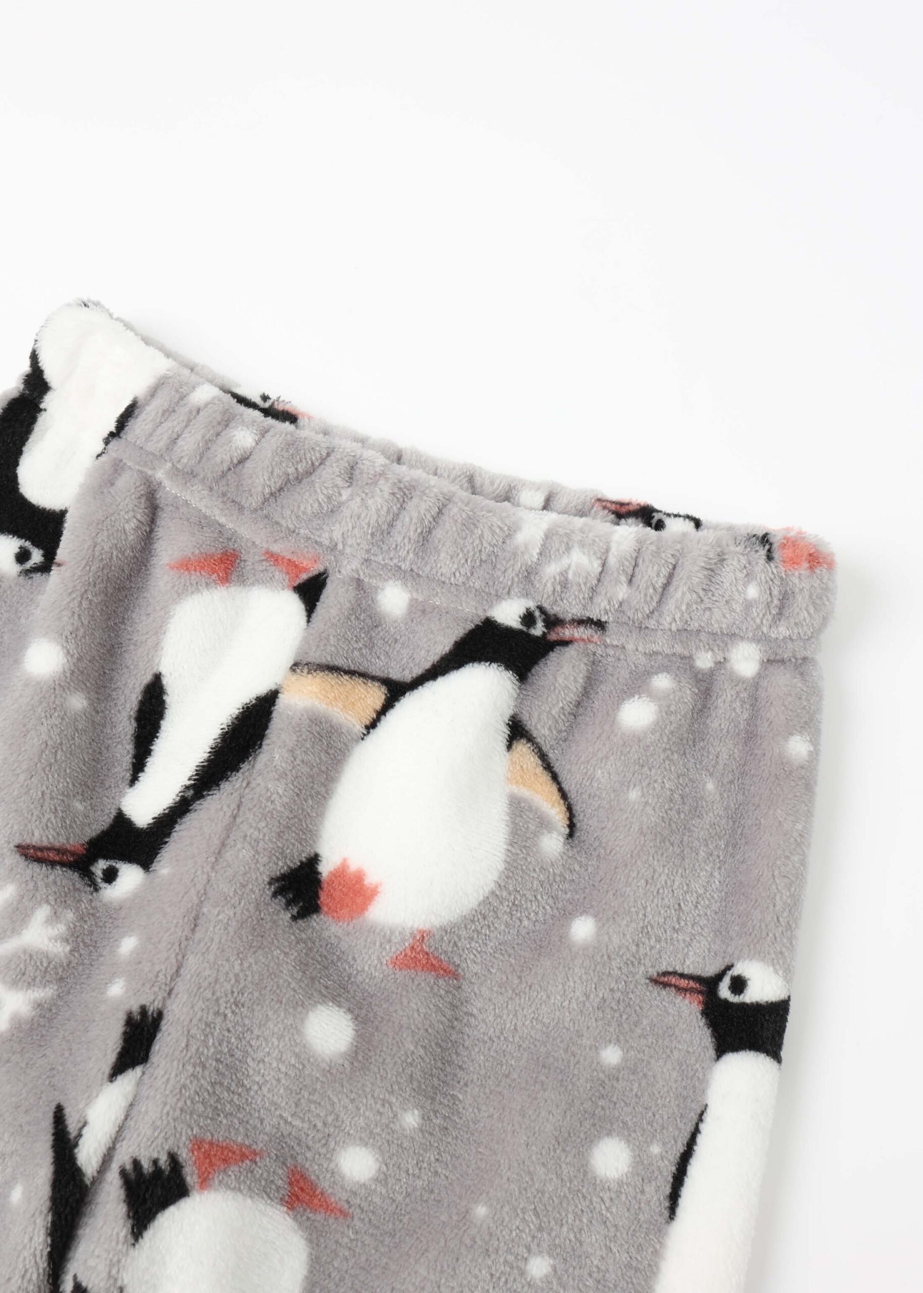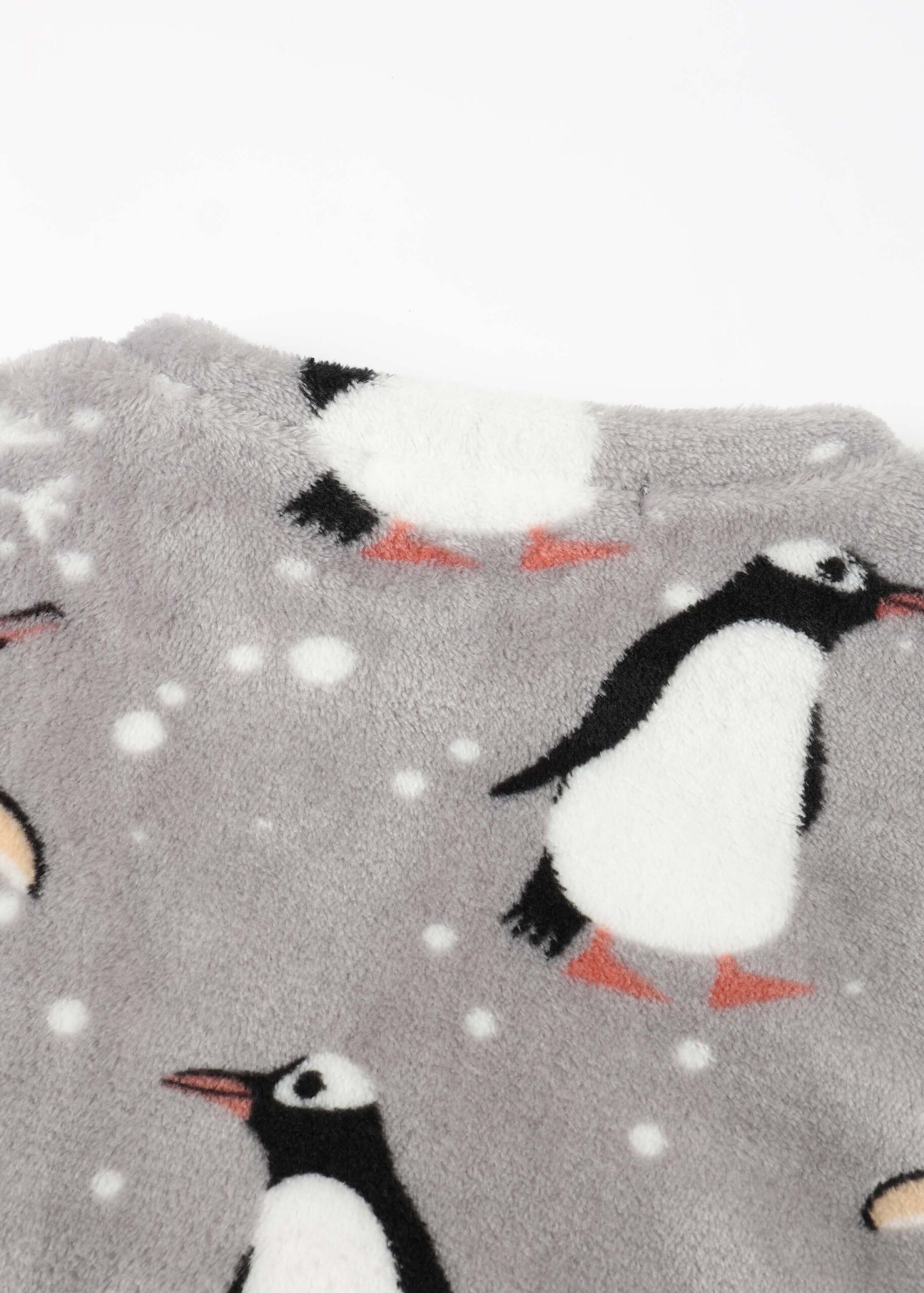 Baby girl pajama, two-pieces, “Penguin” printed, blouse, round neck, long sleeves, trouser, elastic waist, elastic ankle, practical and comfortable