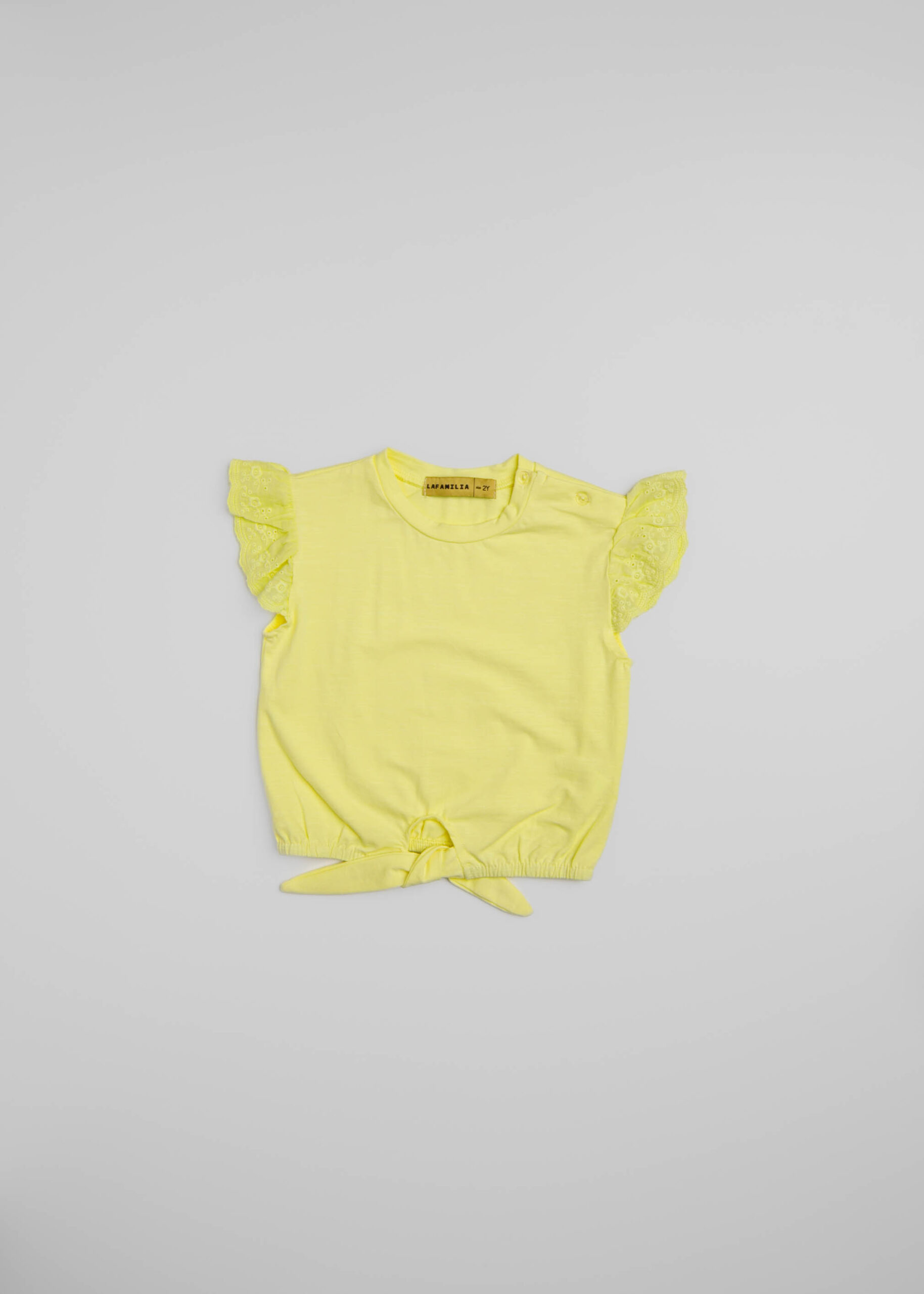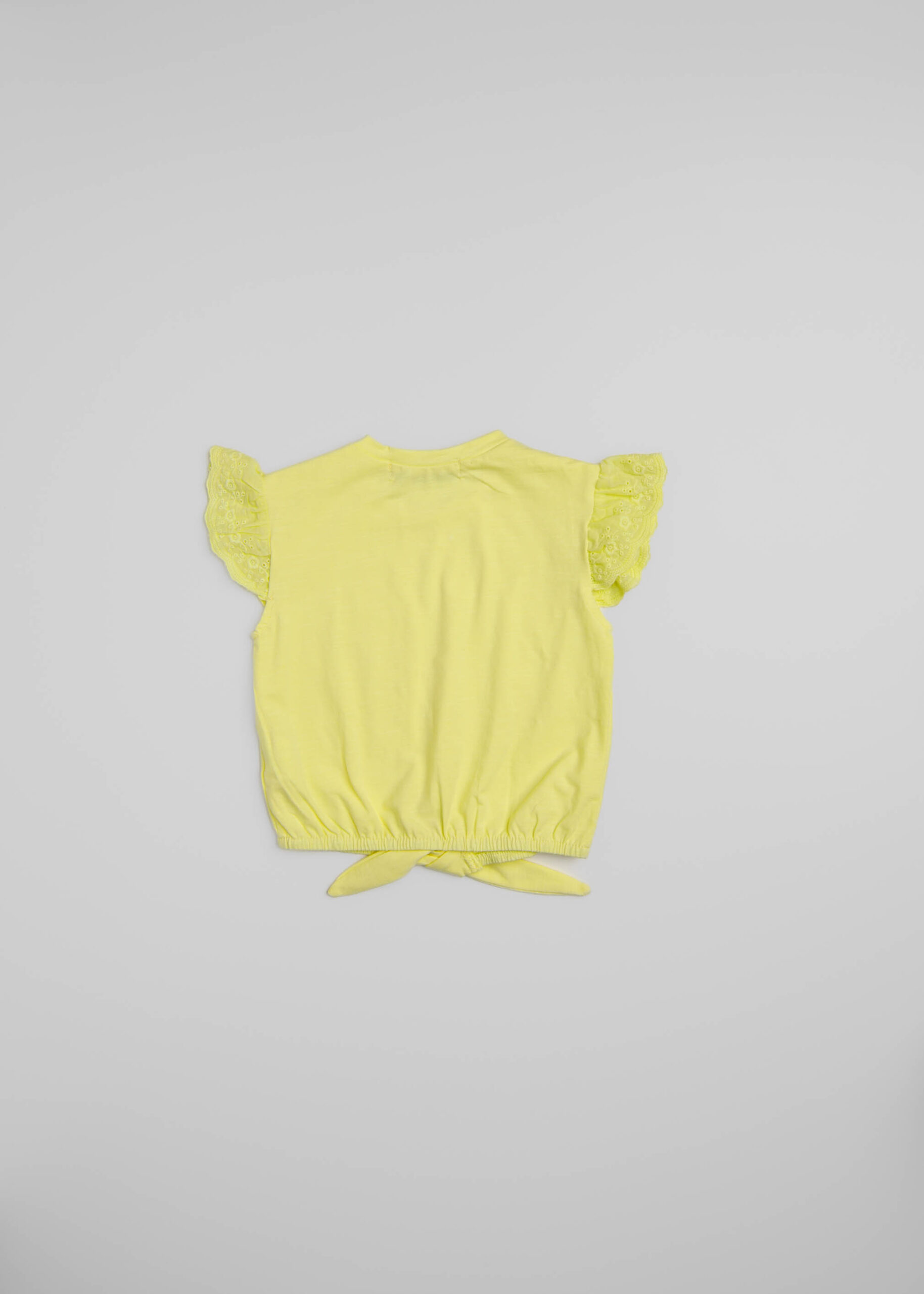 Baby girl blouse, plain, round neck, short ruffled sleeves, front tie, unique and practical