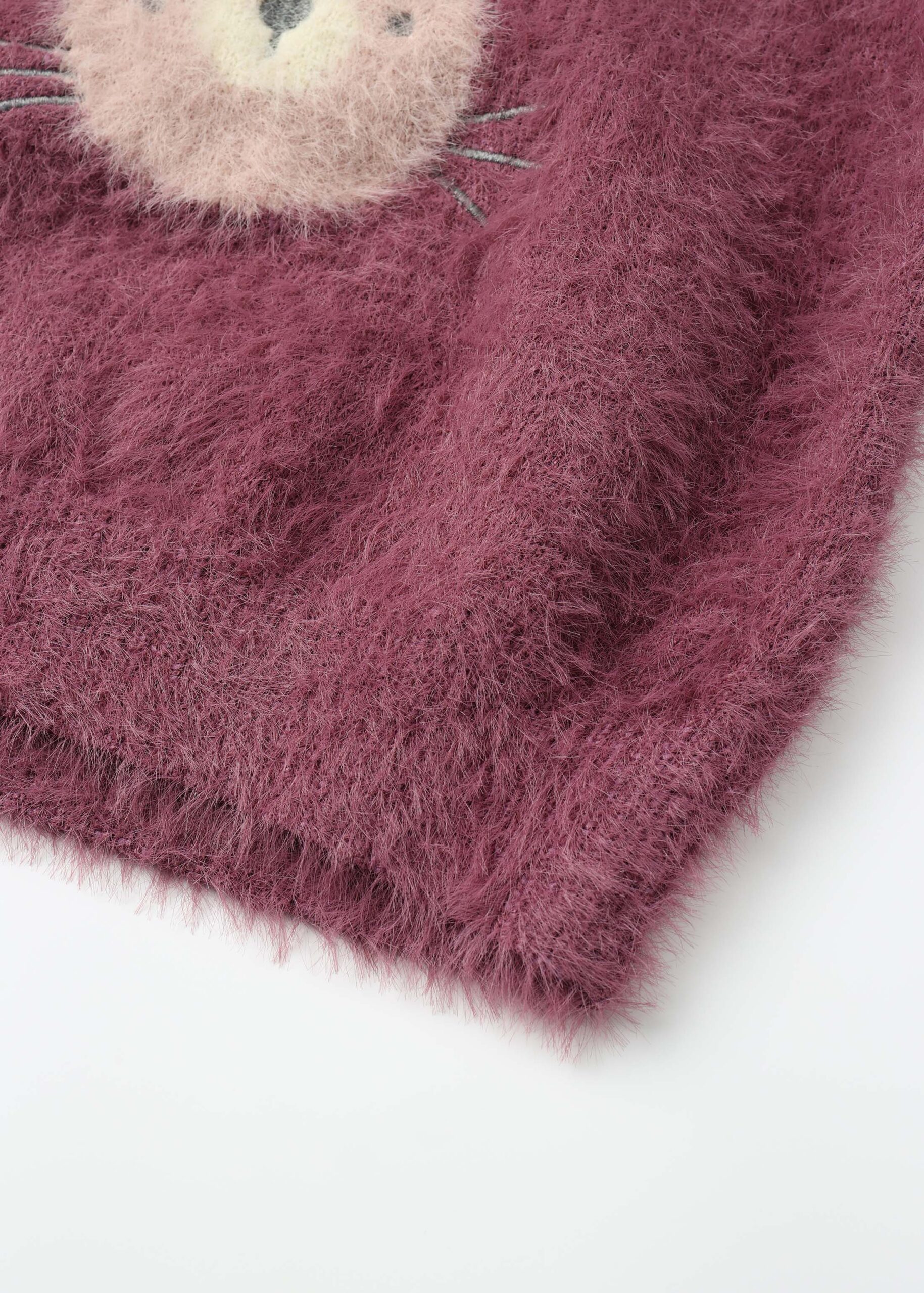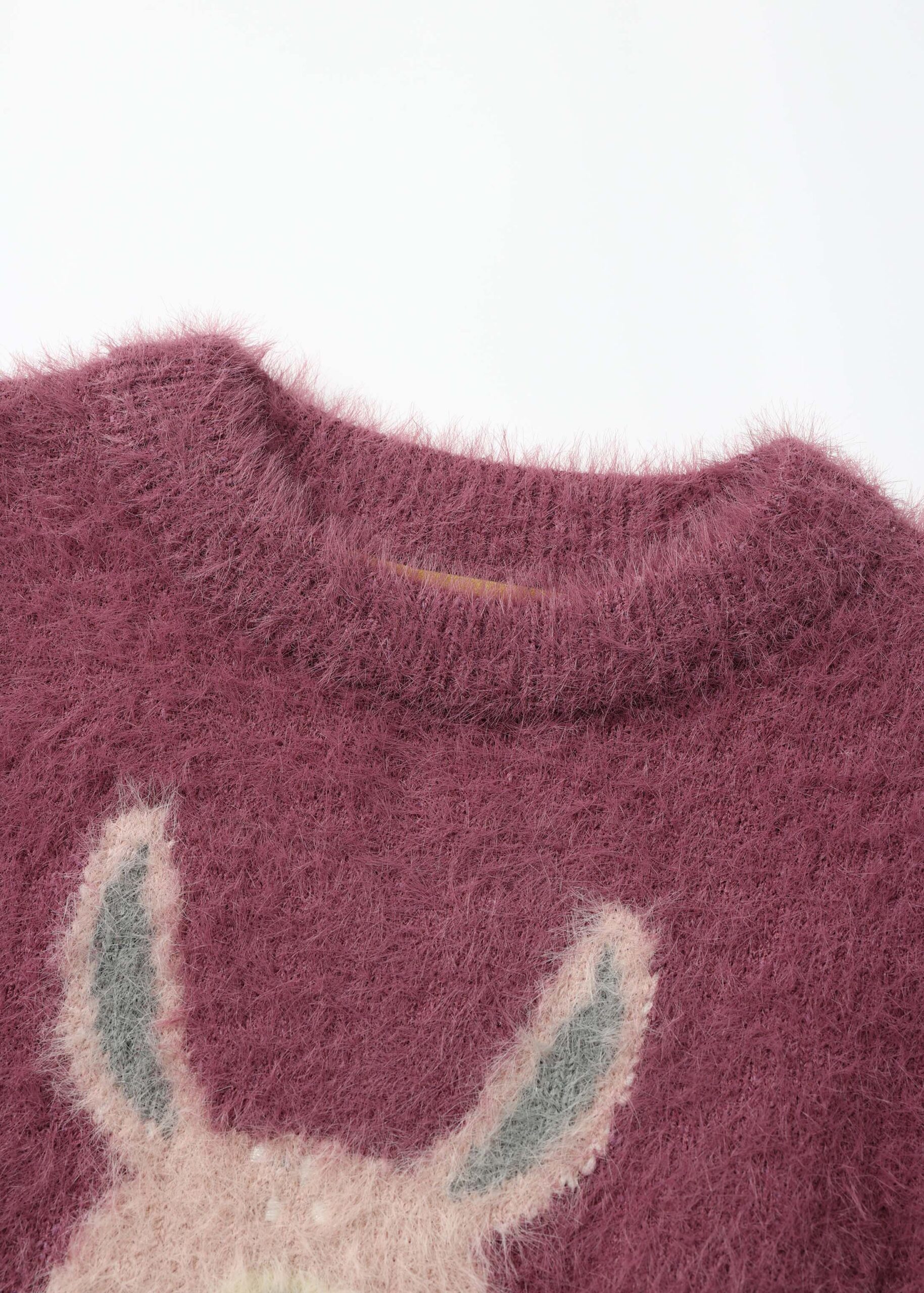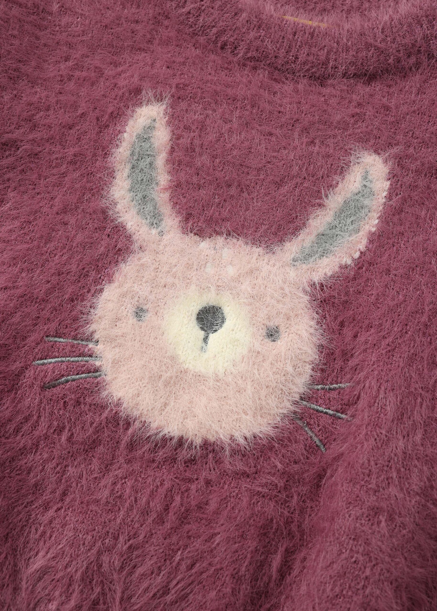 Baby girl blouse, hairy knitted fabric, rabbit printed from the front, round neck, long sleeves, unique and warm