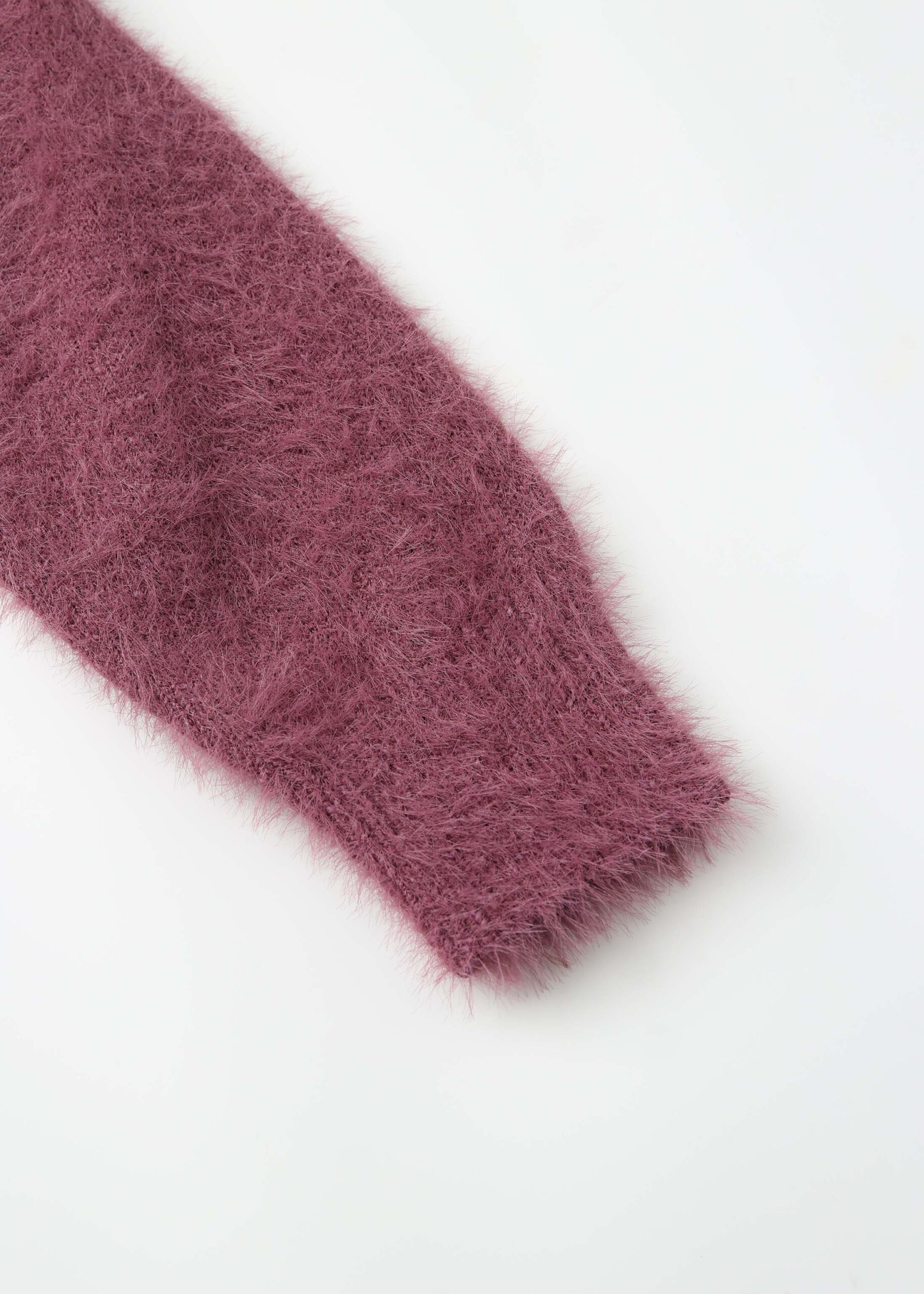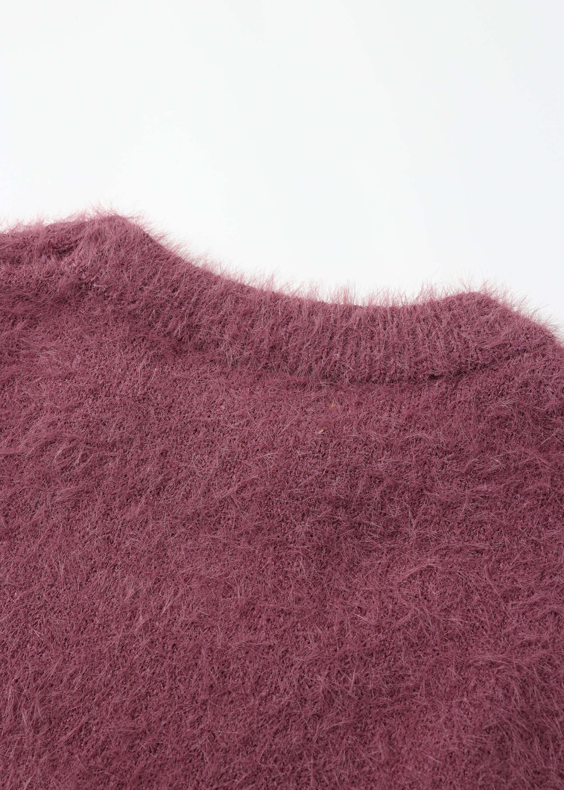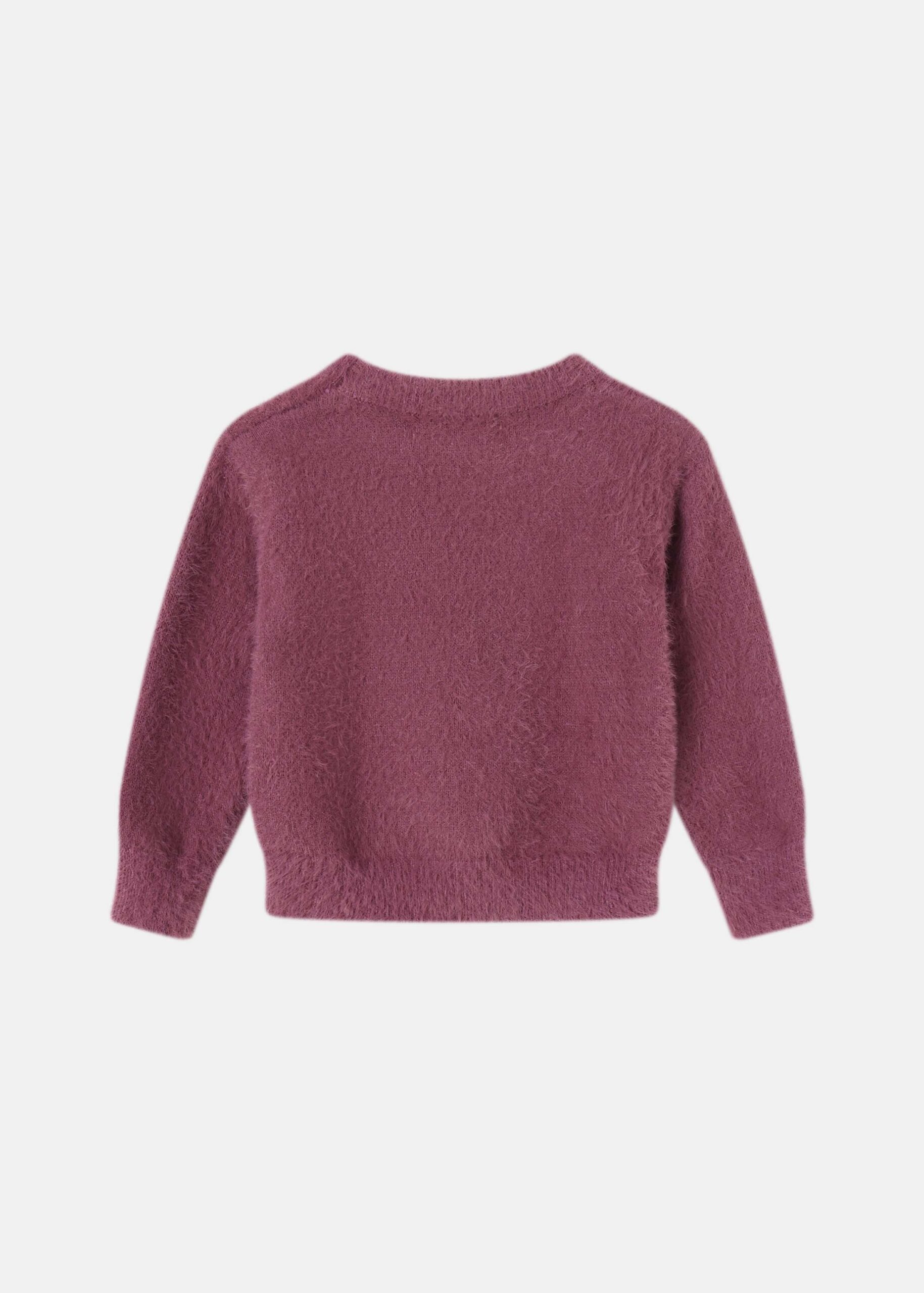 Baby girl blouse, hairy knitted fabric, rabbit printed from the front, round neck, long sleeves, unique and warm