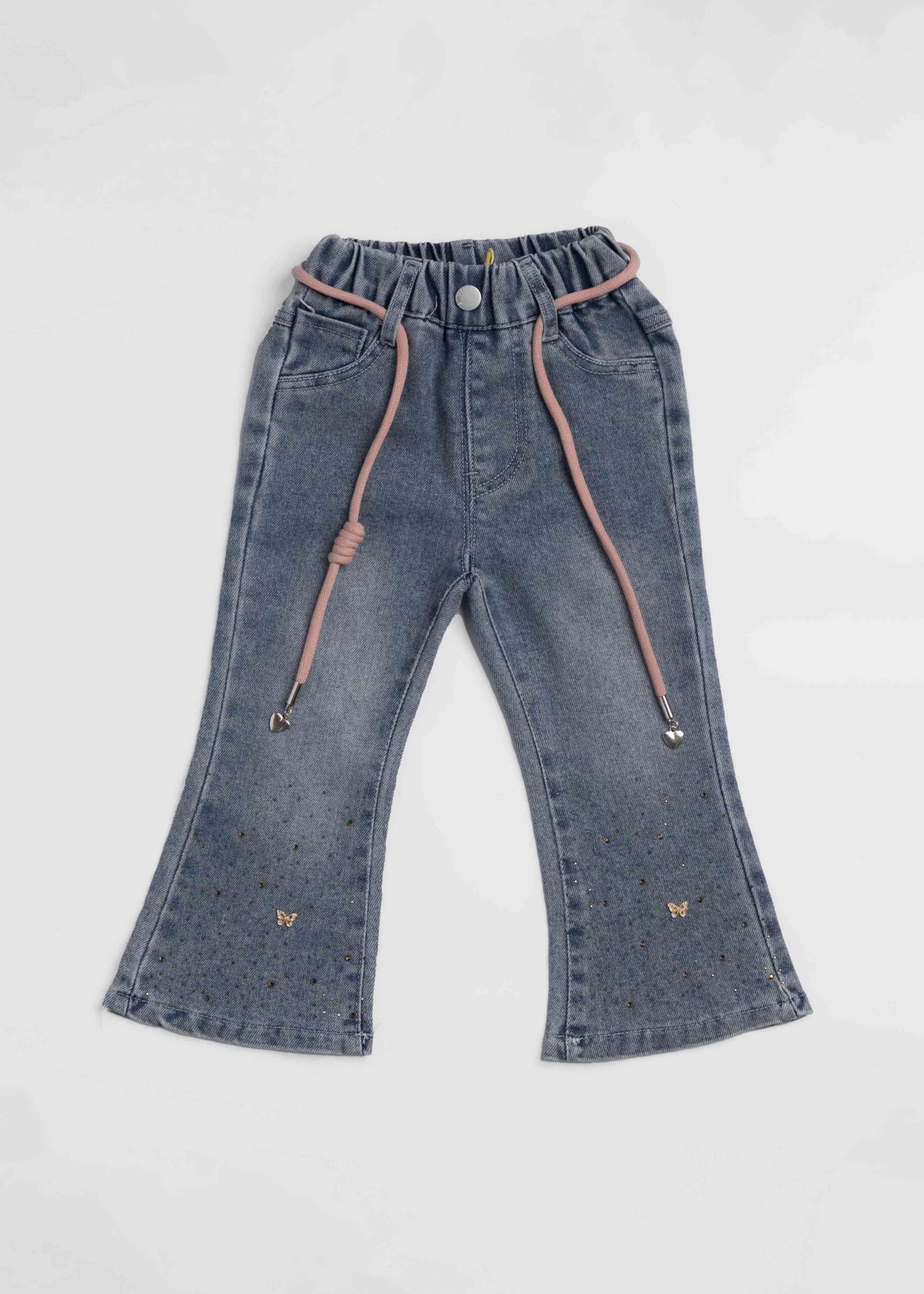 Baby girl trouser, jeans, strass decor, elastic waist, front and back pockets, unique and modern