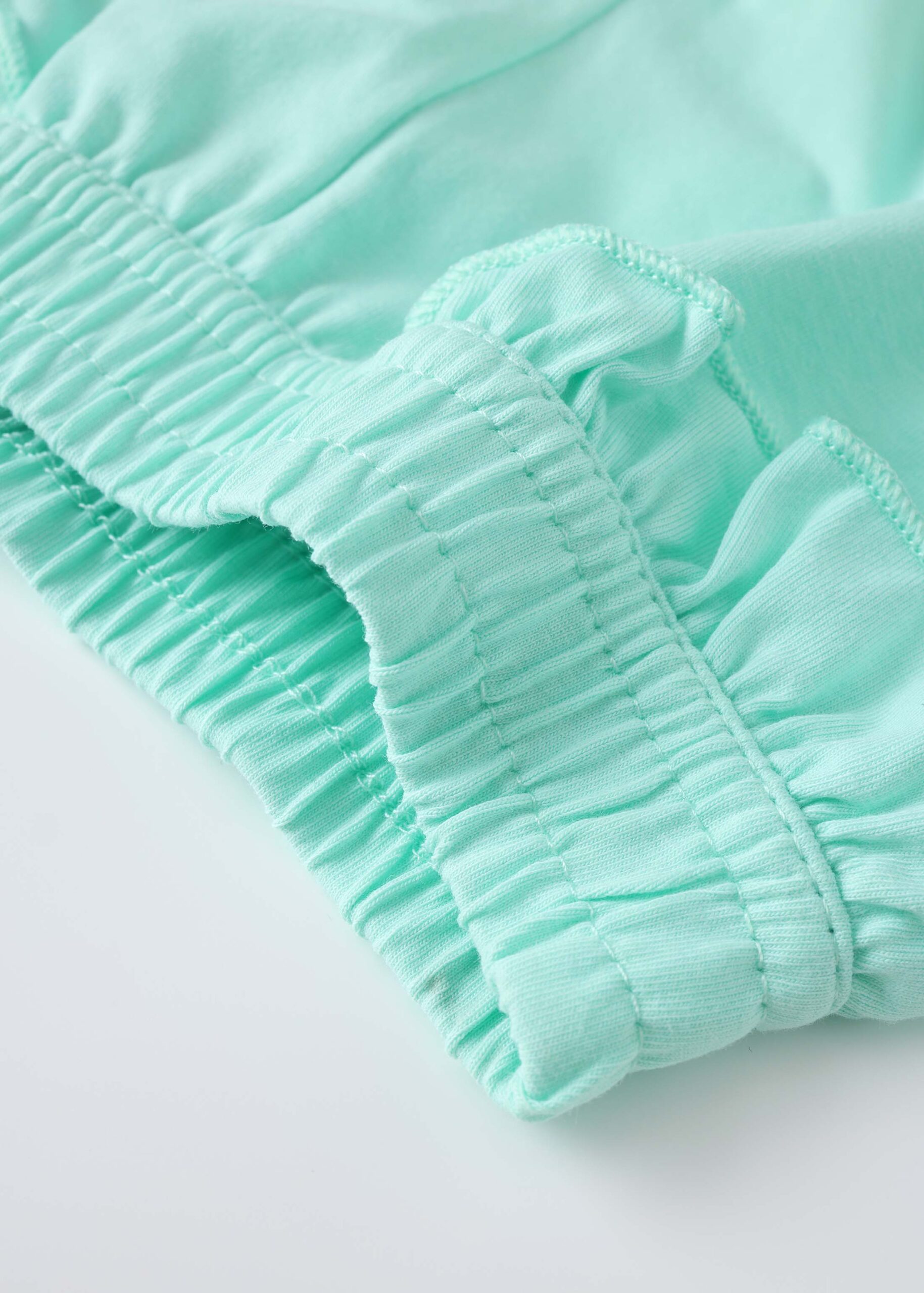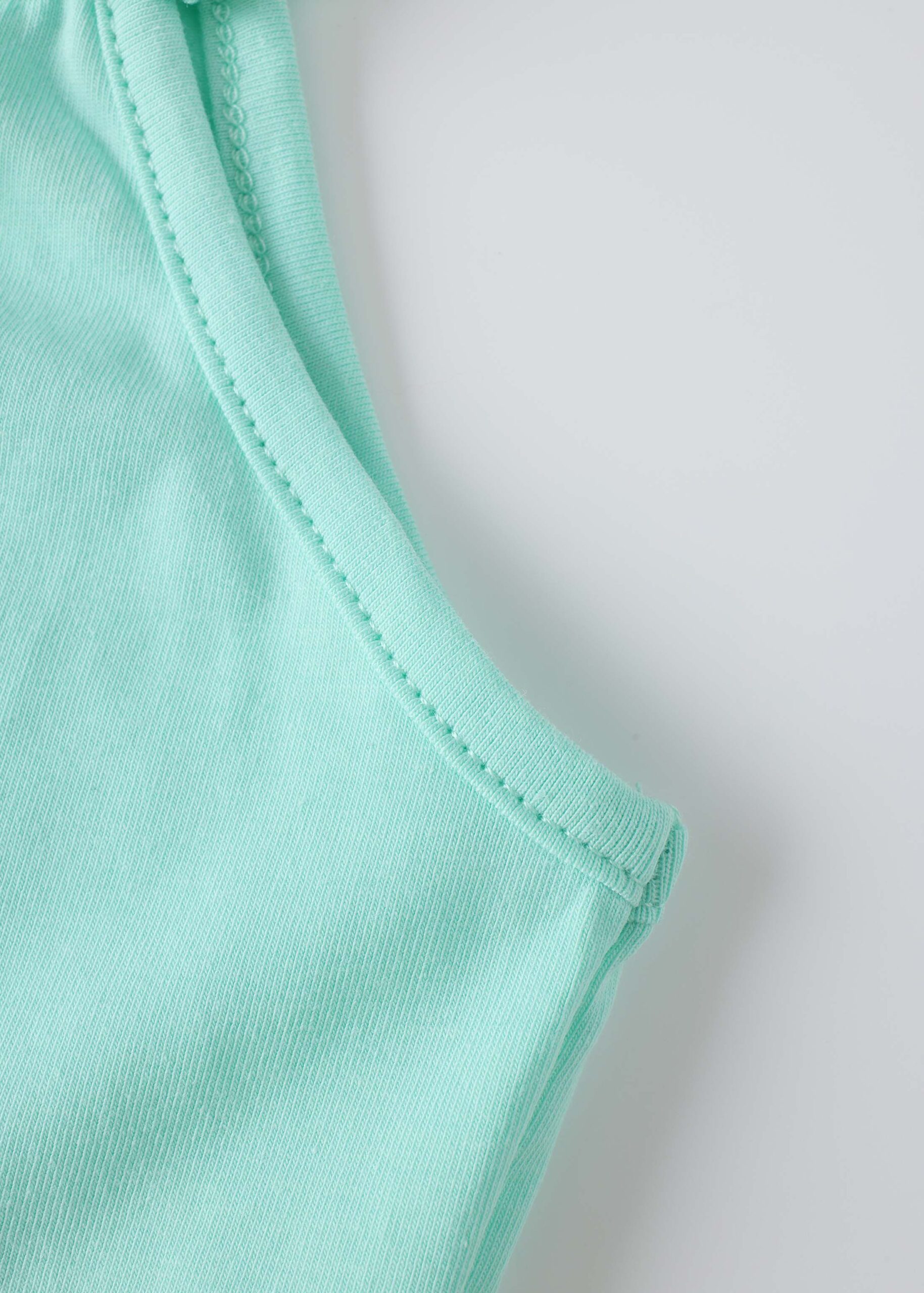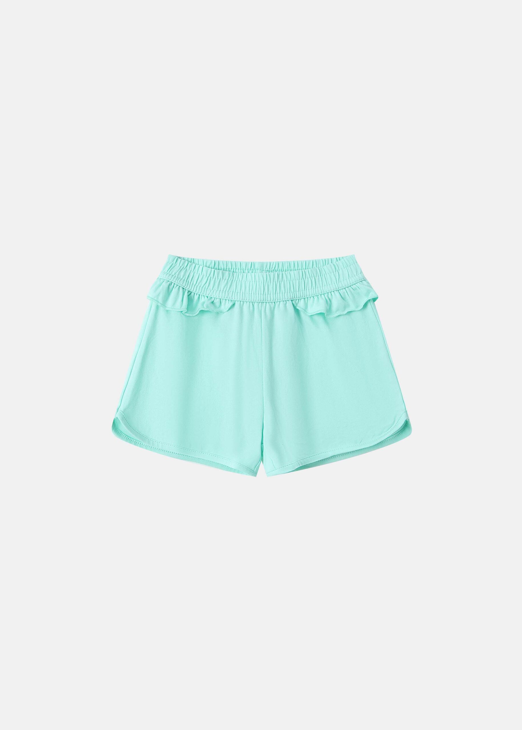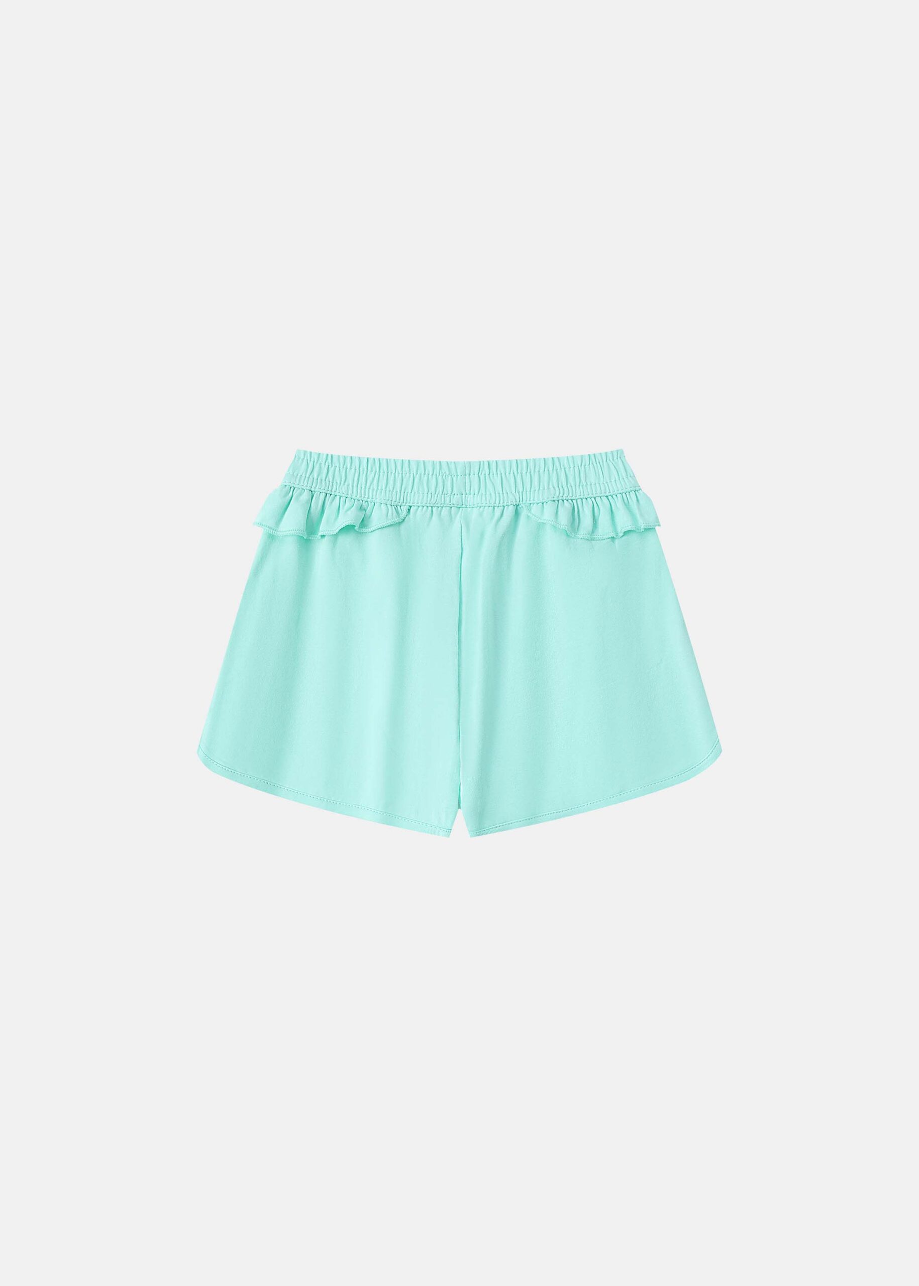 Baby girl pajama, two-pieces, top, cropped, sleeveless with ruffled shoulders strap, square neck, front bow decor, short, elastic waisth with side ruffled decor, practical and comfortable