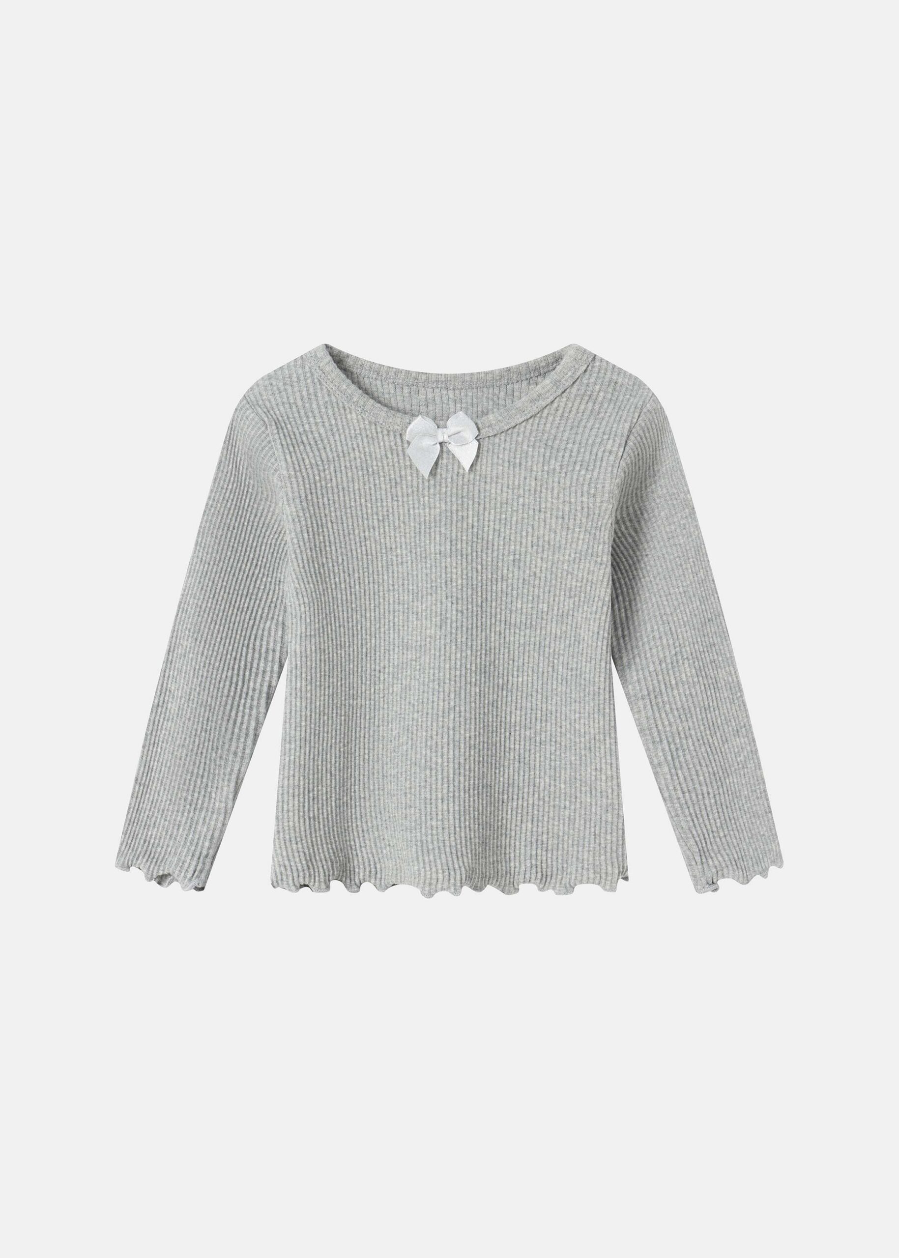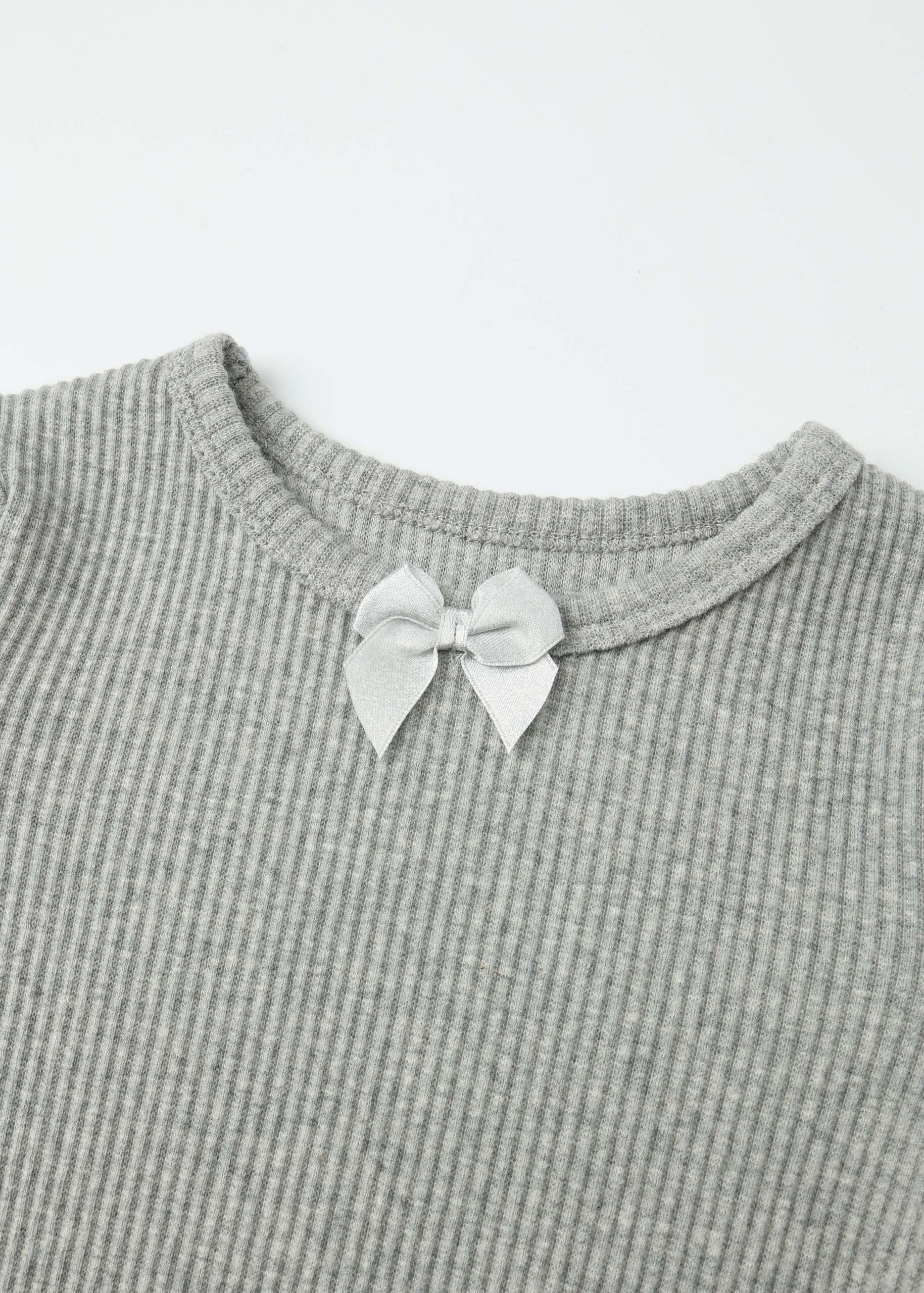 Baby girl suit, two-pieces, striped fabric, blouse, round neck with front bow decor, long sleeves, leggings, elastic waist with front bow decor, comfortable and practical