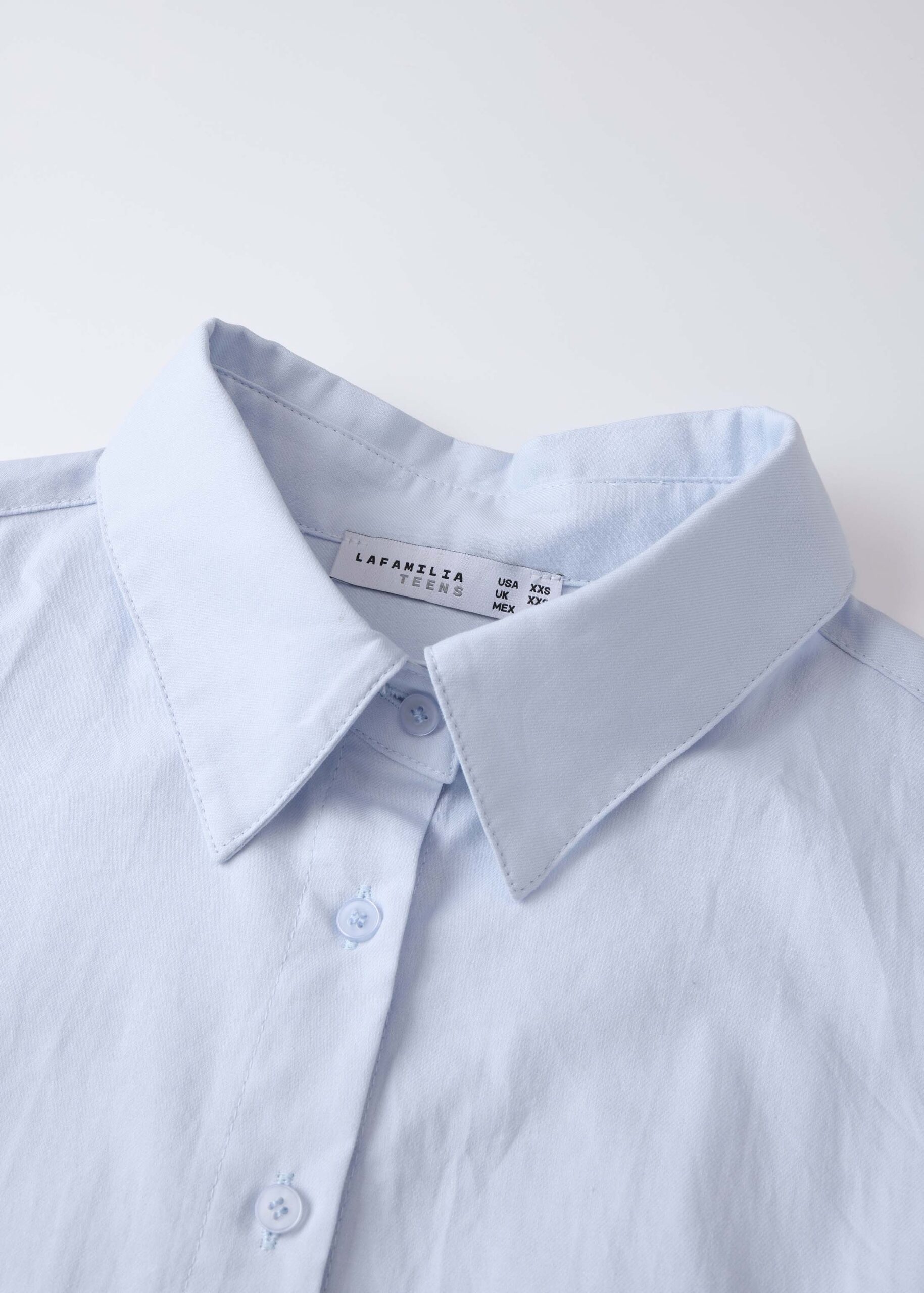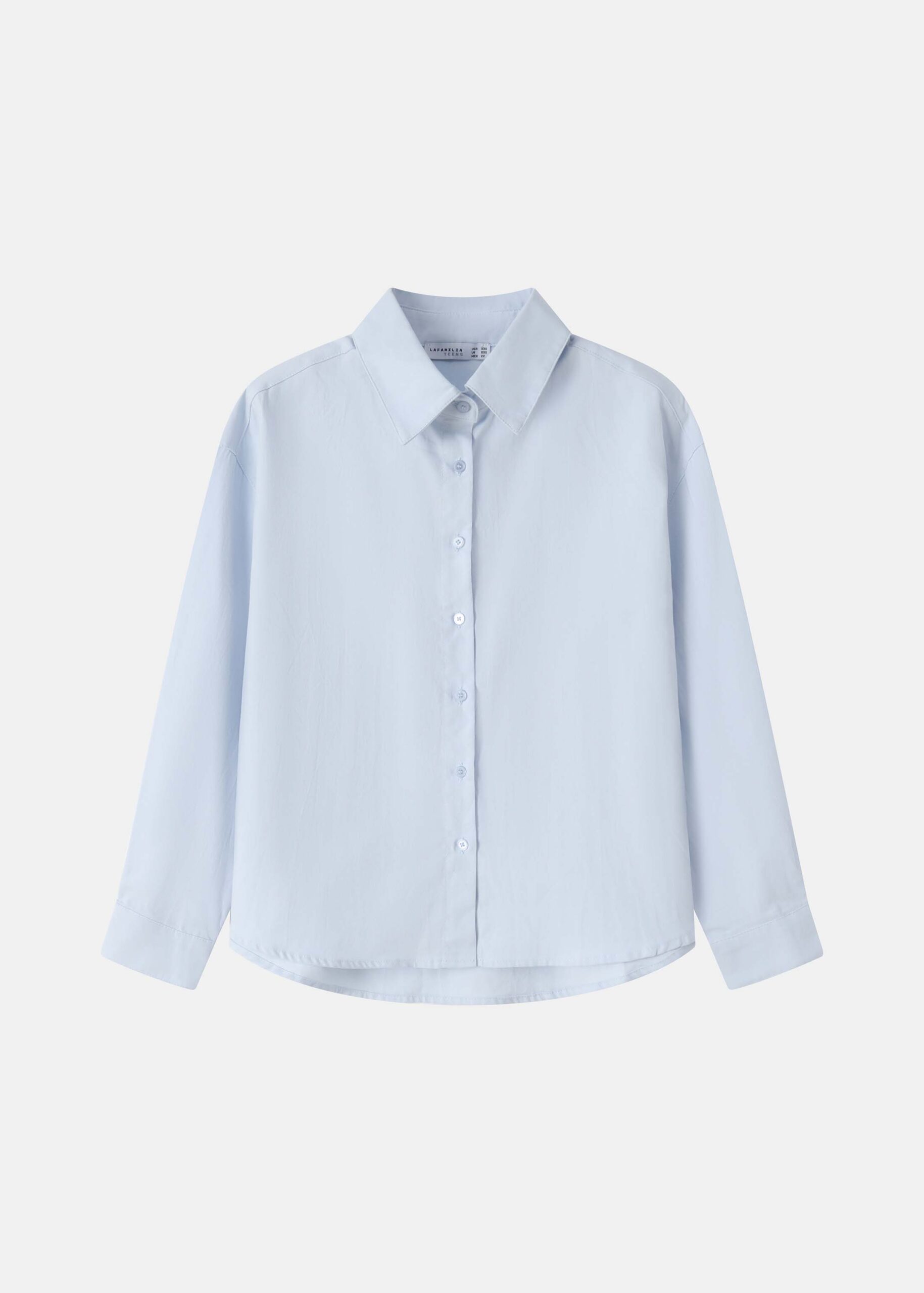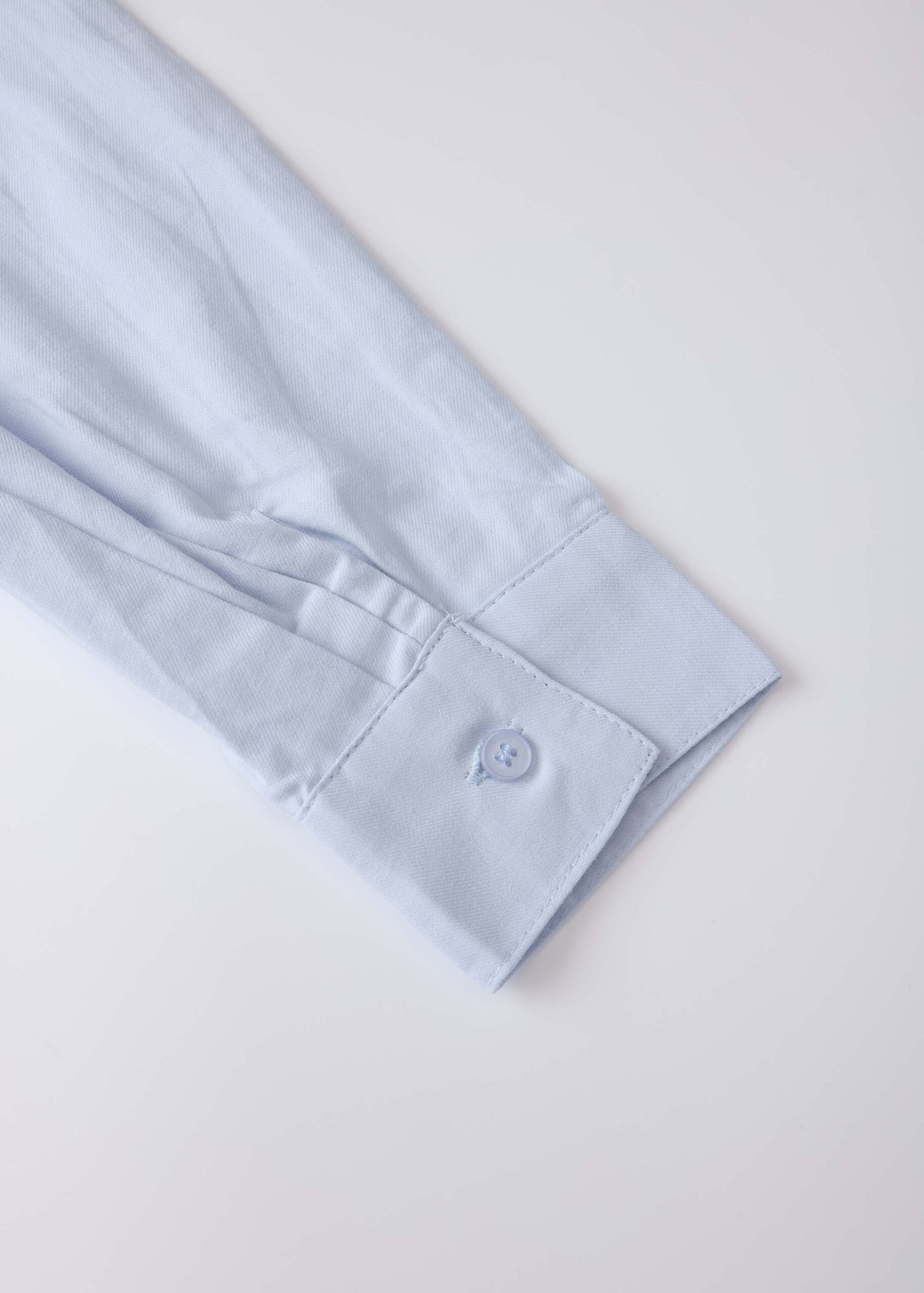 Girl shirt, plain, classic collar, front buttons to close, long sleeves with tight cuff, unique and modern