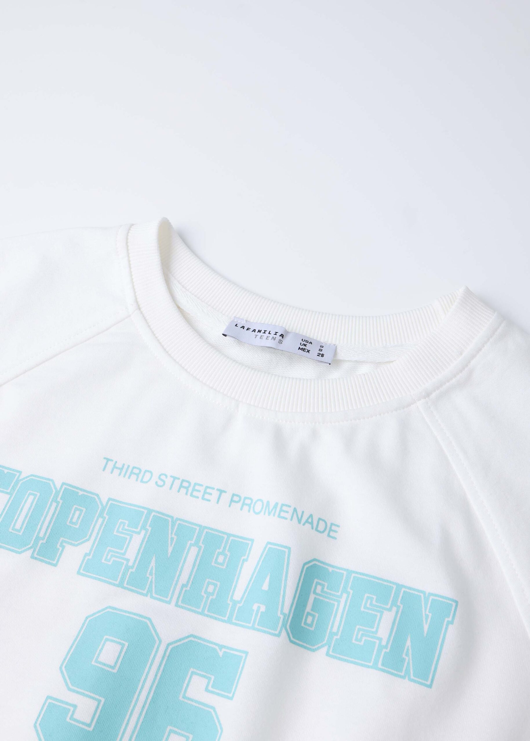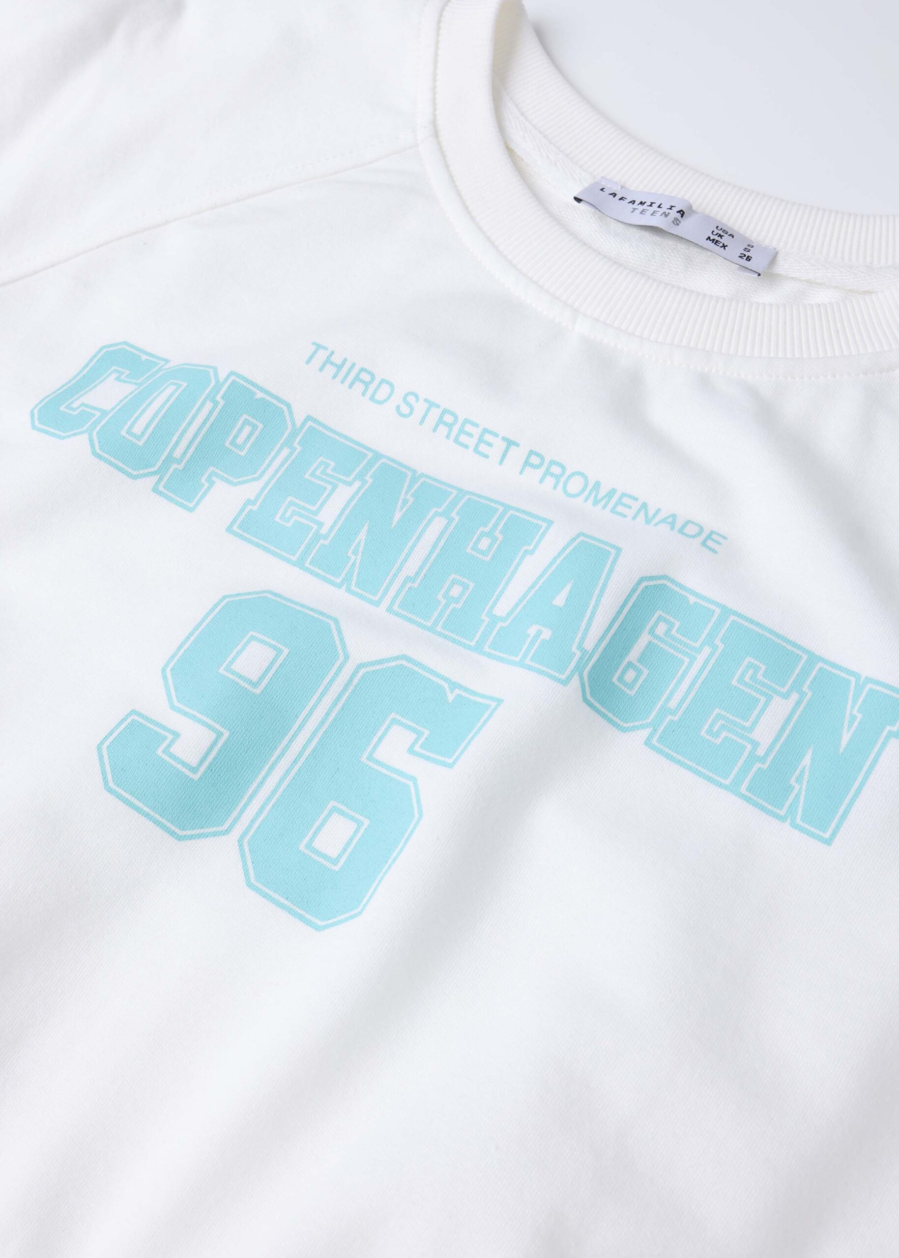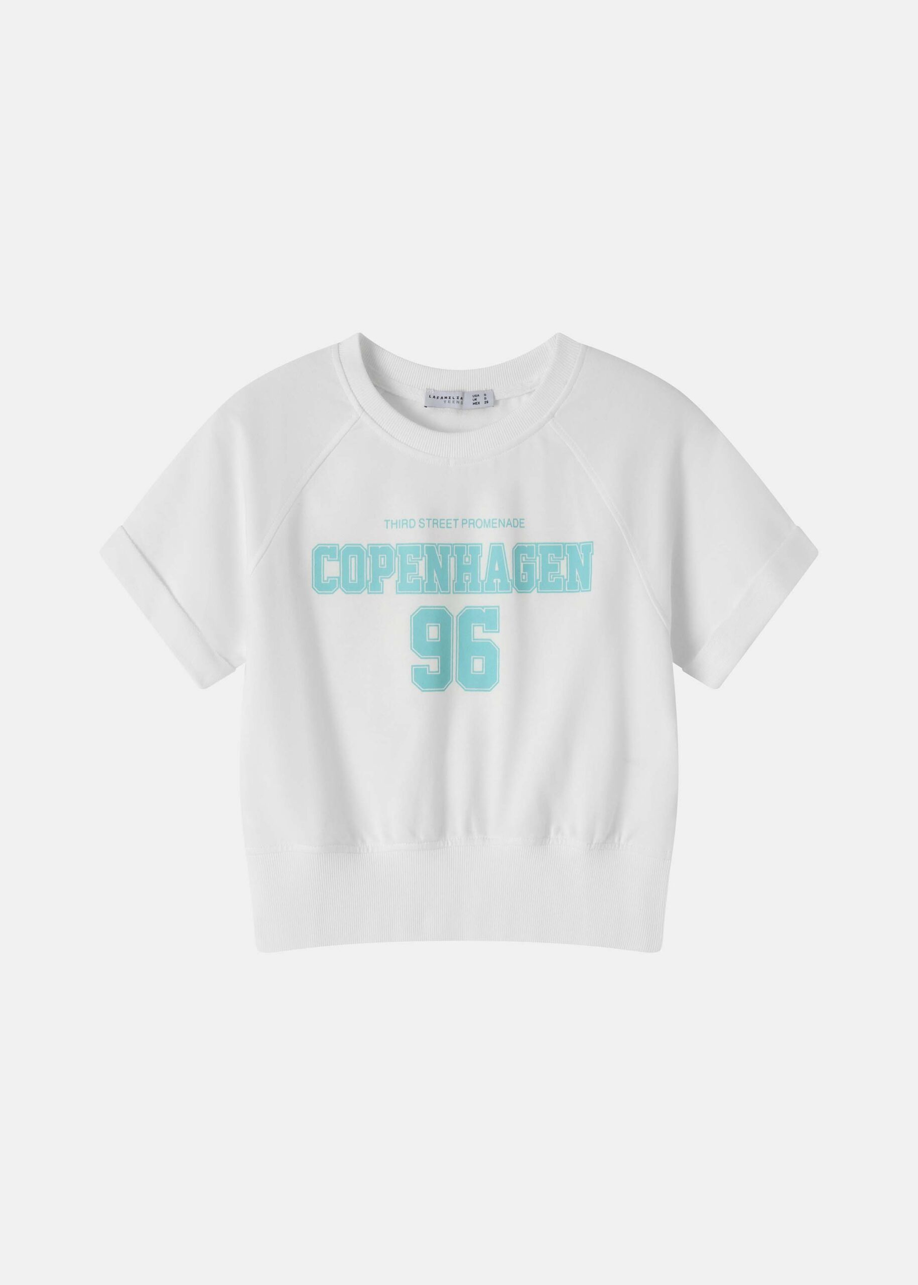 Girl t-shirt, cropped, crew neck, short rolled sleeves, “Copenhagen 96” printed from the front, unique and modern
