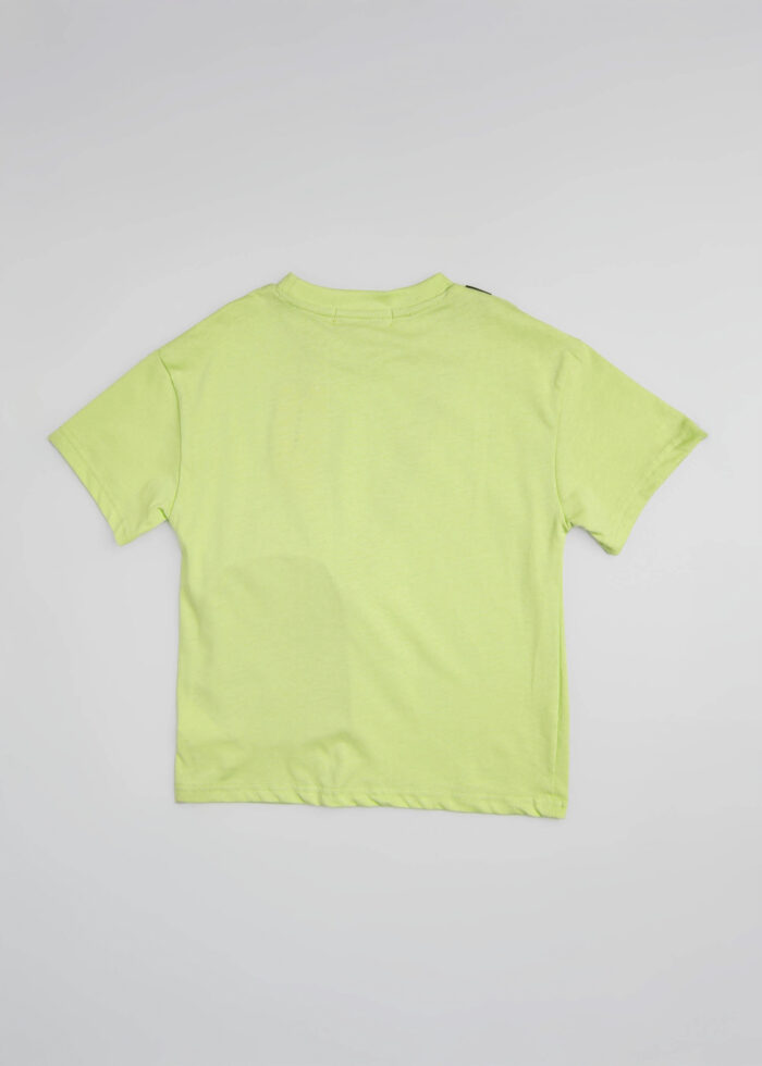 Kids boy t-shirt, bag decor from the front, round neck, short sleeves, unique and modern