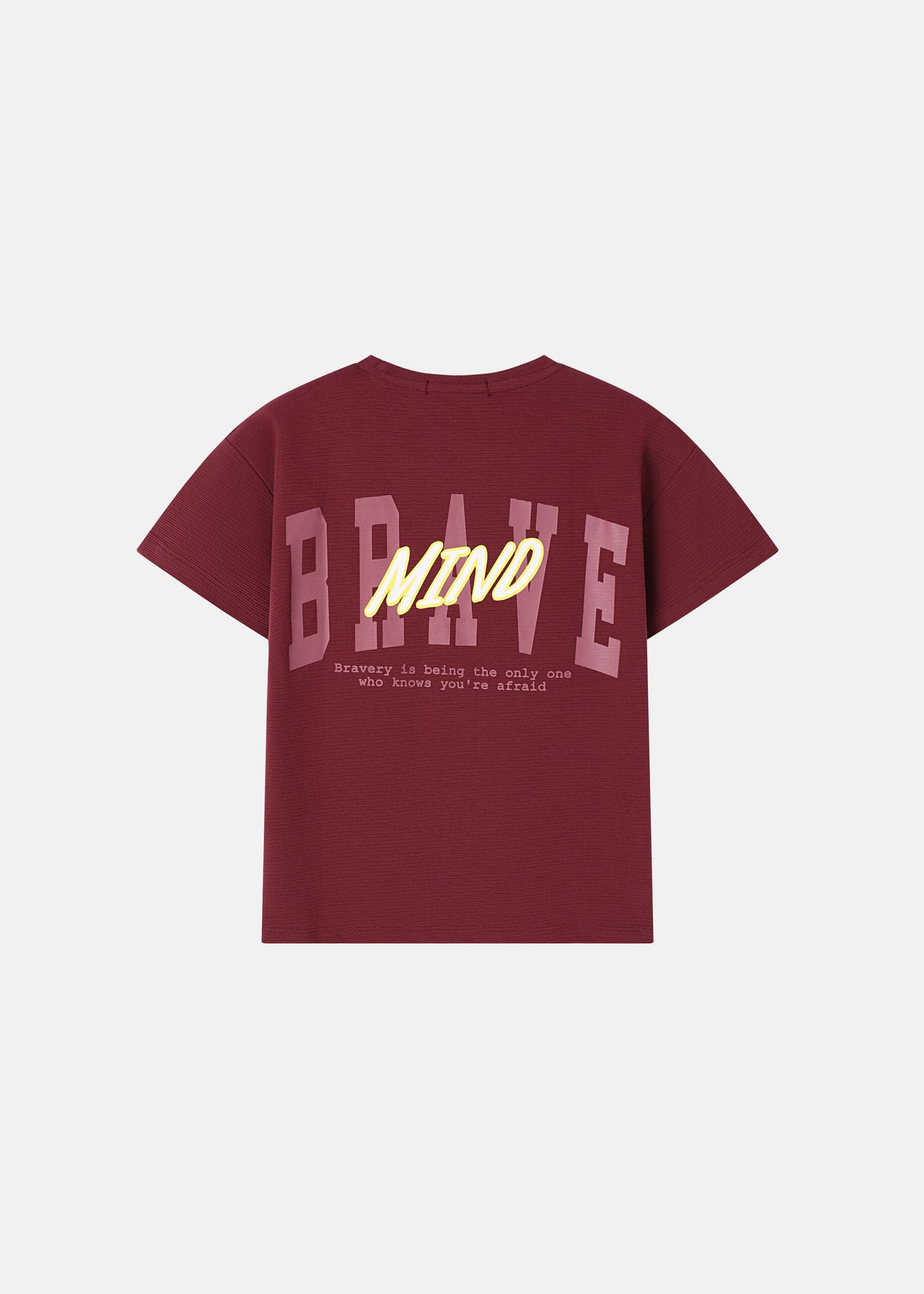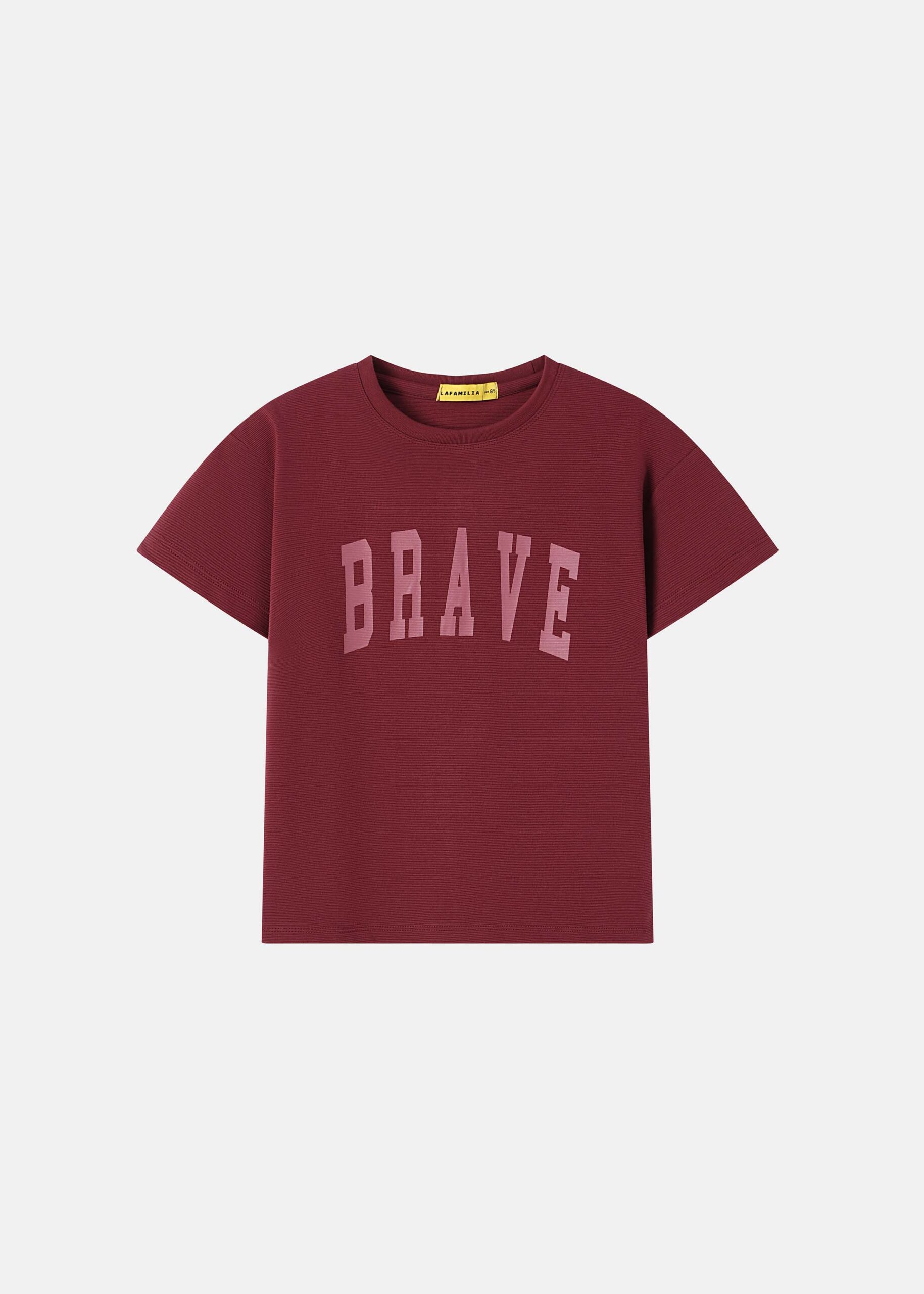 Kids boy t-shirt, “Brave” printed from the front and back, round neck, short sleeves, modern and unique
