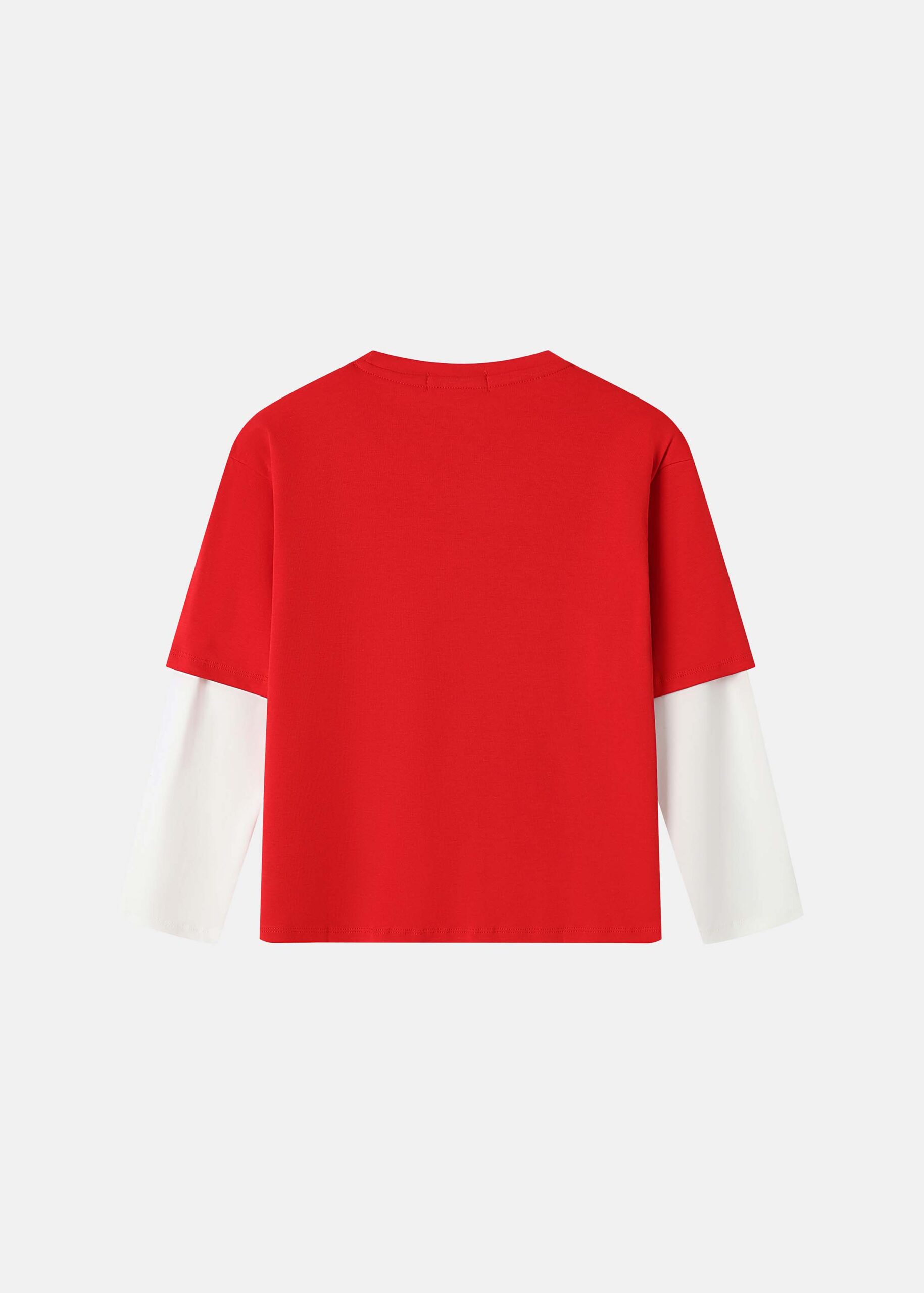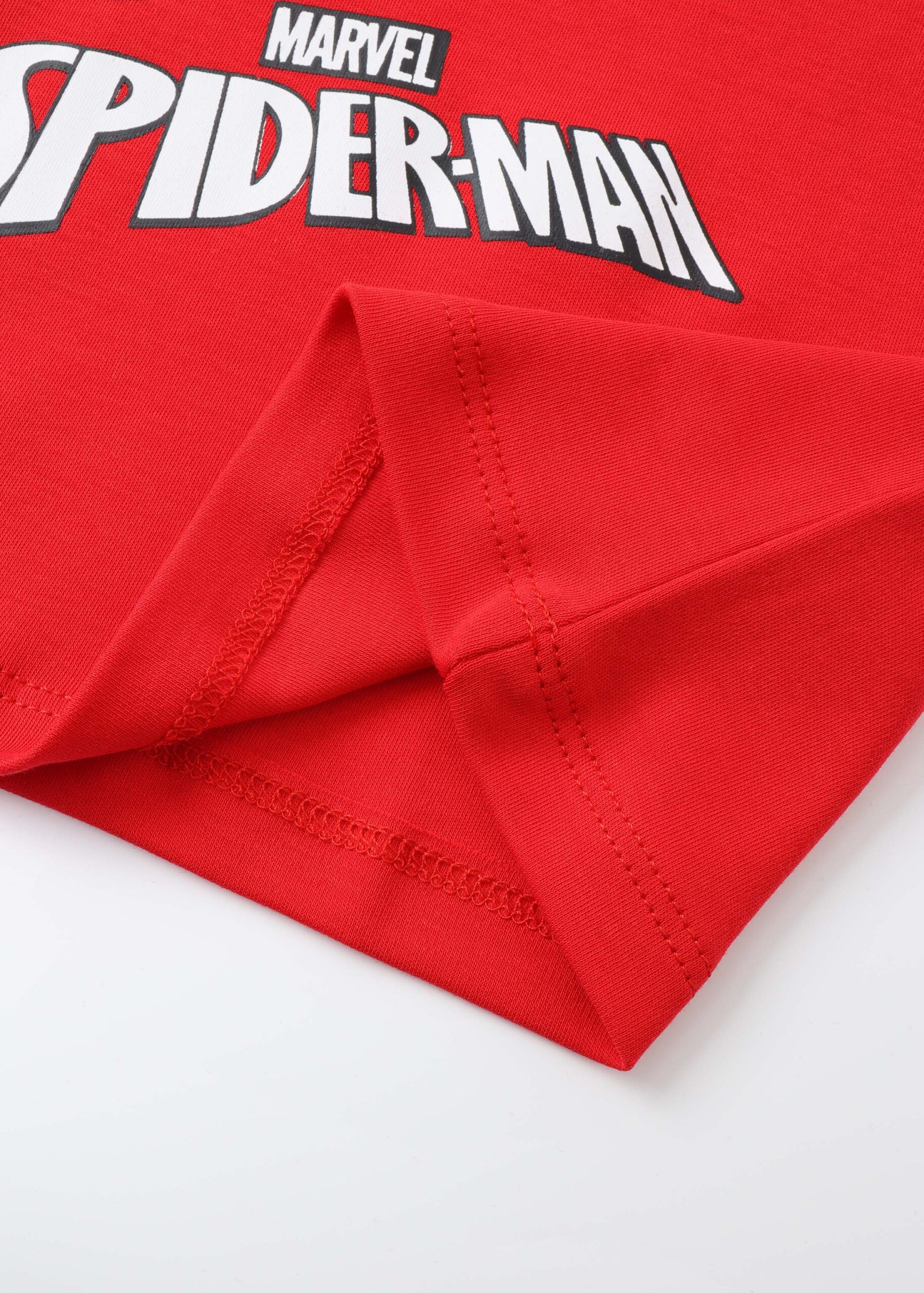 Kids boy blouse, Spiderman printed from the front, round neck, double sleeves “Short sleeve tee with long sleeves underneath”, unique and modern