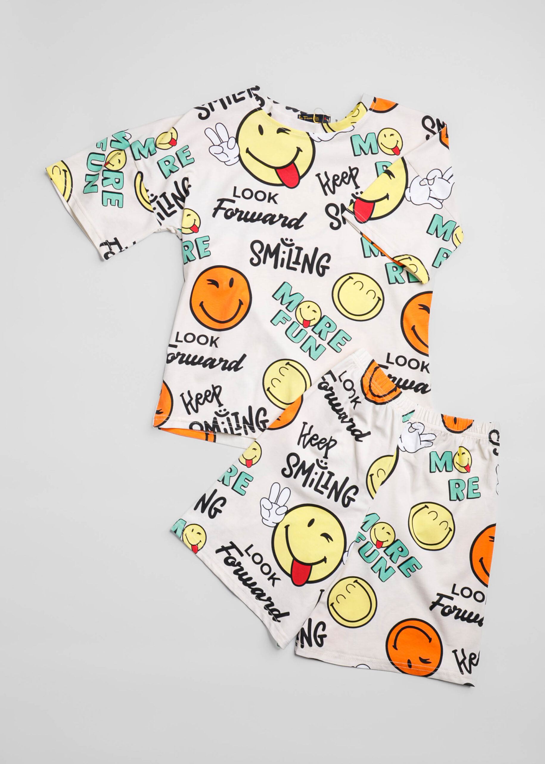 Kids boy pajama, two-pieces, t-shirt, drawings printed, round neck, short sleeves, short, elastic waist, comfortable and practical