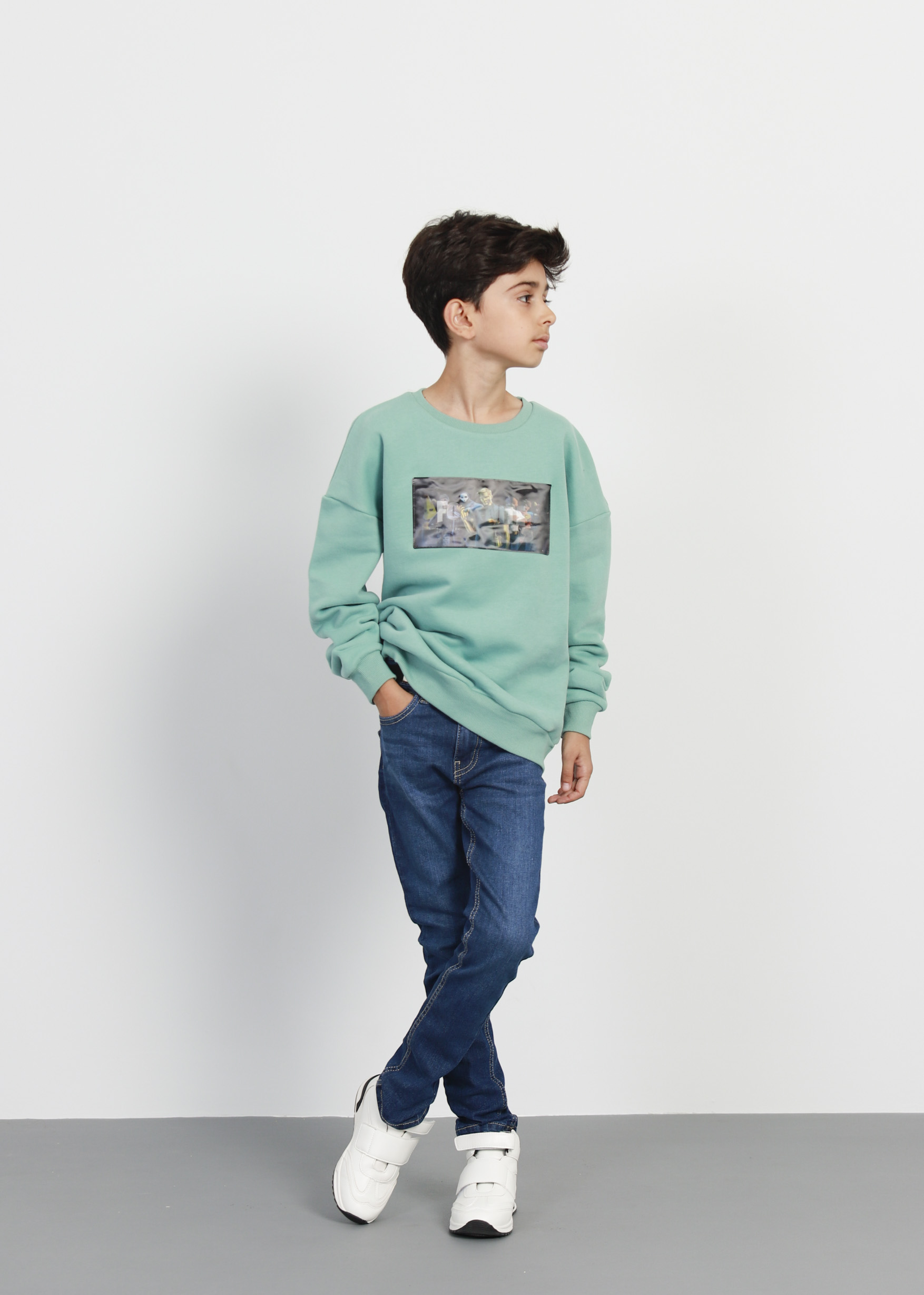 Kids boy blouse, long sleeves with tight cuff, round neck, Fortnite printed from the front, warm and unique, 75% Cotton 25% Polyester