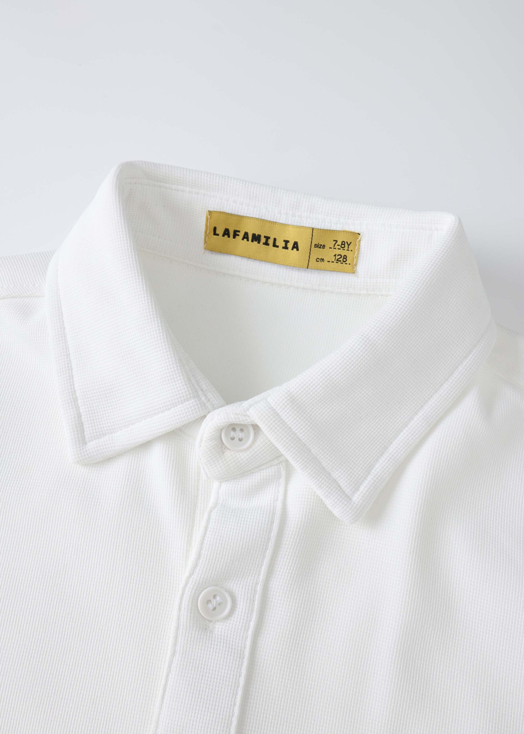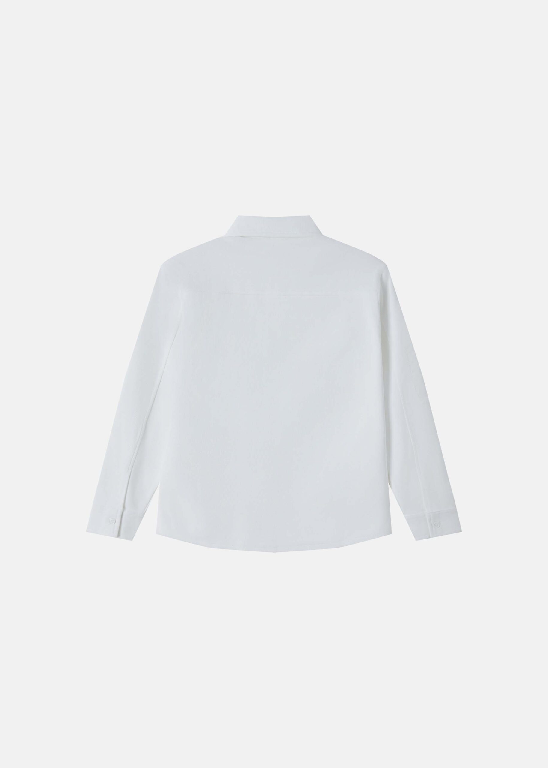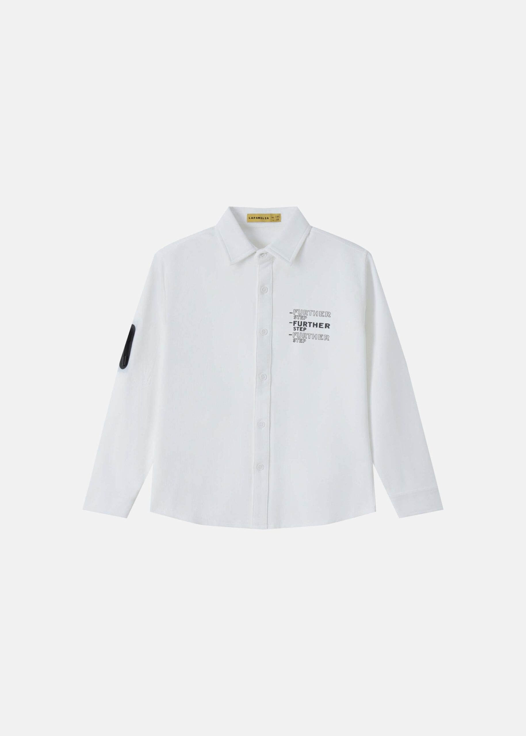 Kids boy shirt, “Further Step” printed from the front, rolled collar, front buttons to close, long sleeves with tight cuff, unique and modern