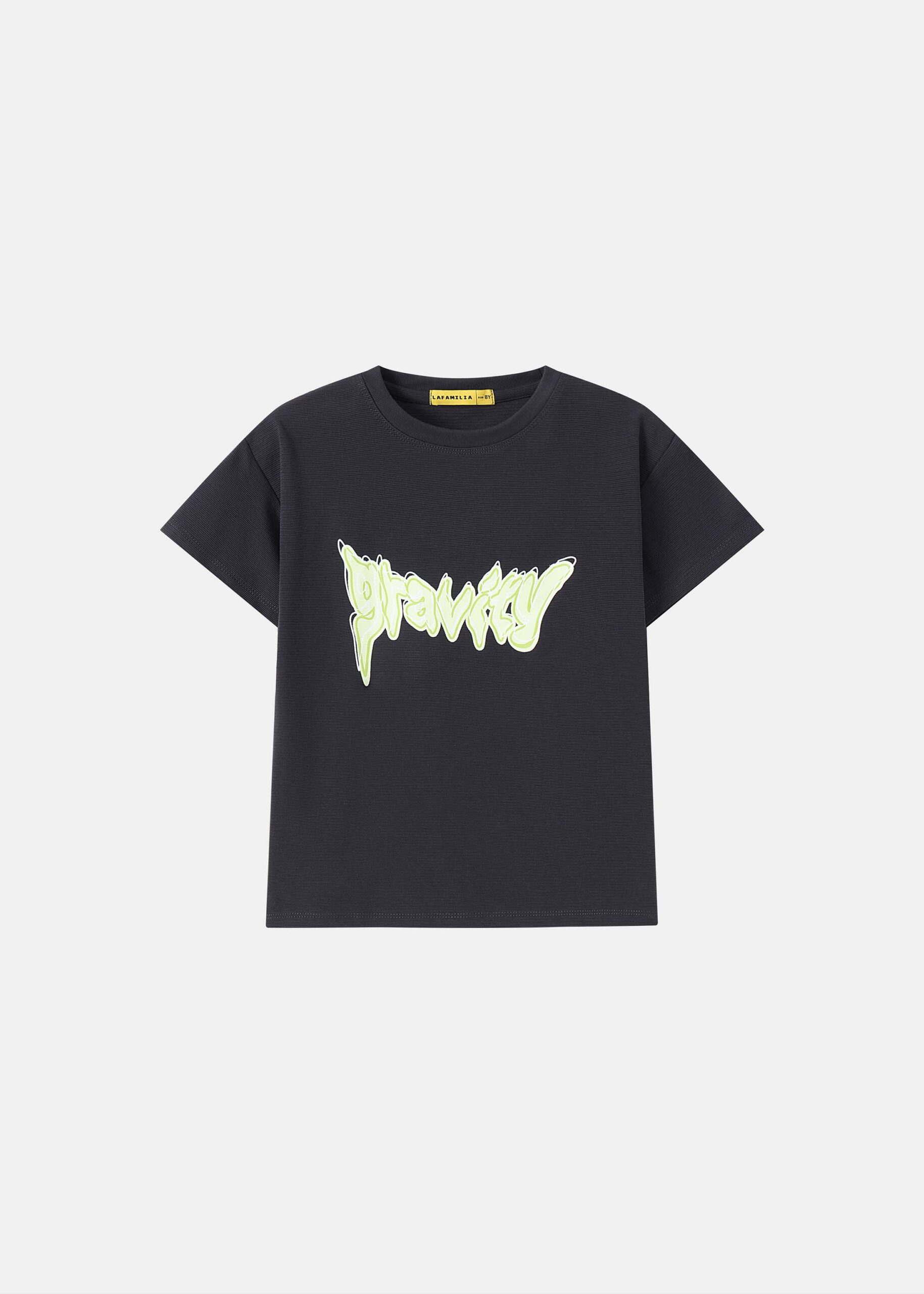 Kids boy t-shirt, “Gravity” printed from the front and back, round neck, short sleeves, practical and modern