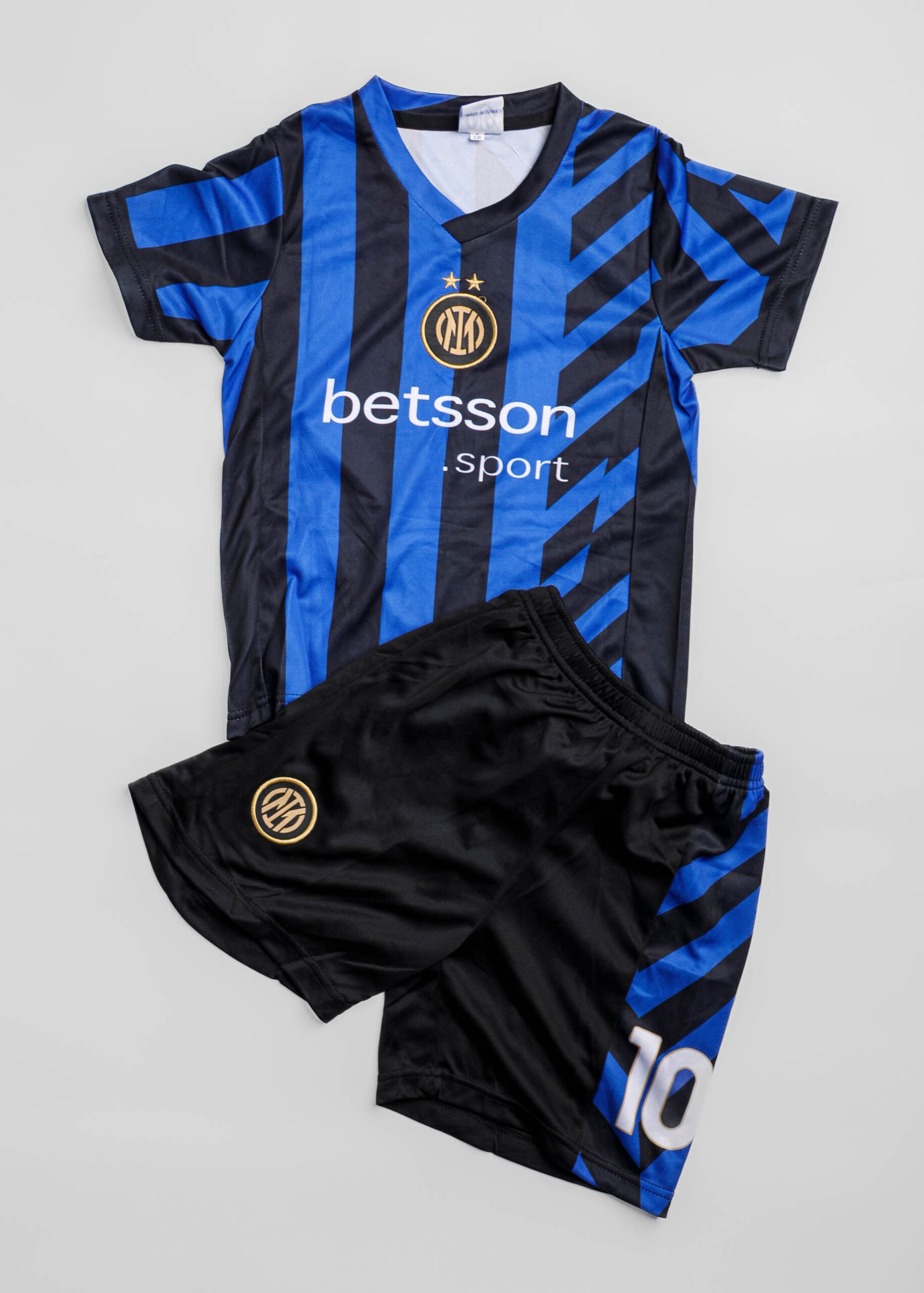 Kids boy suit, football Inter Milan team, two-pieces, t-shirt, “Lautaro 10”, V neck, short sleeves, short, elastic waist, comfortable and practical