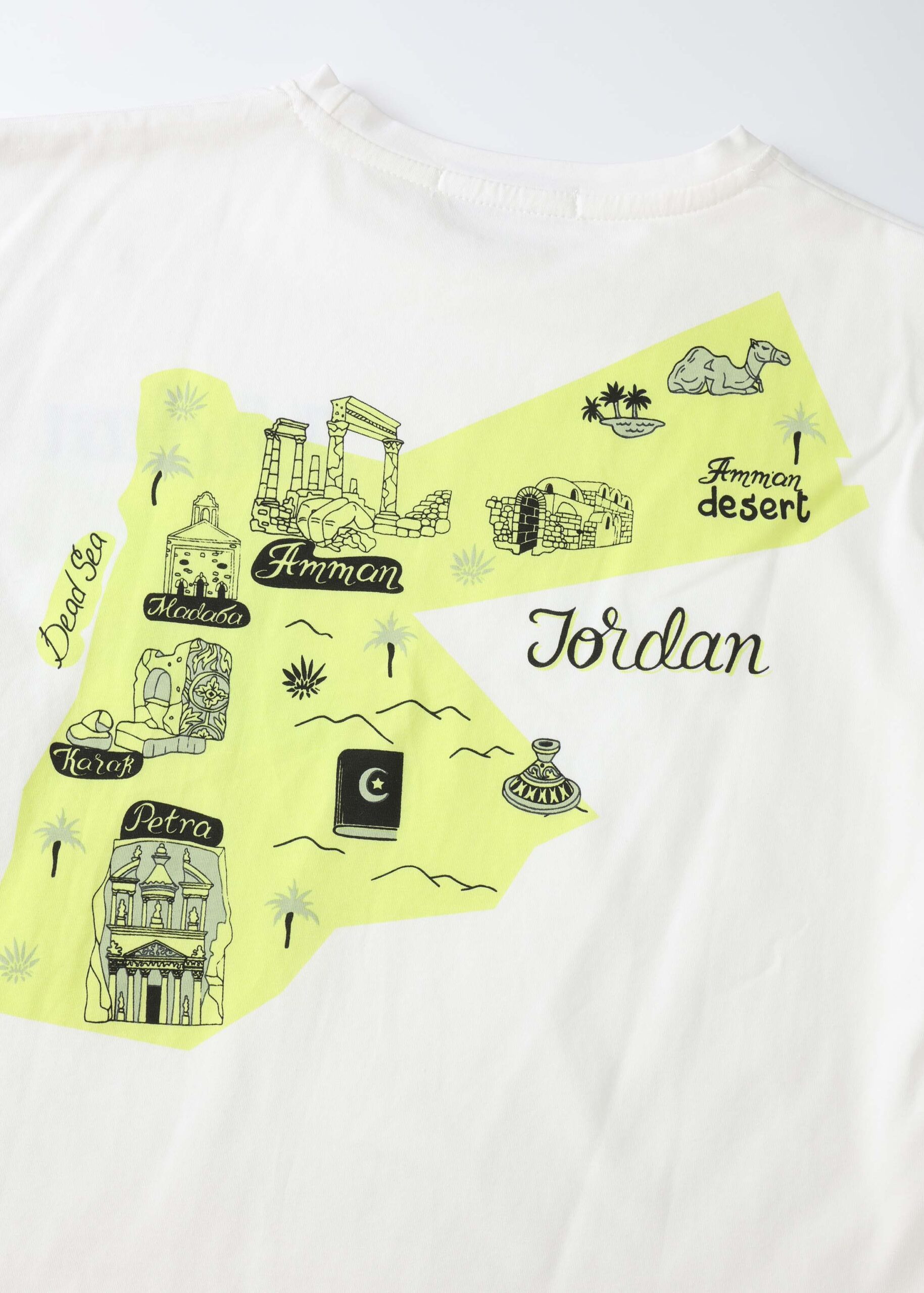 Kids boy t-shirt, front print of the Jordan map and a back print featuring a detailed map of the country with governate names, round neck, short sleeve, modern and unique