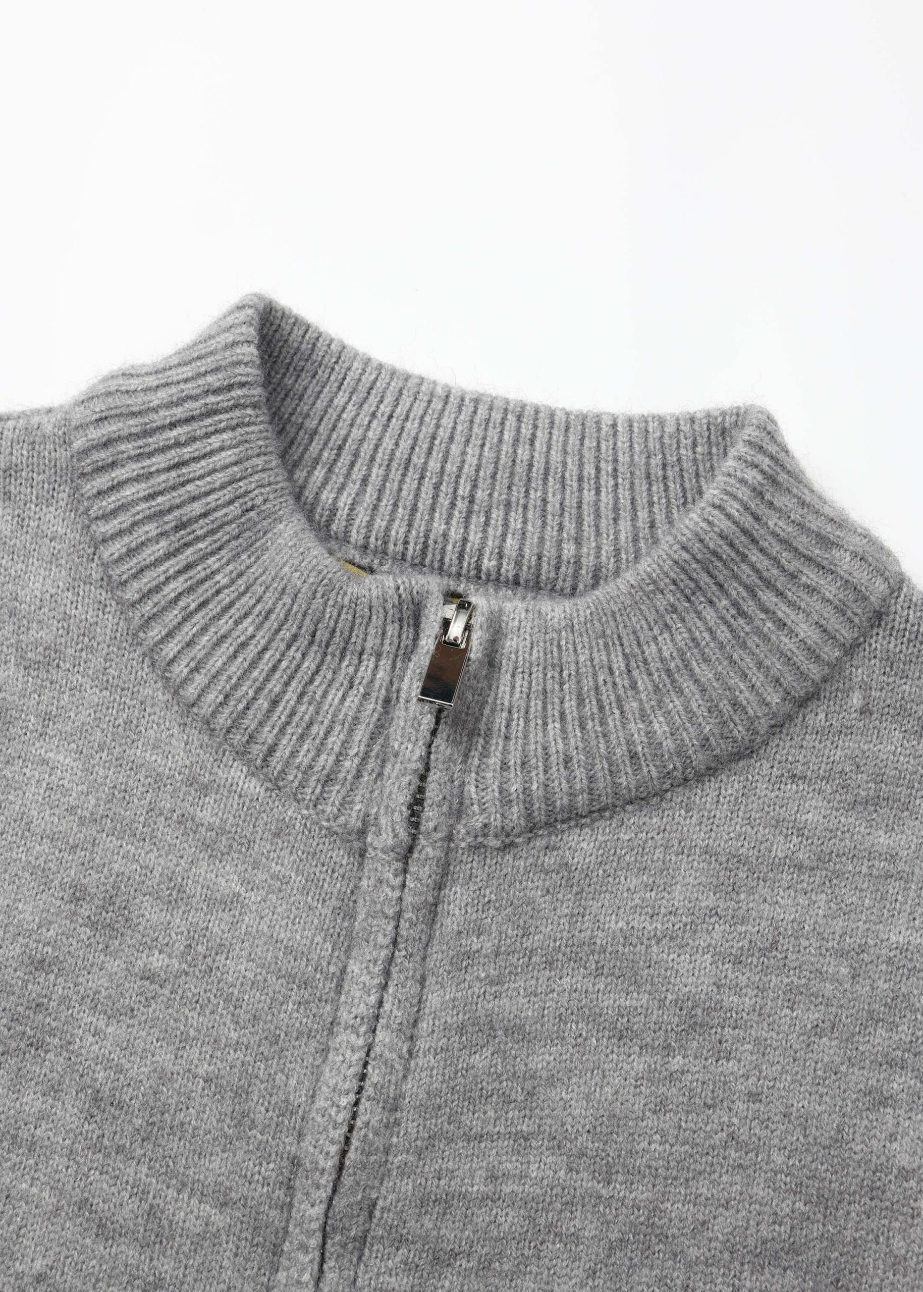 Kids boy sweater, knitted, plain, high neck, front zipper closure, long sleeves, warm and practical