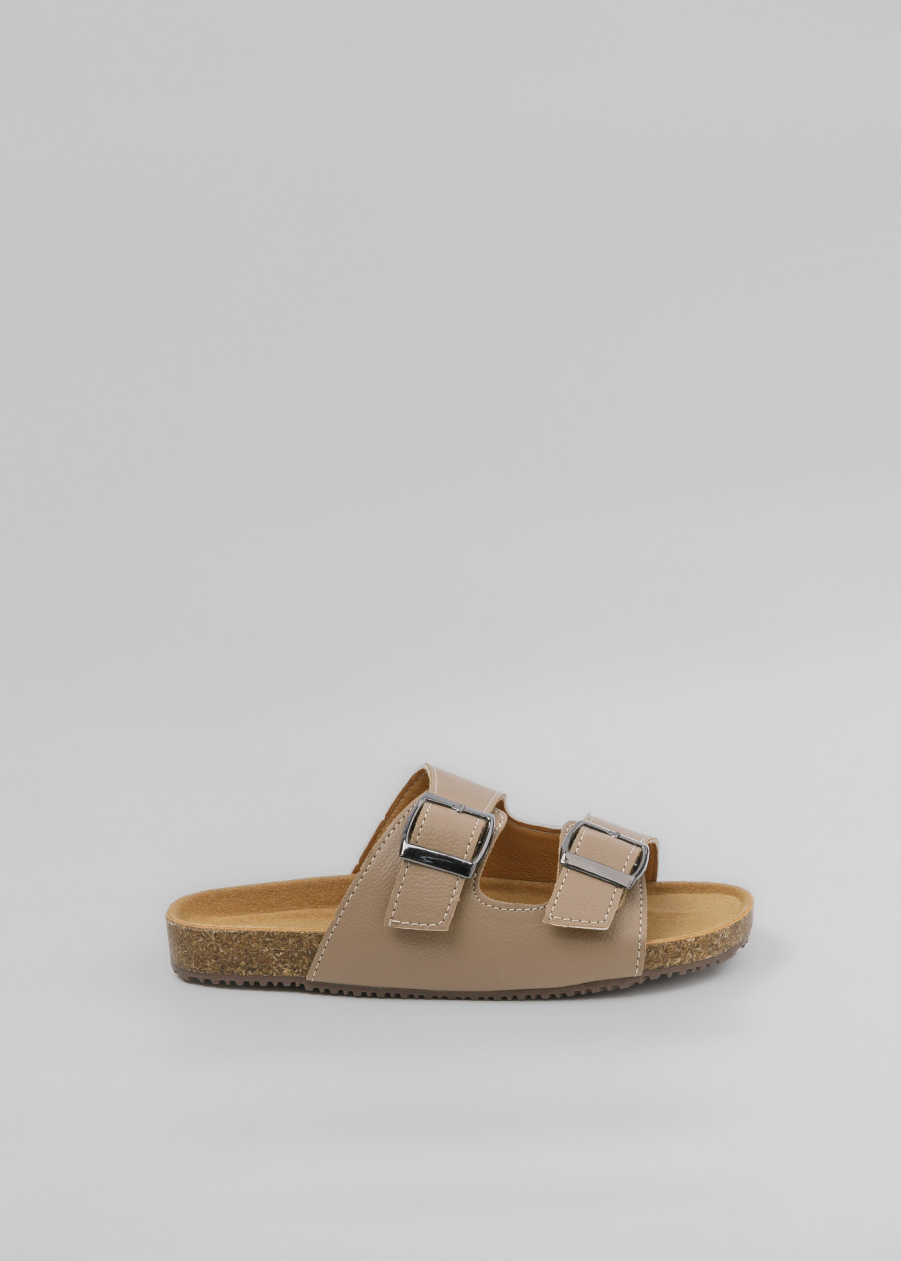Kids boy slipper, leather, open round toe, rubber sole, upper straps, unique and modern