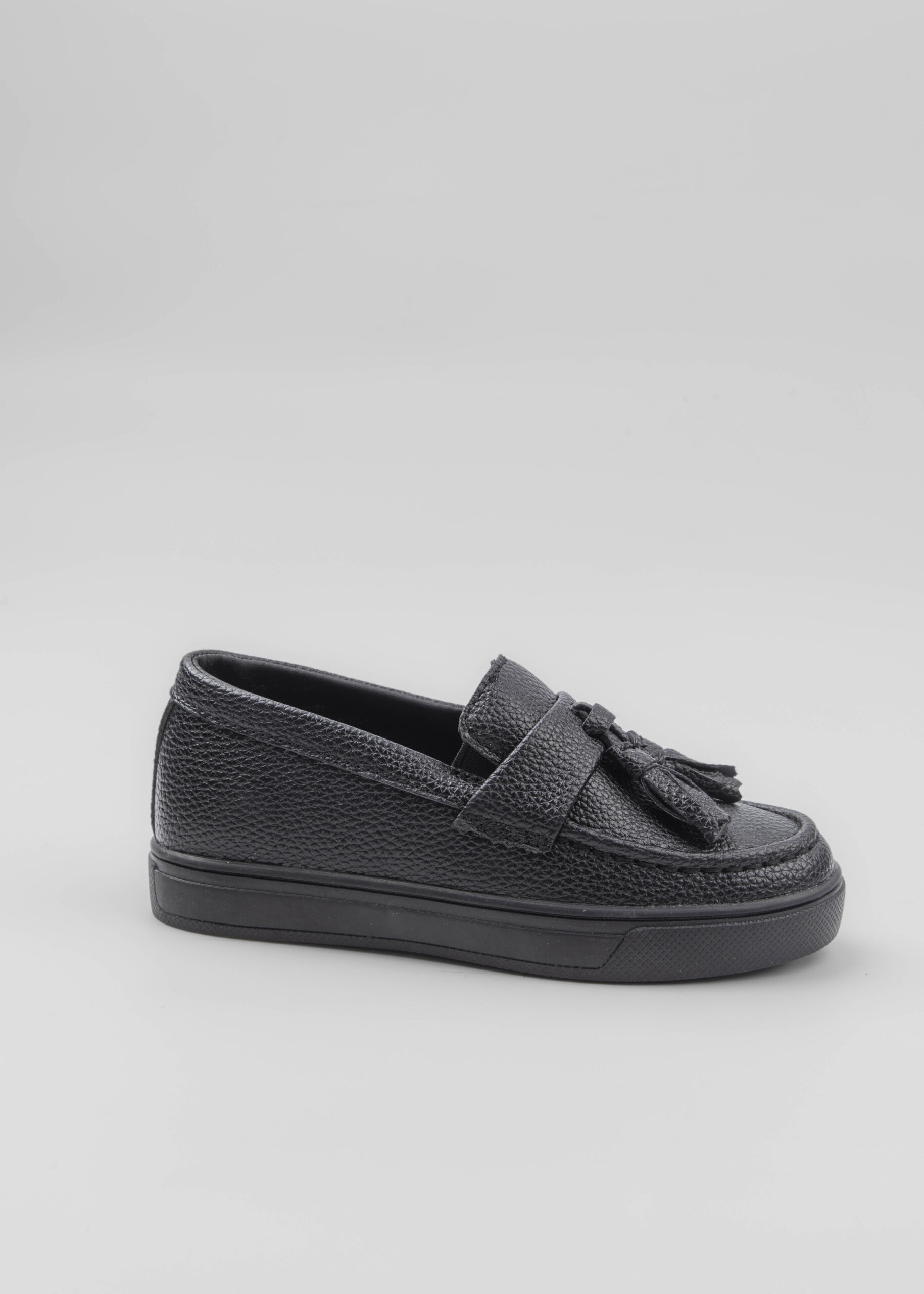 Kids boy topsider, leather, round toe, upper tassel decor, rubber sole, unique and modern