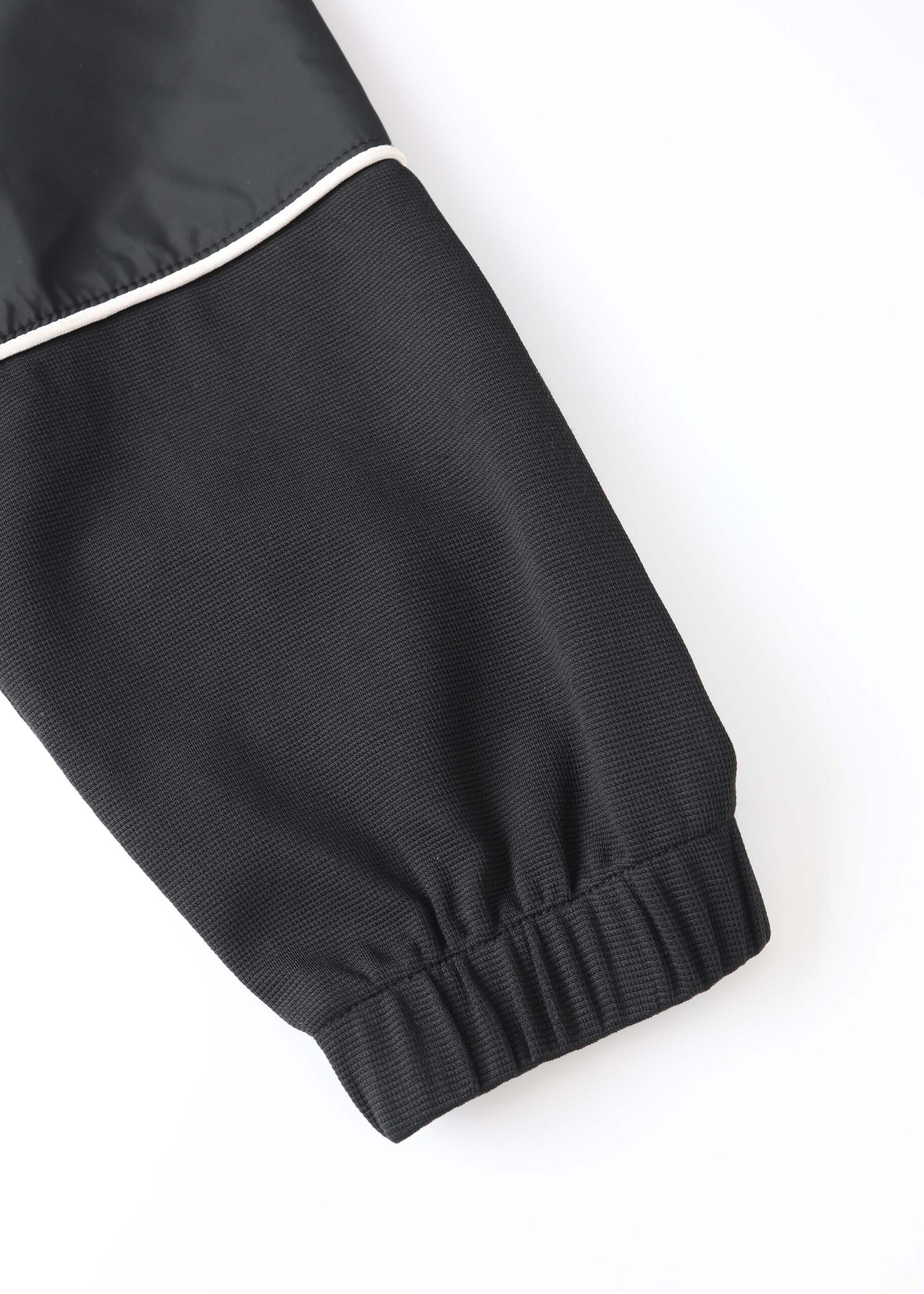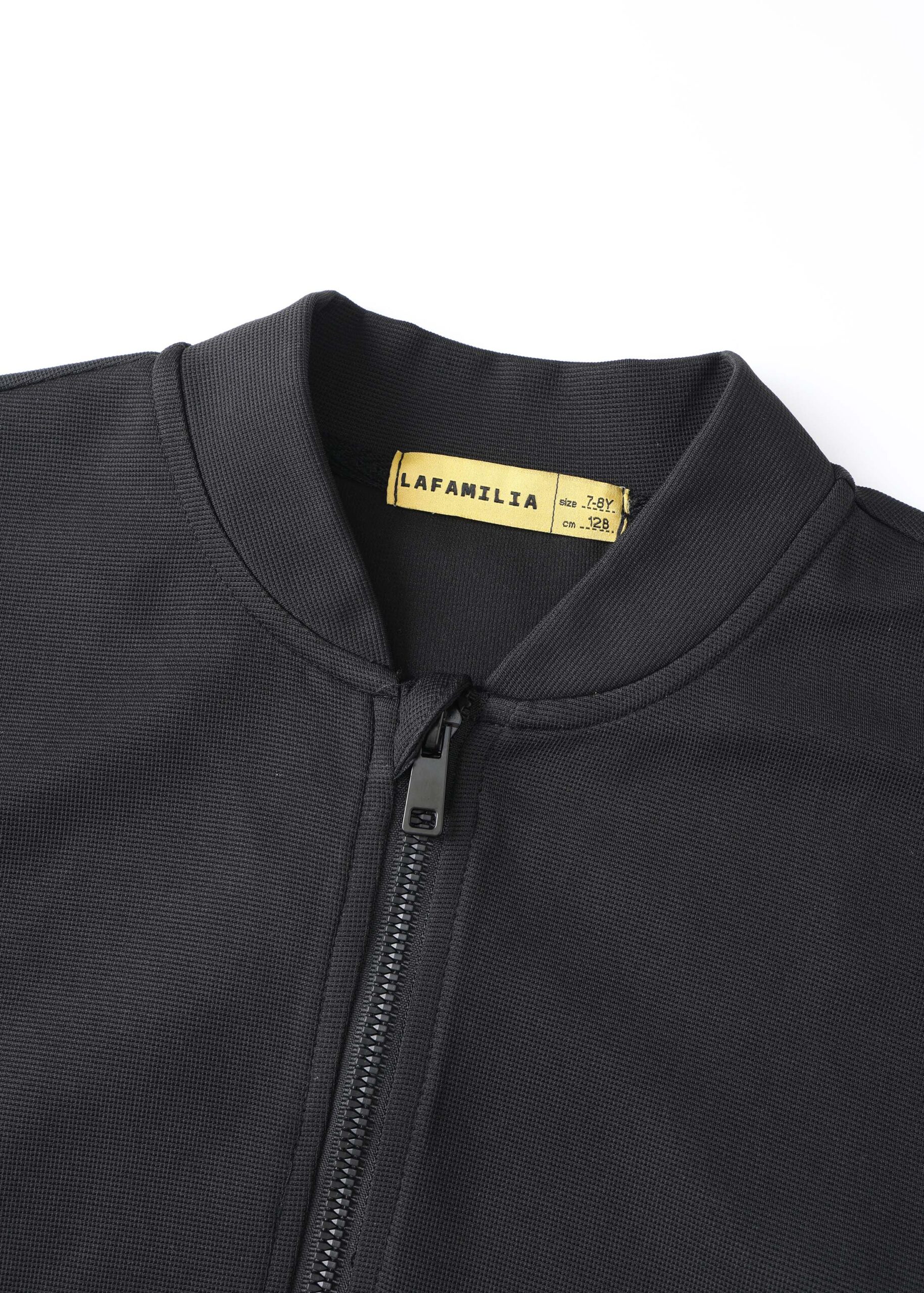 Kids boy jacket, mixed-media design, long sleeves with elastic cuff, front zipper closure, unique and modern