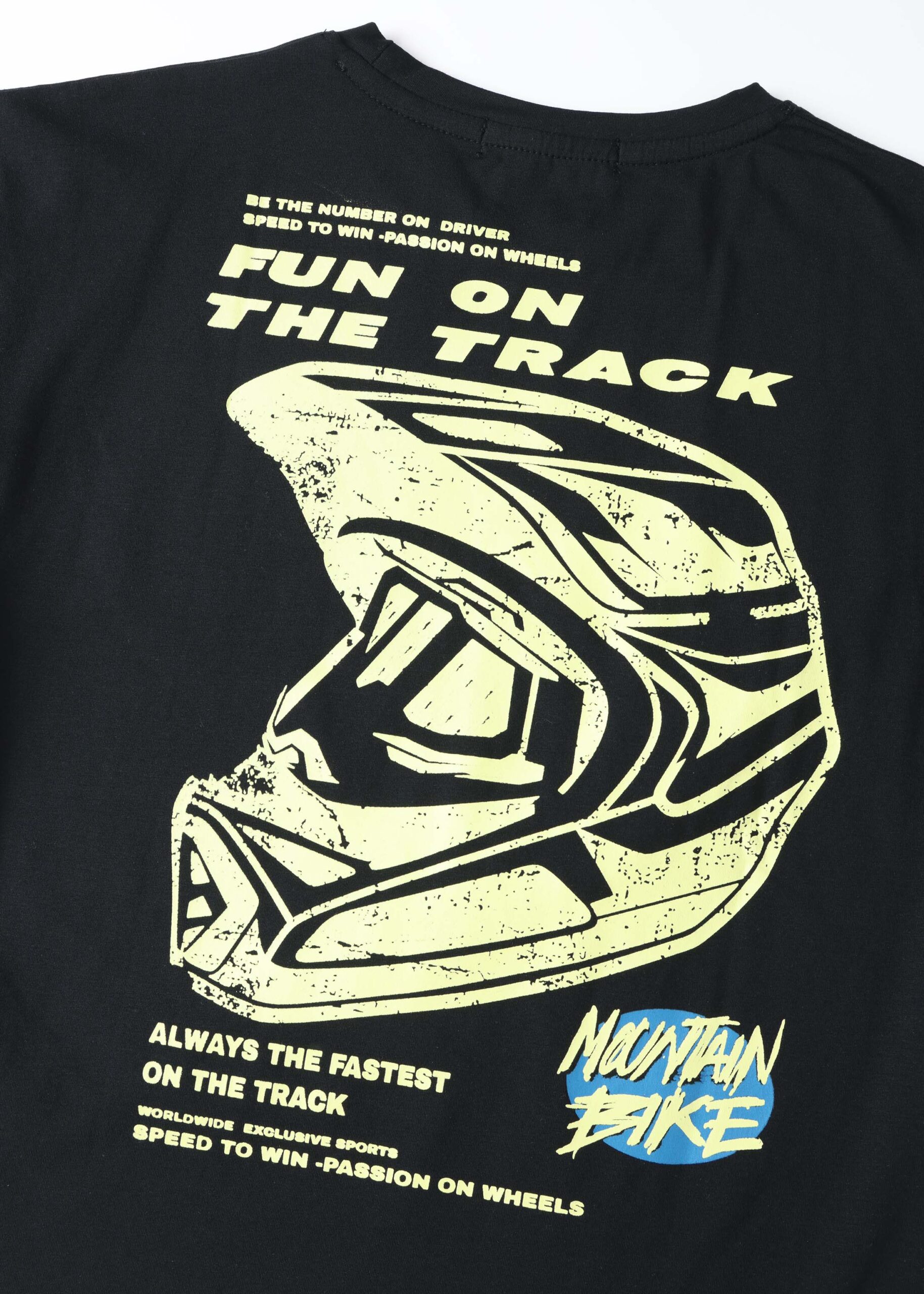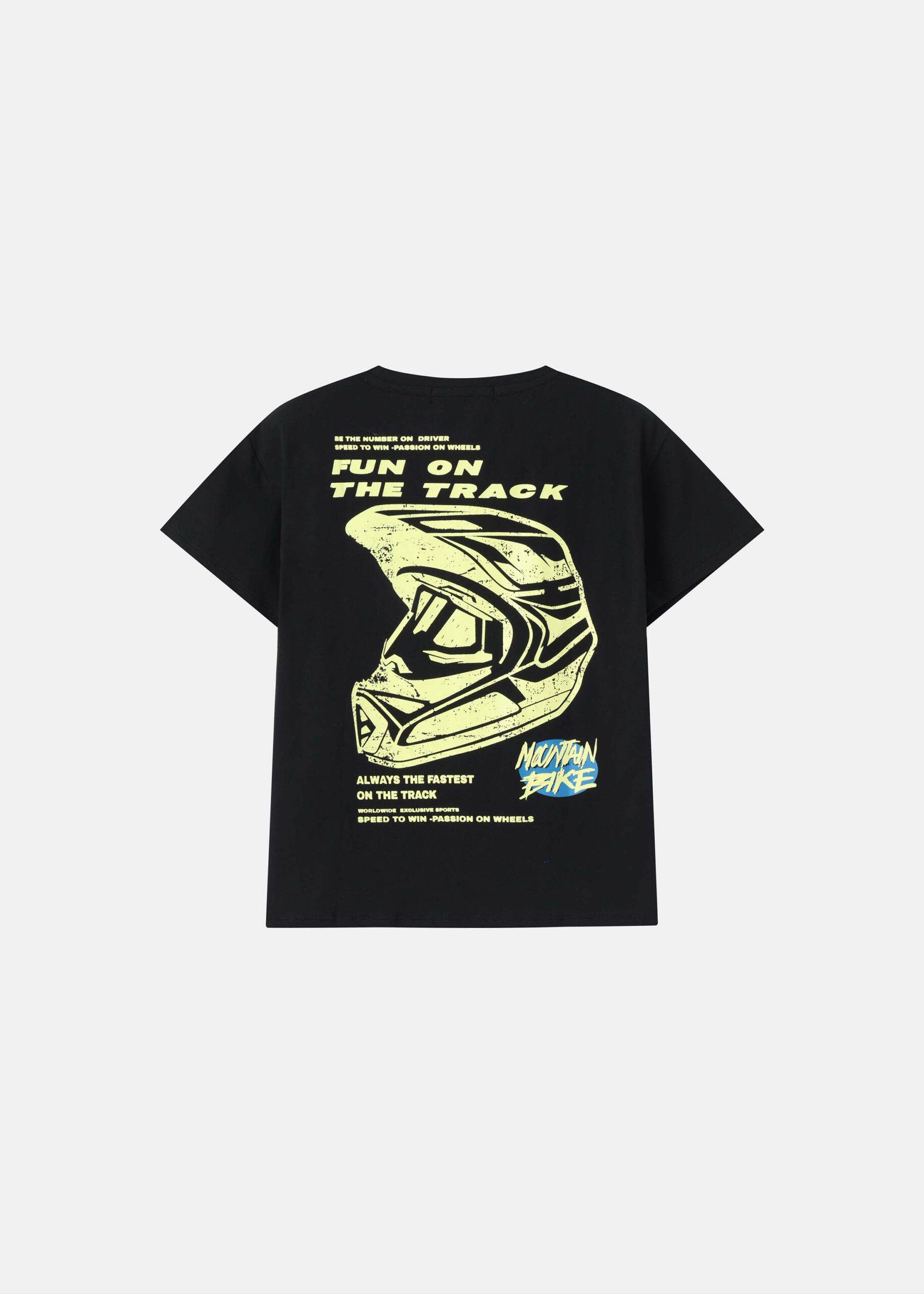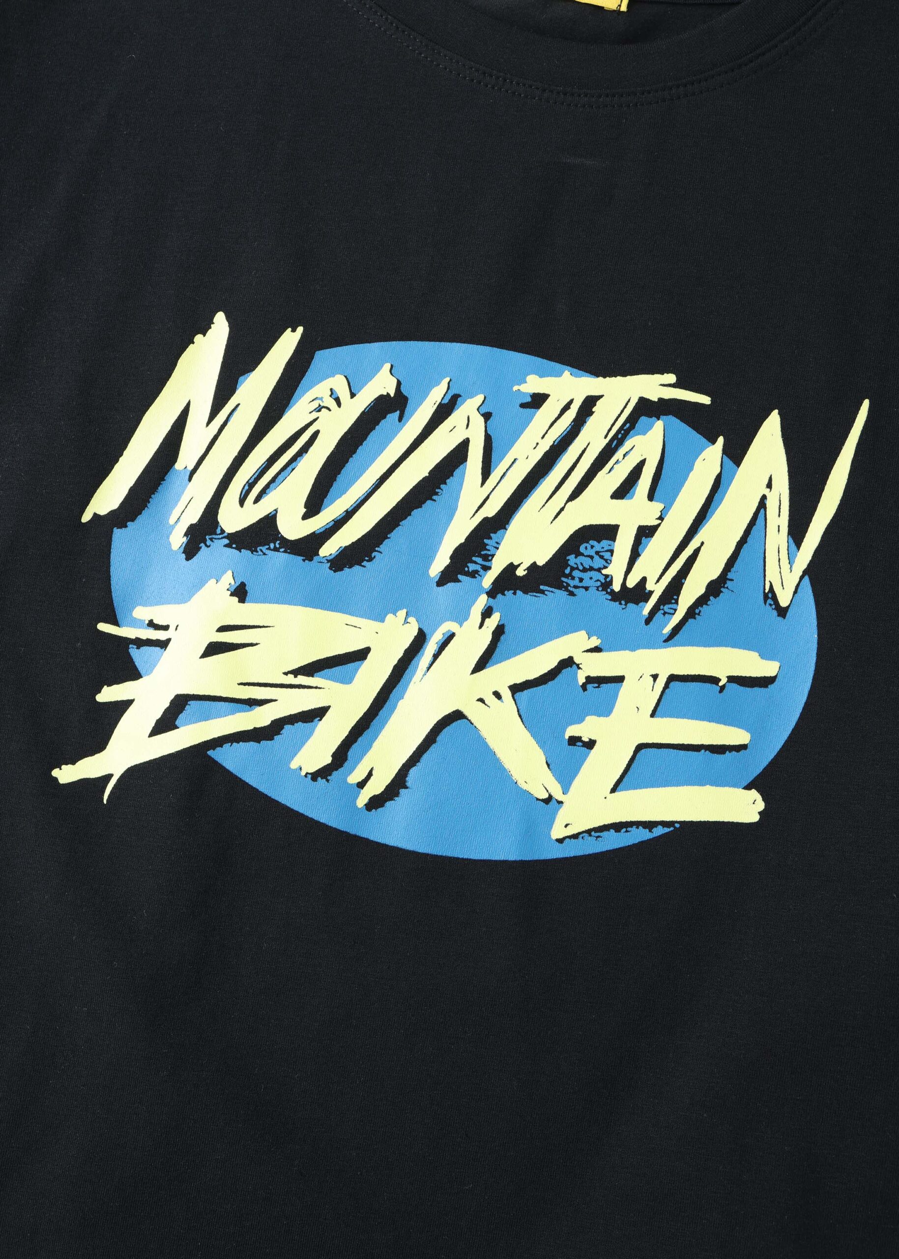 Kids boy t-shirt, drawings “Mountain Bike” printed from the front and back, round neck, short sleeves, practical and modern