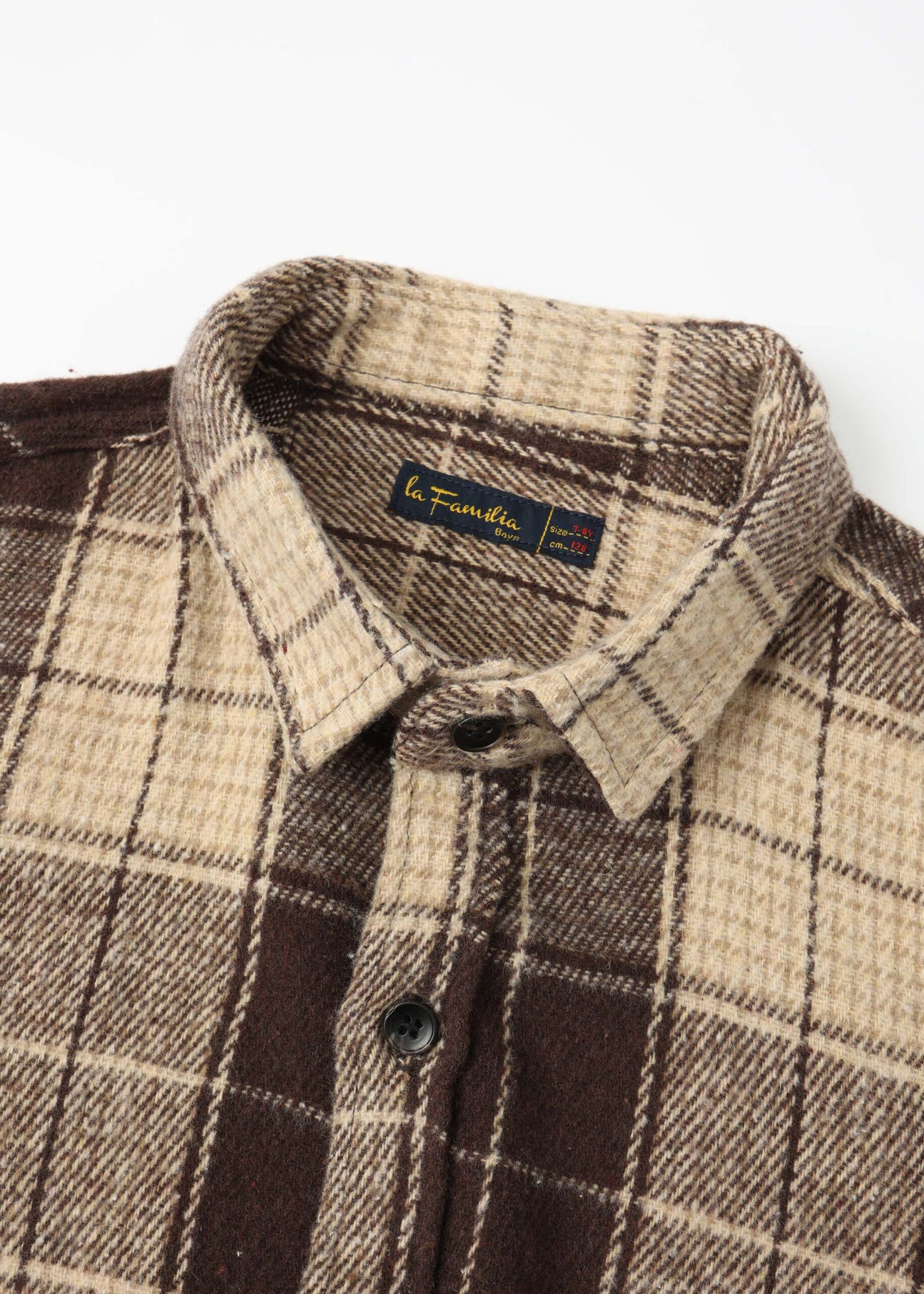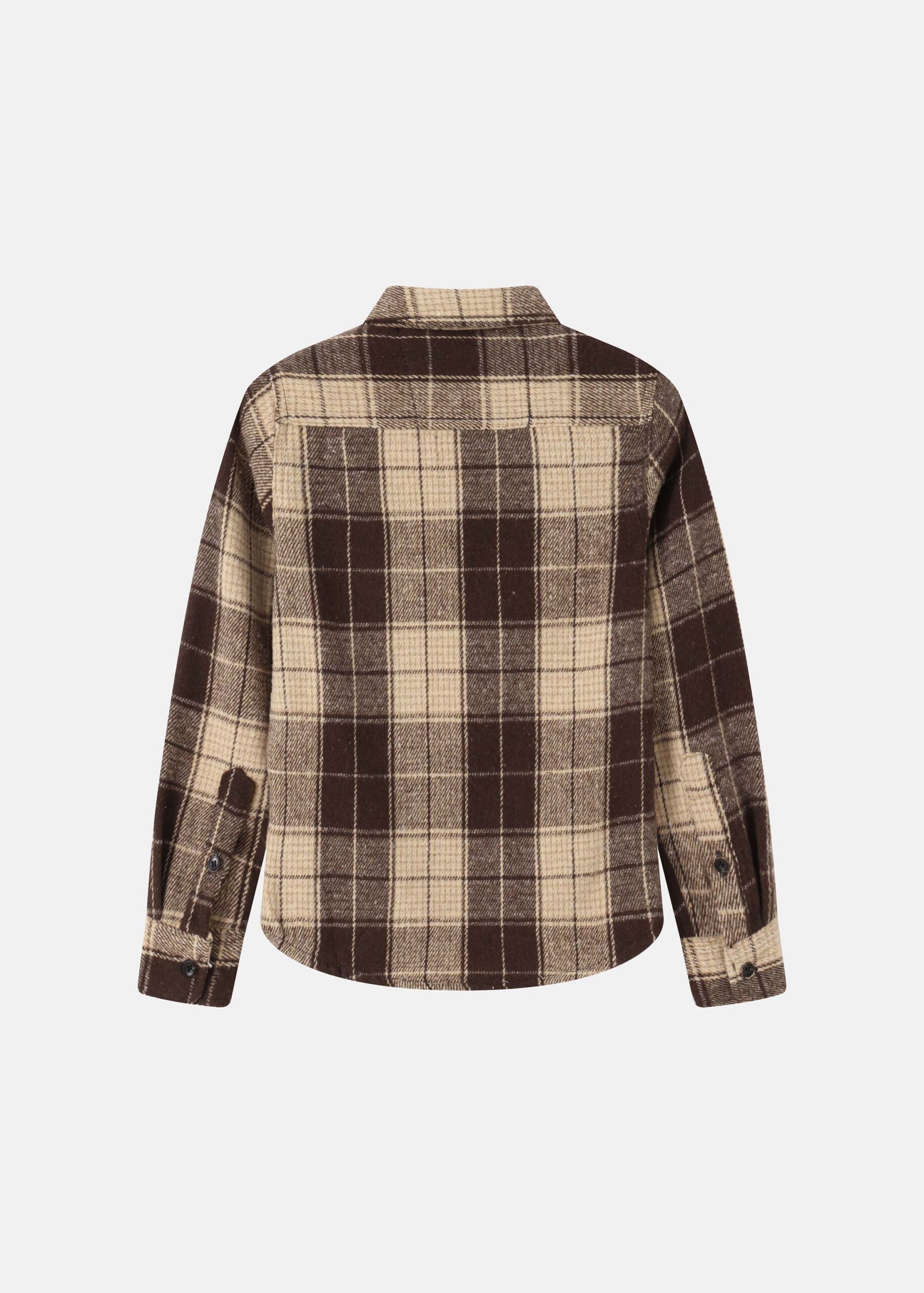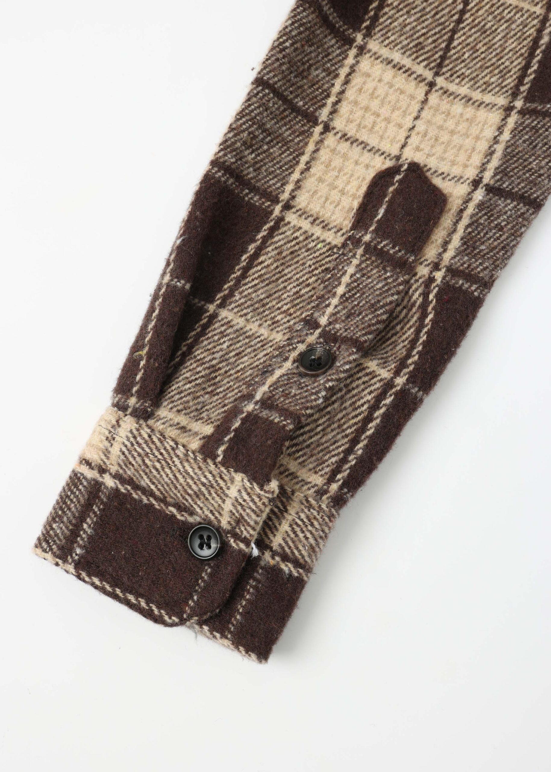 Kids boy shirt, plaid, wool, rolled collar, front buttons to close, long sleeves, tight cuff with button, unique and warm