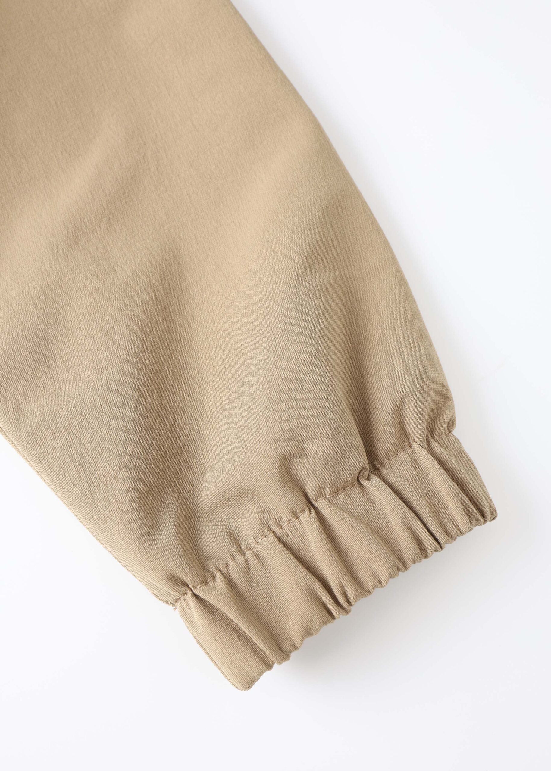 Kids boy jacket, plain, high-neck, long sleeves with elastic cuff, front pockets with snap buttons, front zipper closure with snap buttons, unique and practical
