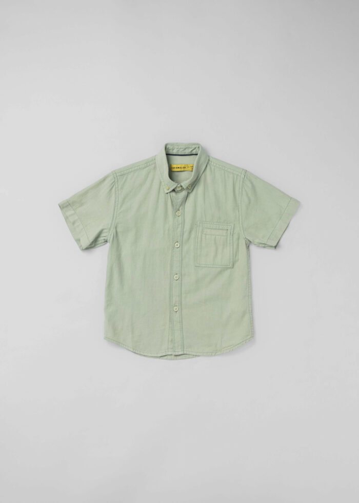 Kids boy shirt, plain, rolled collar with front button, short sleeves, front buttons to close, front pocket, modern and practical