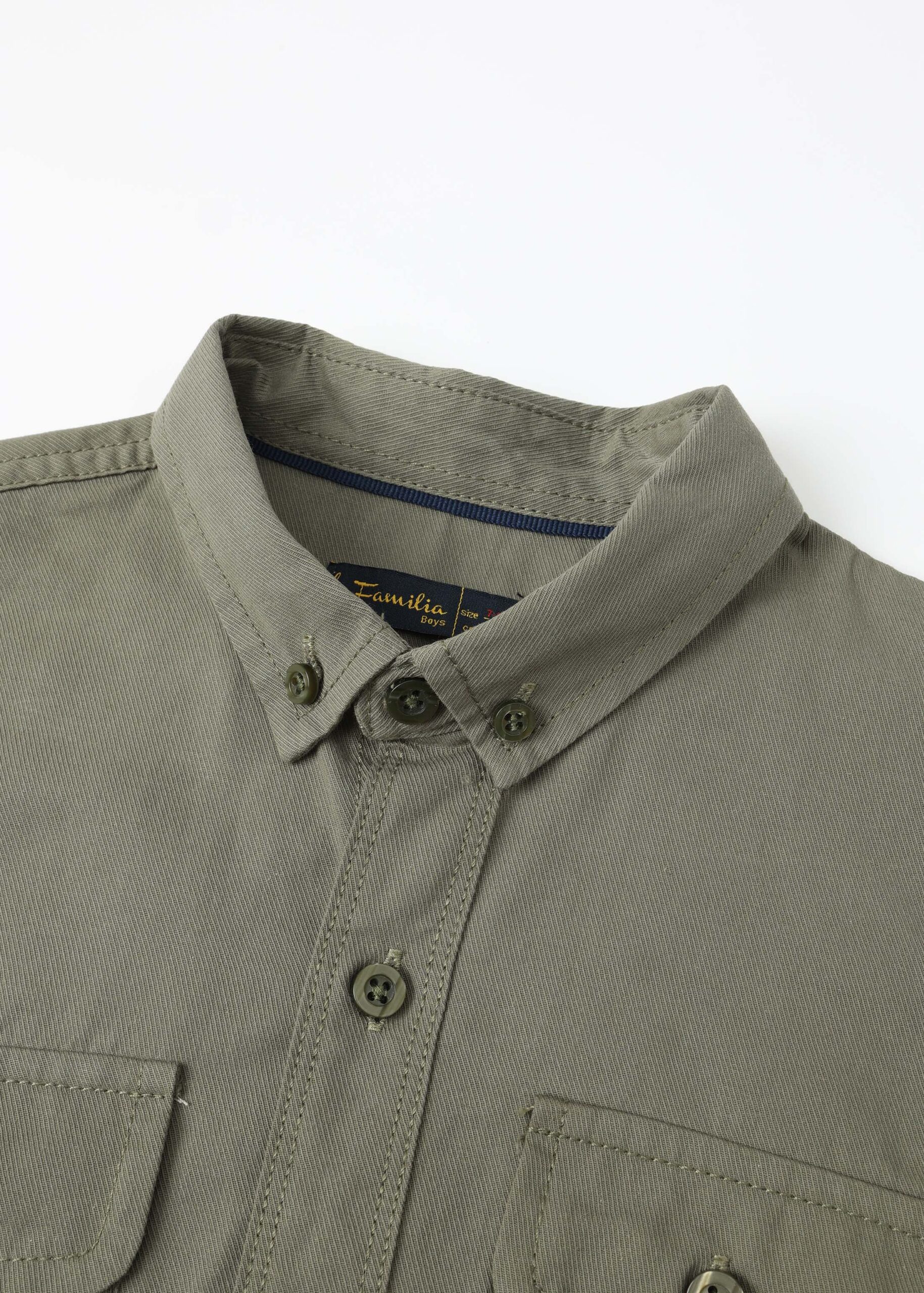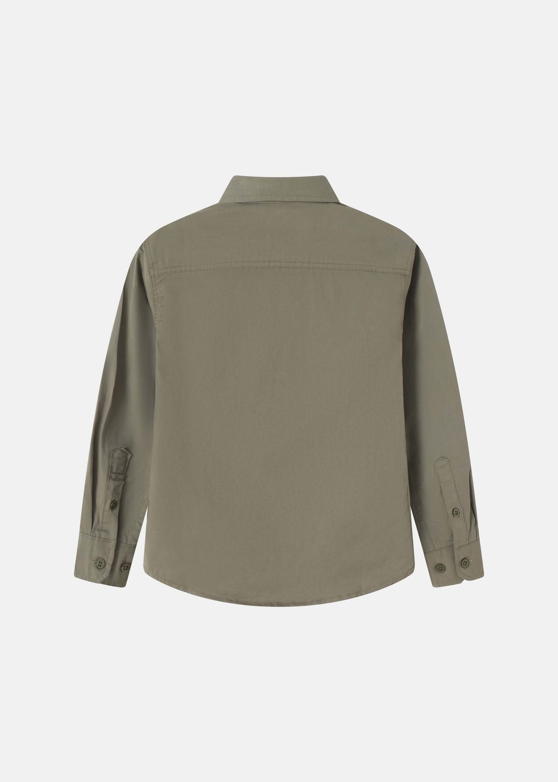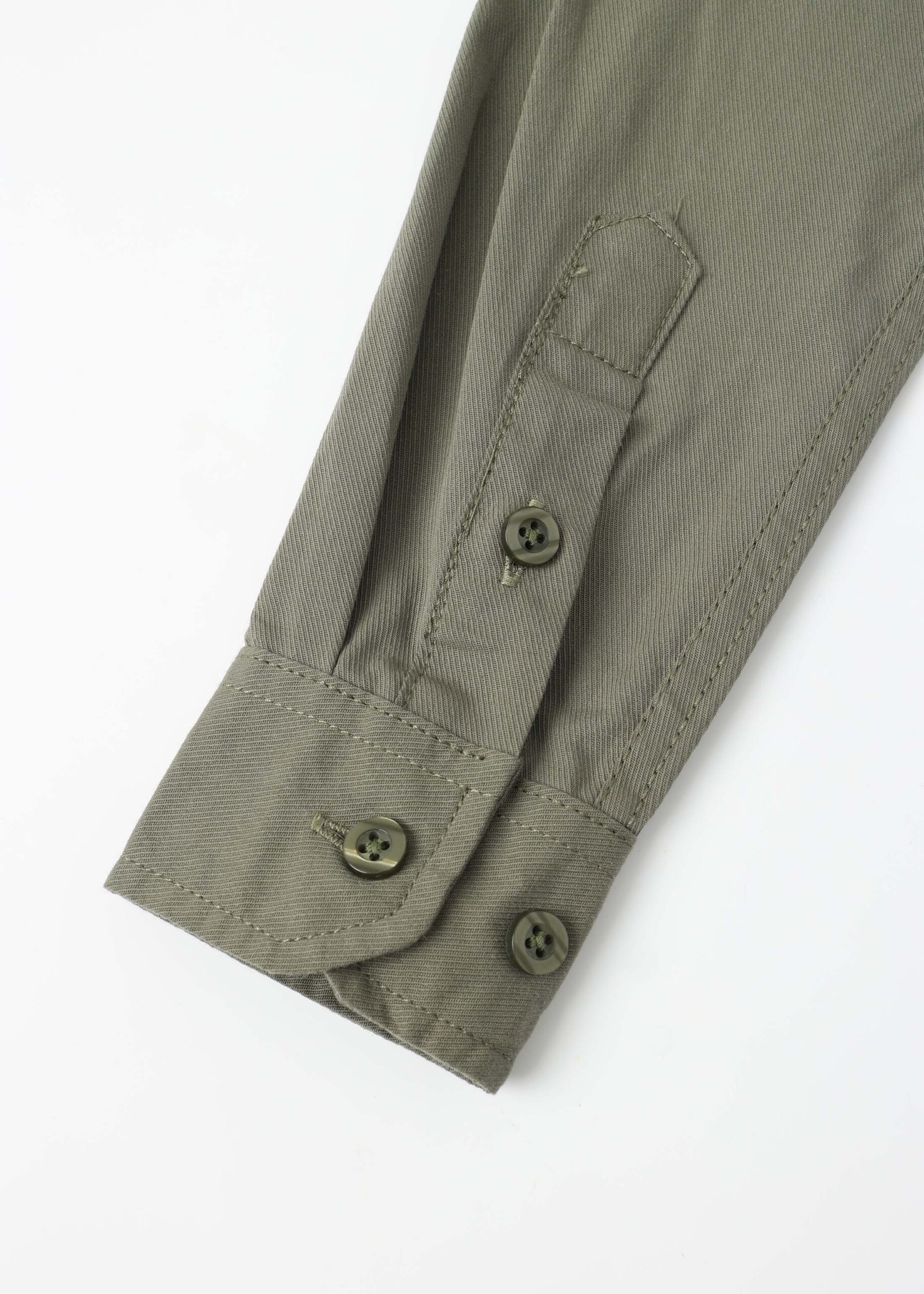 Kids boy shirt, plain, rolled collar, front buttons to close, long sleeves, tight cuff with button, front pockets, unique and modern