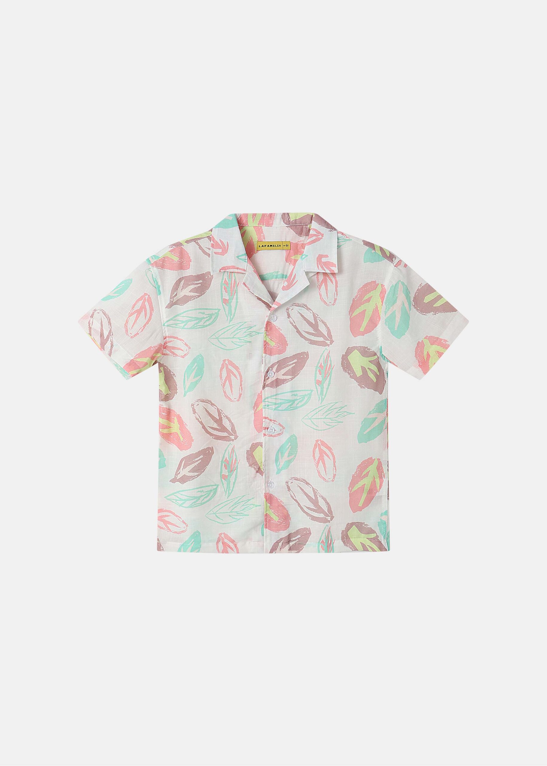 Kids boy shirt, printed, rolled collar, front buttons to close, short sleeves, unique and colorful