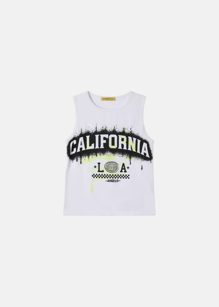 Kids boy top, front “Clifornia” printed, round neck, sleeveless, unique and modern