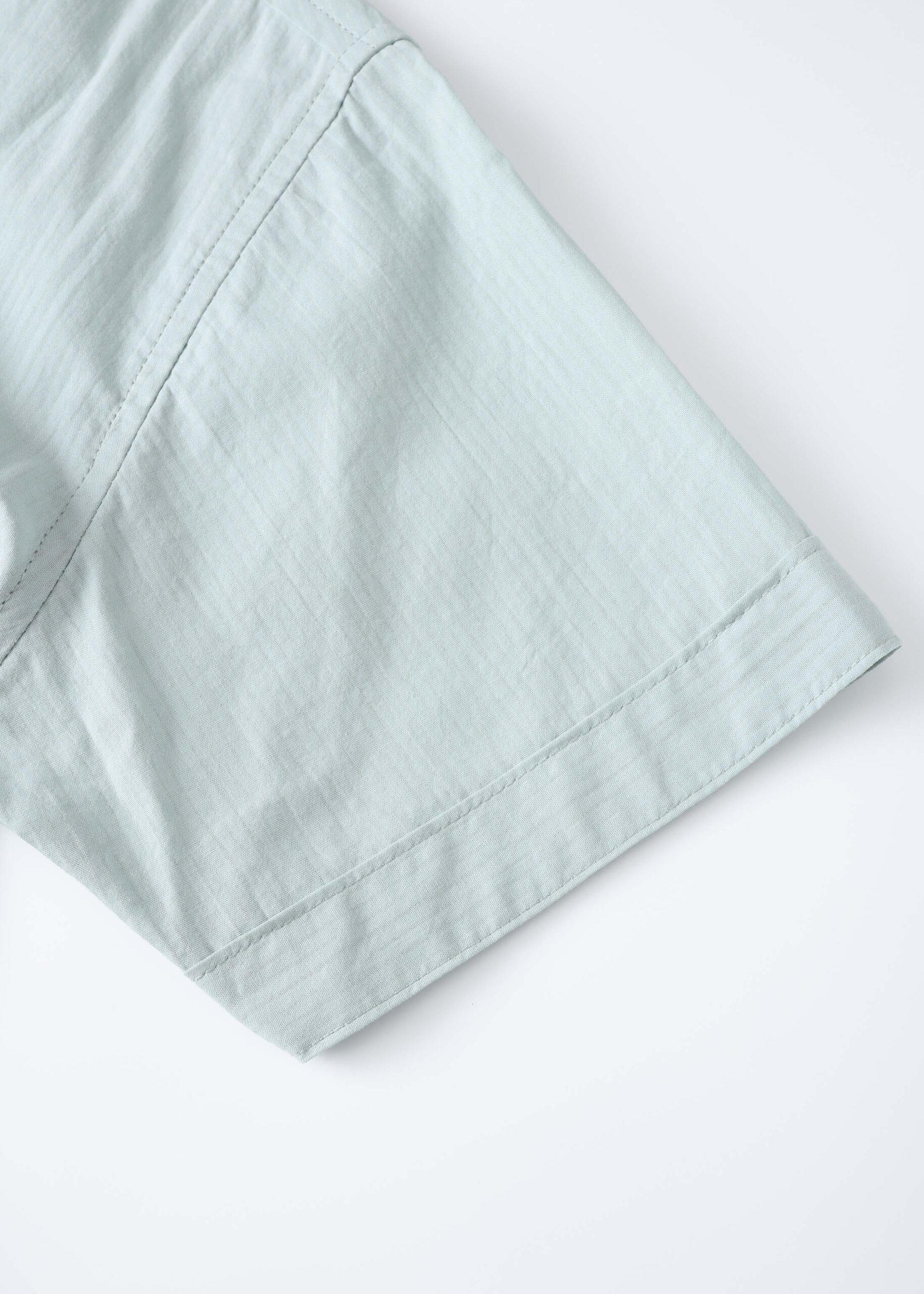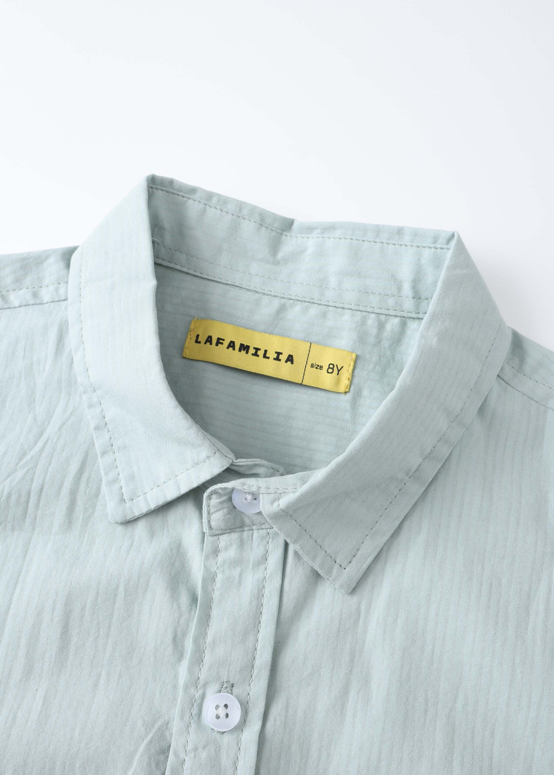 Kids boy shirt, striped fabric, rolled collar, front buttons to close, short sleeves, unique and practical