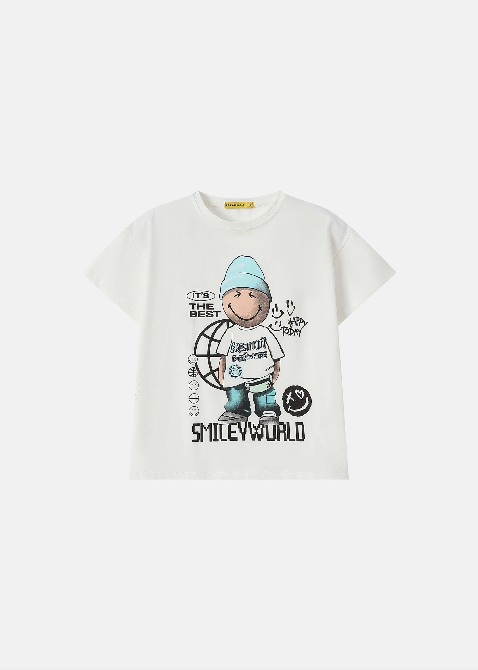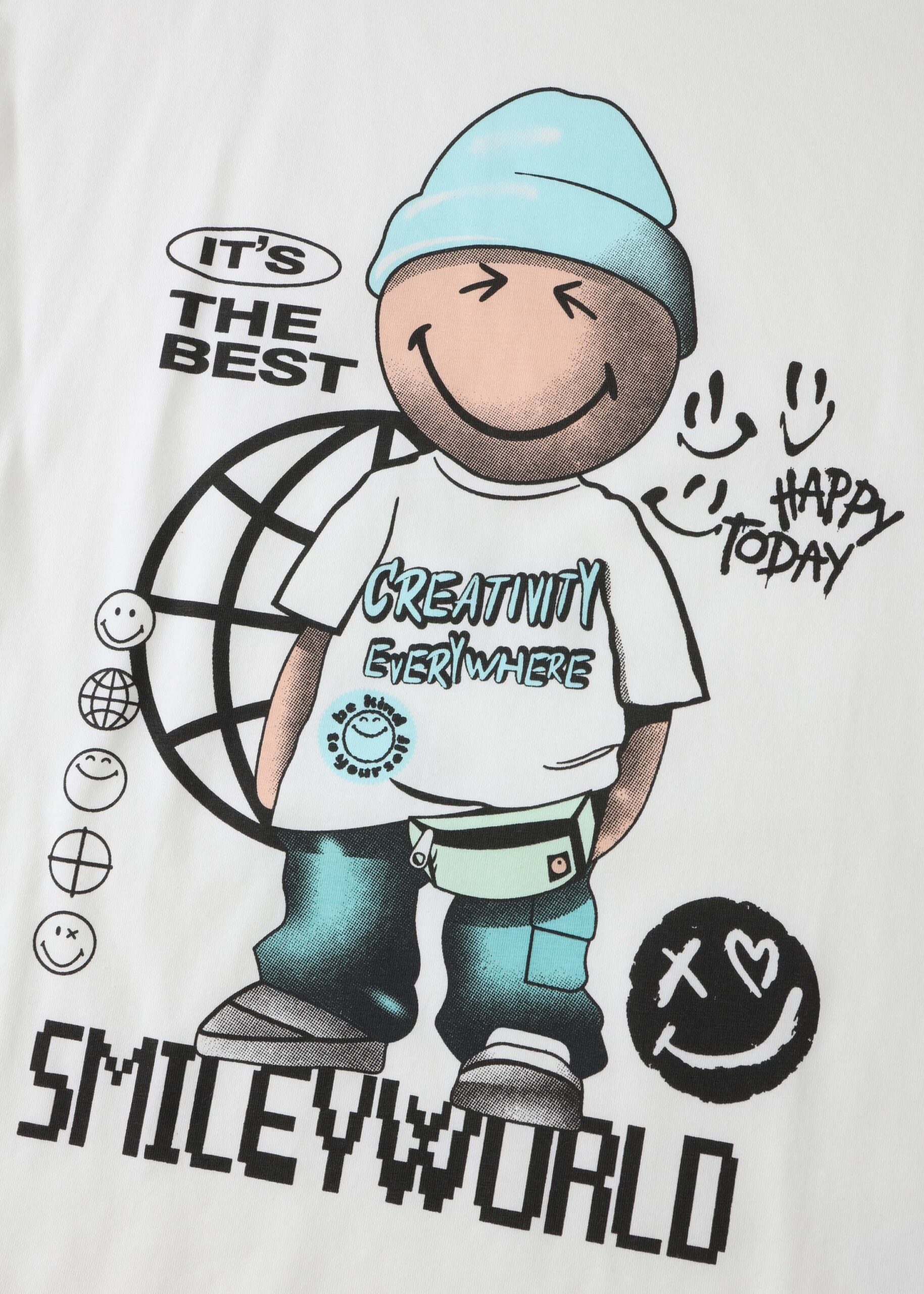 Kids boy t-shirt, drawings “Smiley World” printed from the front, round neck, short sleeves, practical and modern