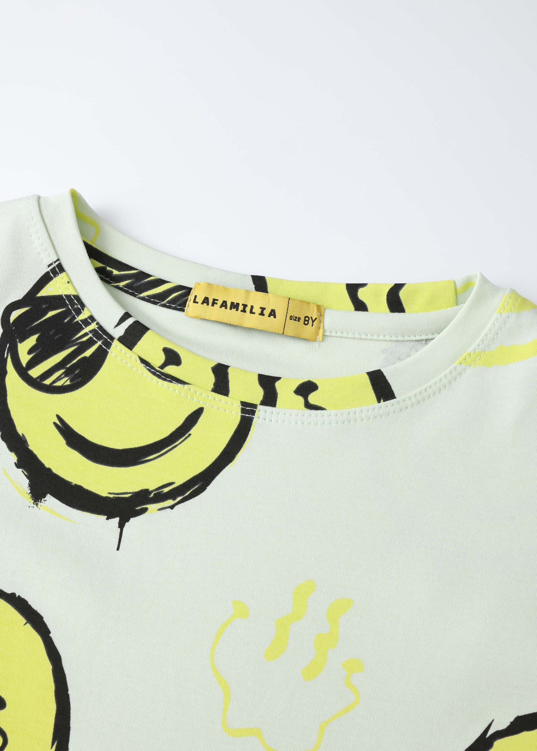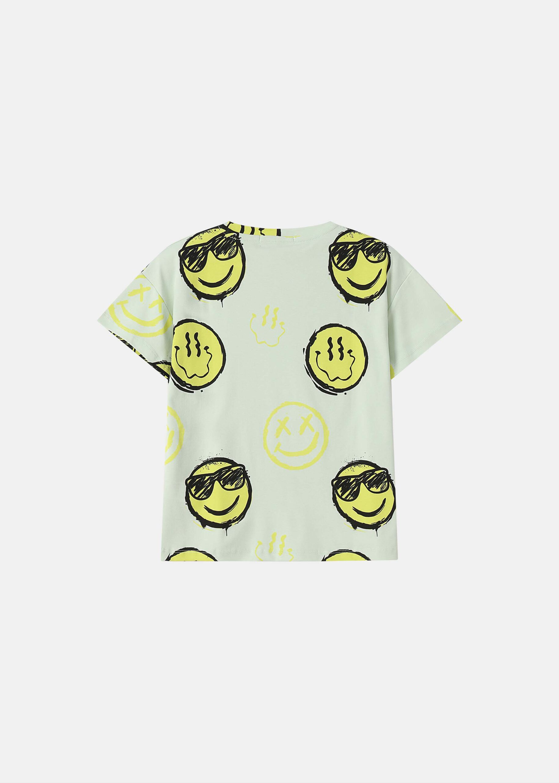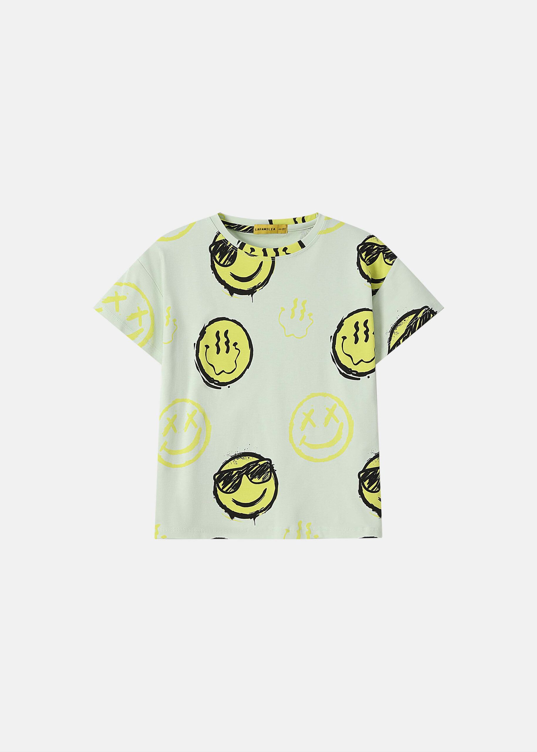 Kids boy t-shirt, smiley faces printed, round neck, short sleeves, practical and modern