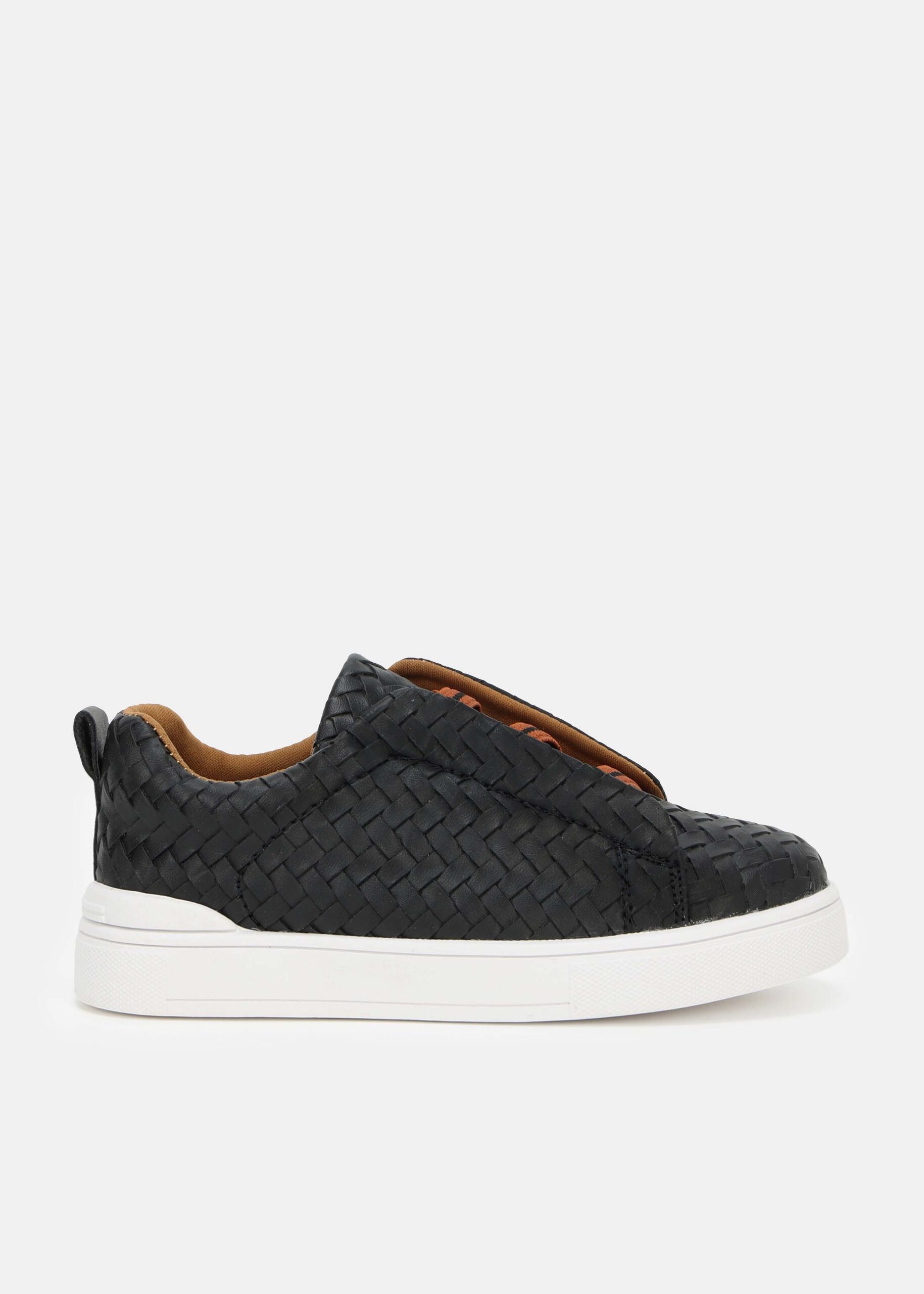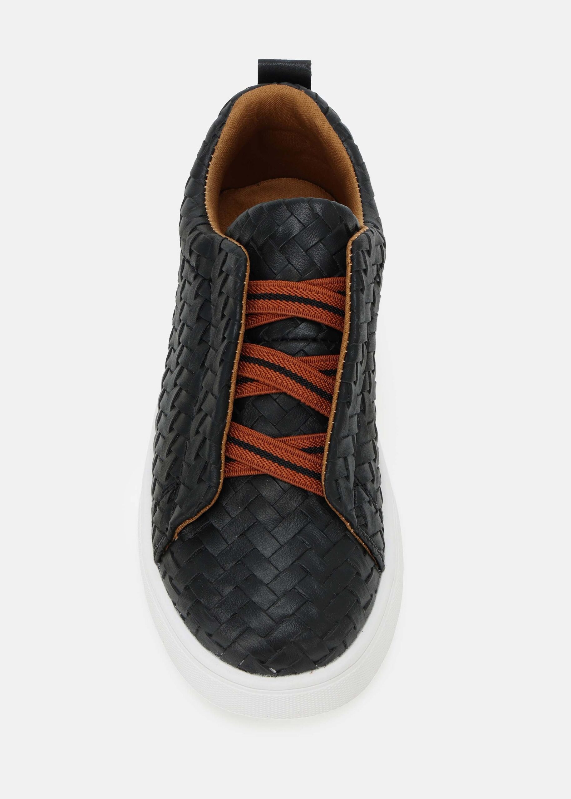 Kids boy sneakers, leather, rubber sole, round toe, elastic lace-up, unique and comfortable