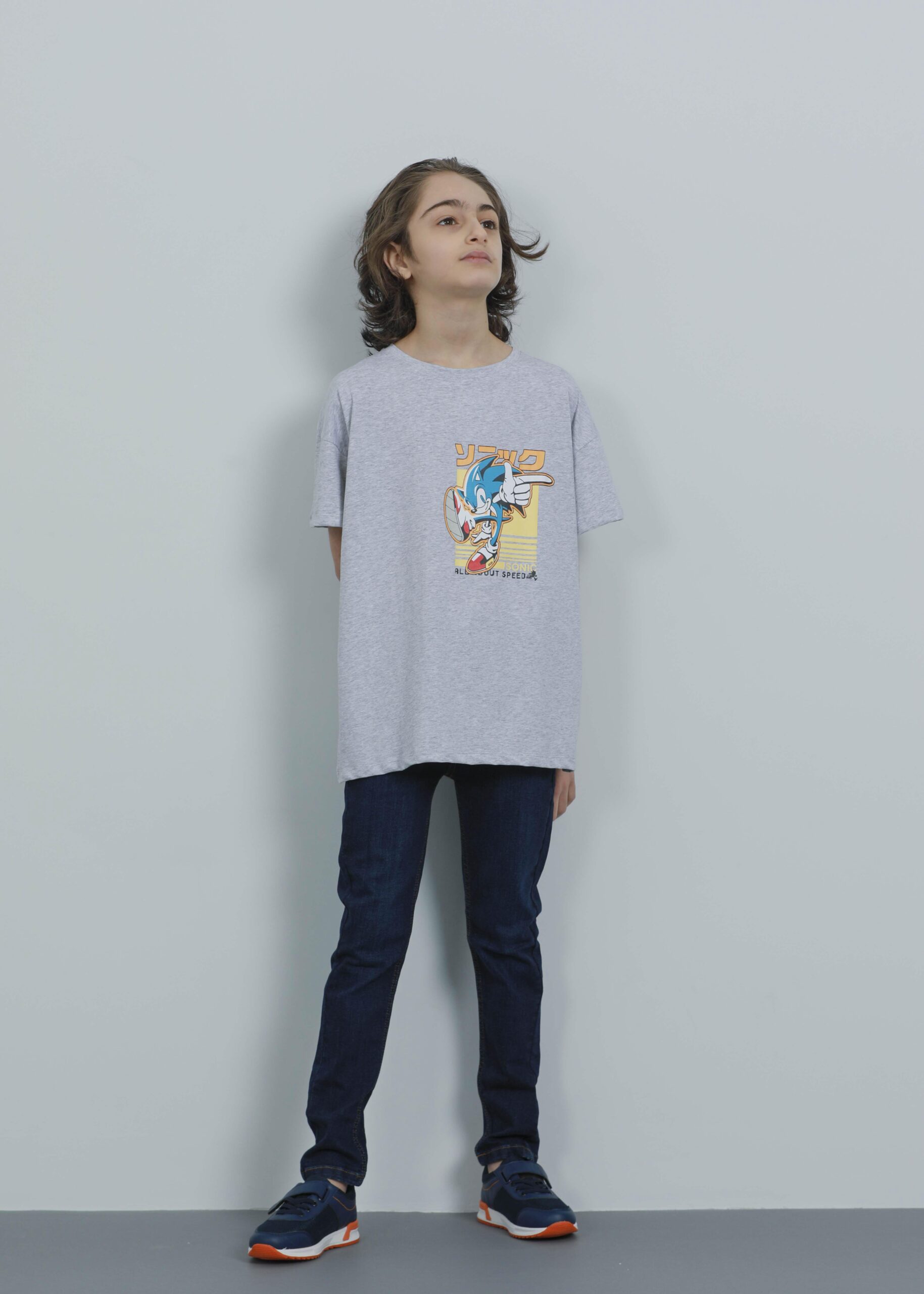 Kids boy t-shirt, sonic printed from the front, short sleeves, round neck, comfortable and practical, 70% Cotton 25% Polyester 5% Spandex
