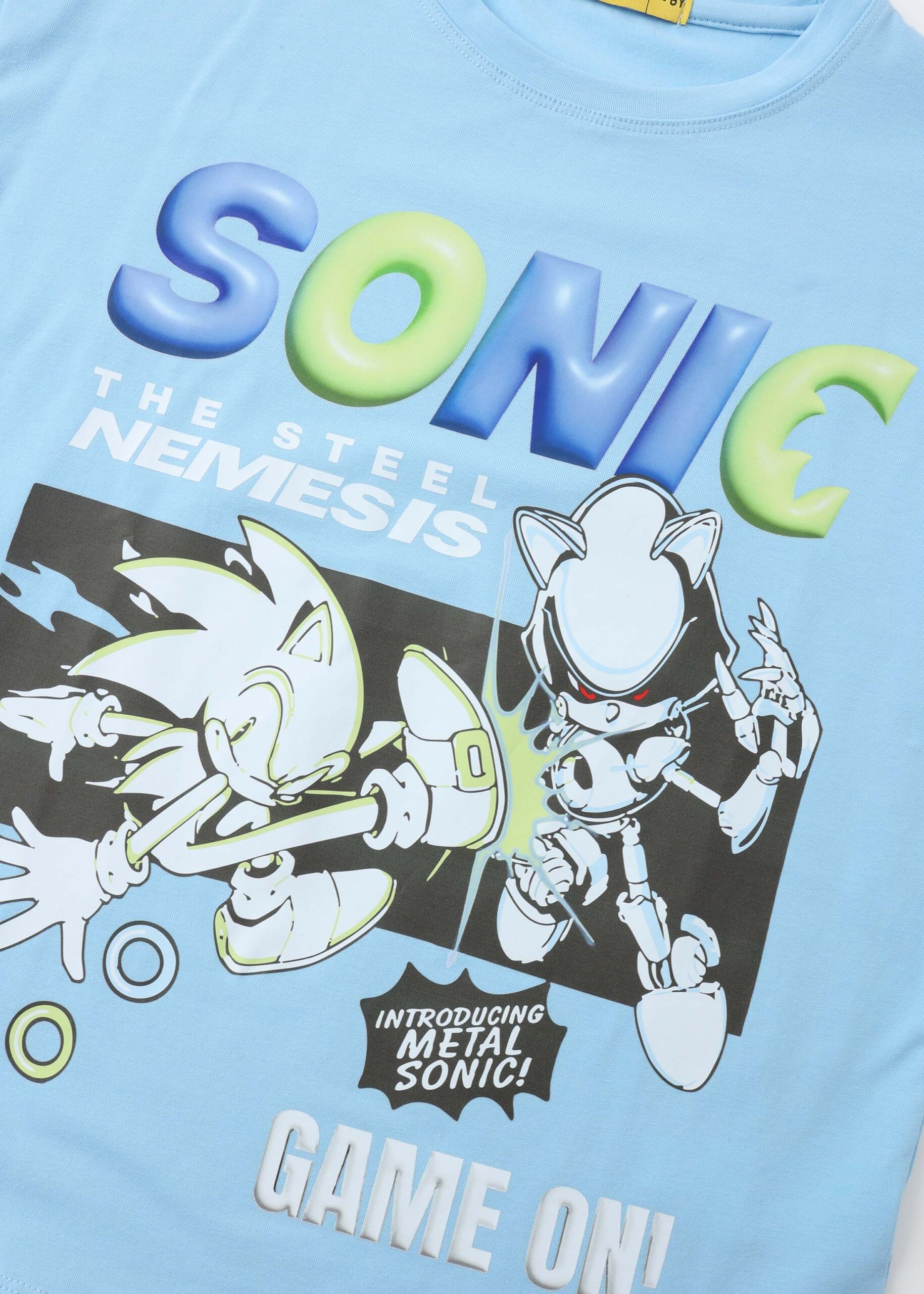 Kids boy t-shirt, “Sonic” printed from the front, round neck, short sleeves, modern and unique