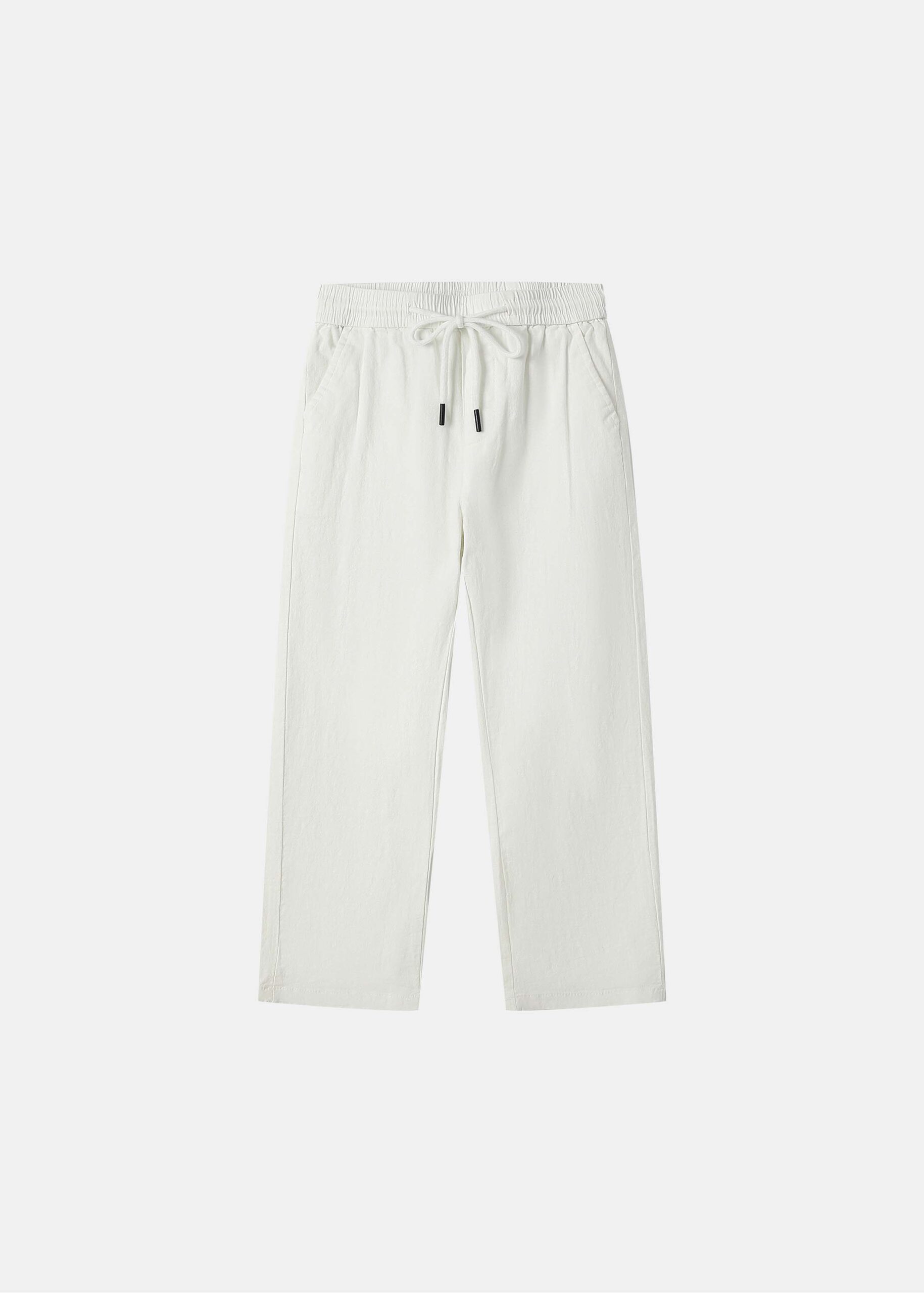 Kids boy trouser, plain, straight-leg, elastic waist with front tie, front pockets, practical and modern