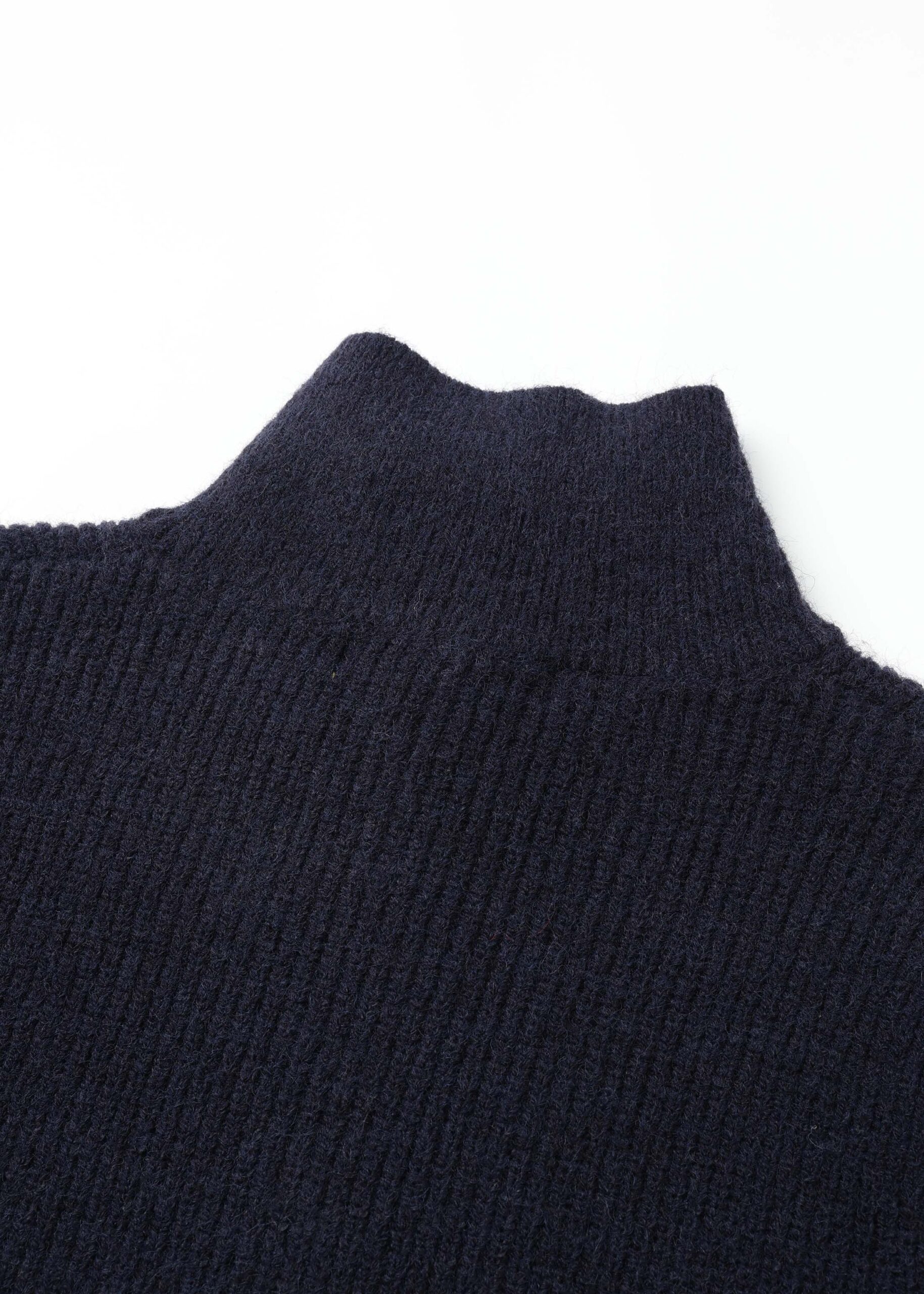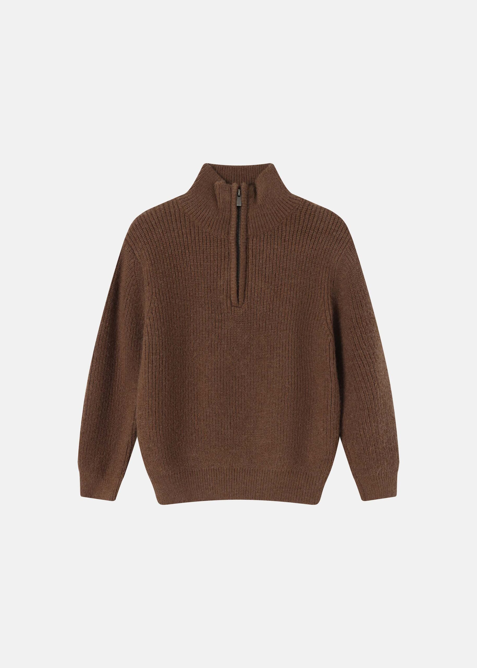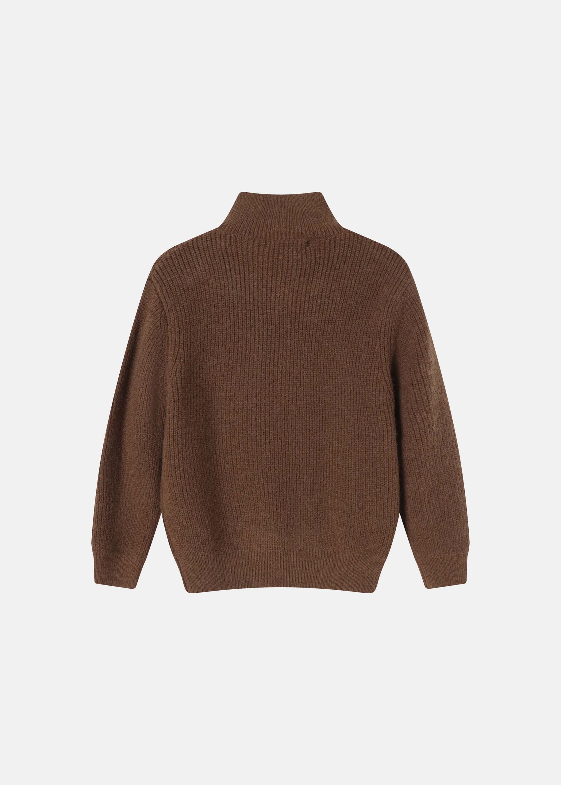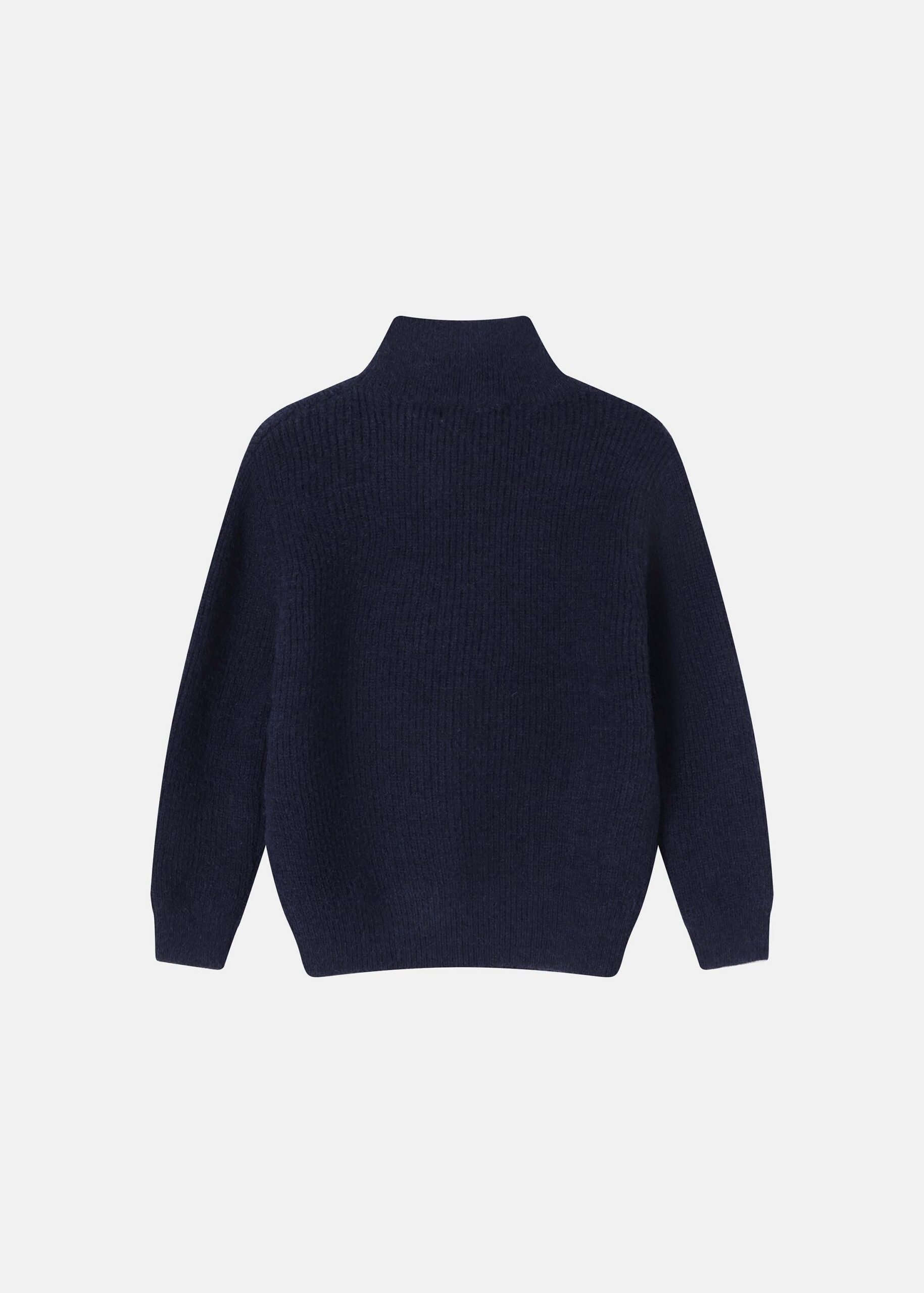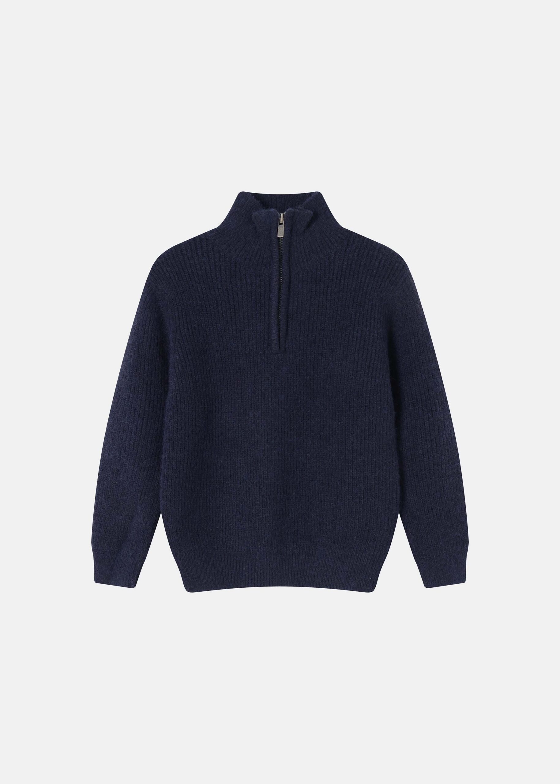 Kids boy blouse, knitted striped fabric, high neck with front zipper closure, long sleeves with tight cuff, warm and unique