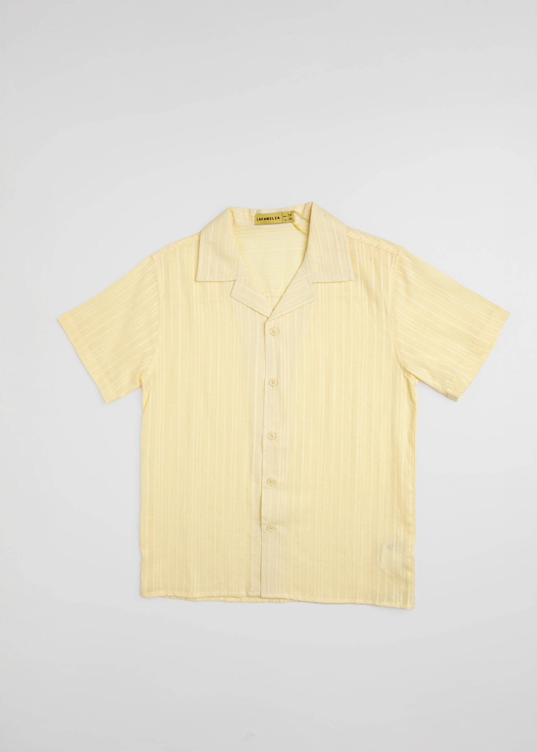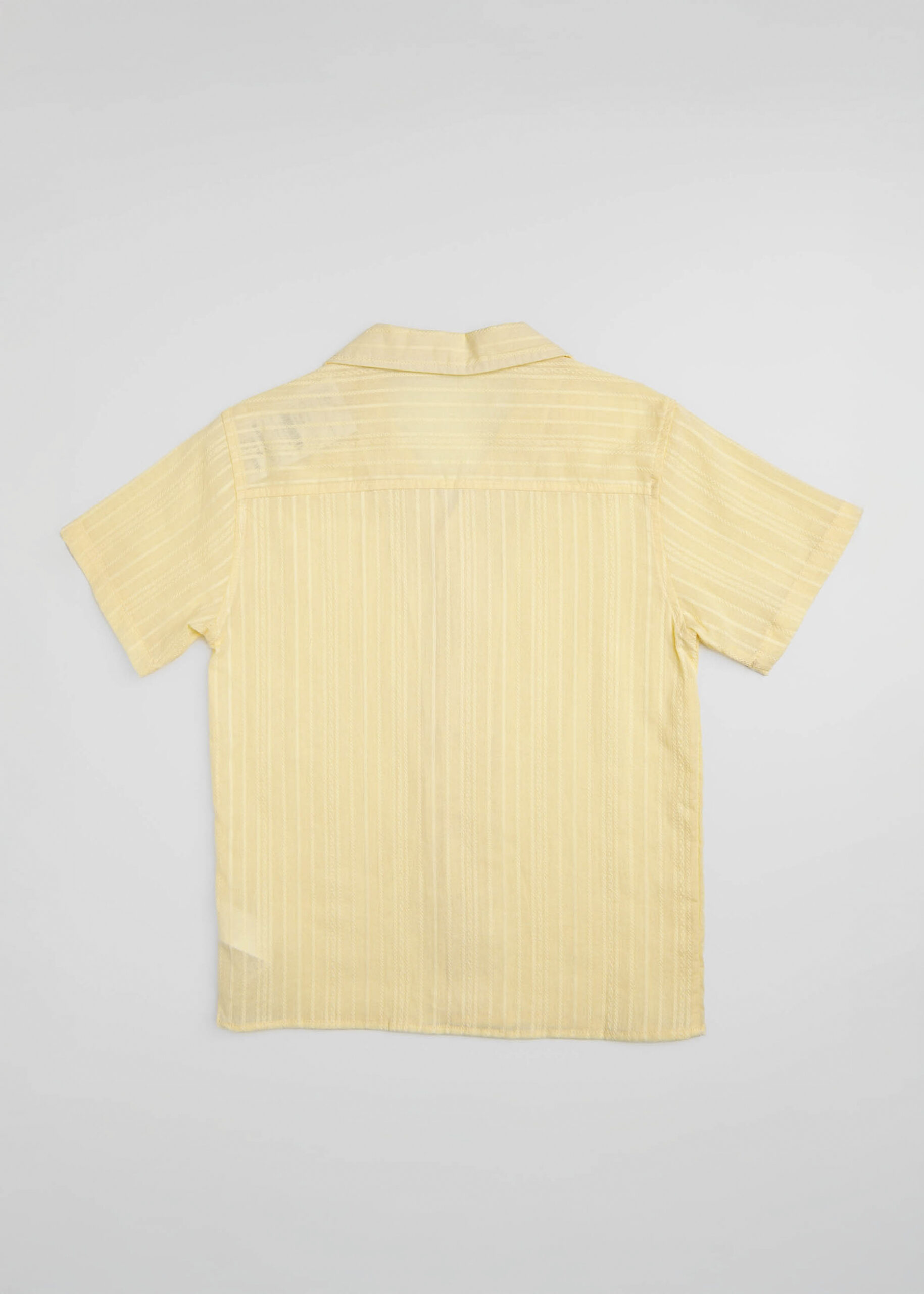 Kids boy shirt, striped, rolled V collar, front buttons to close, short sleeves, unique and modern