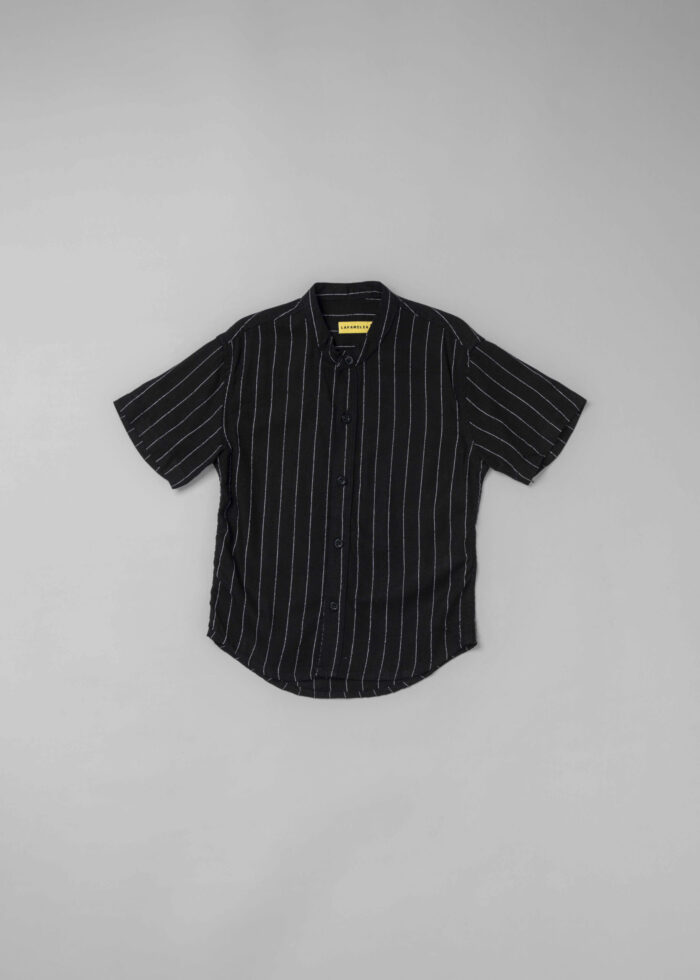 Kids boy shirt, striped, round neck with front buttons to close, short sleeves, unique and practical