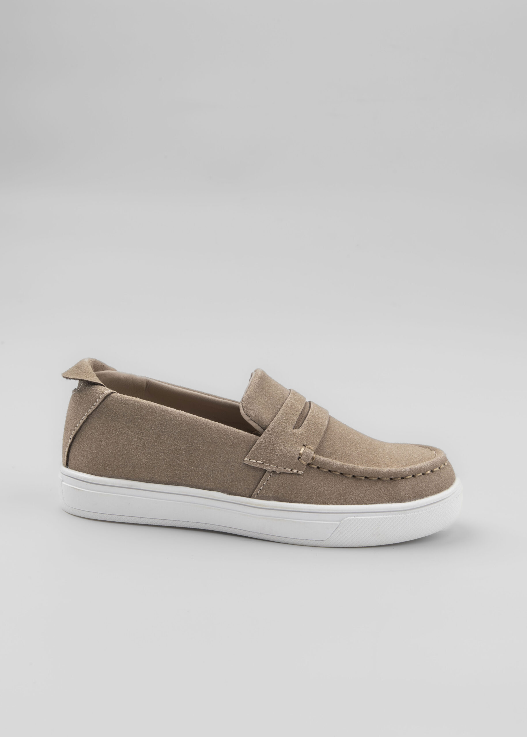 Kids boy topsider, suede, round toe, rubber sole, upper strap decor, unique and modern