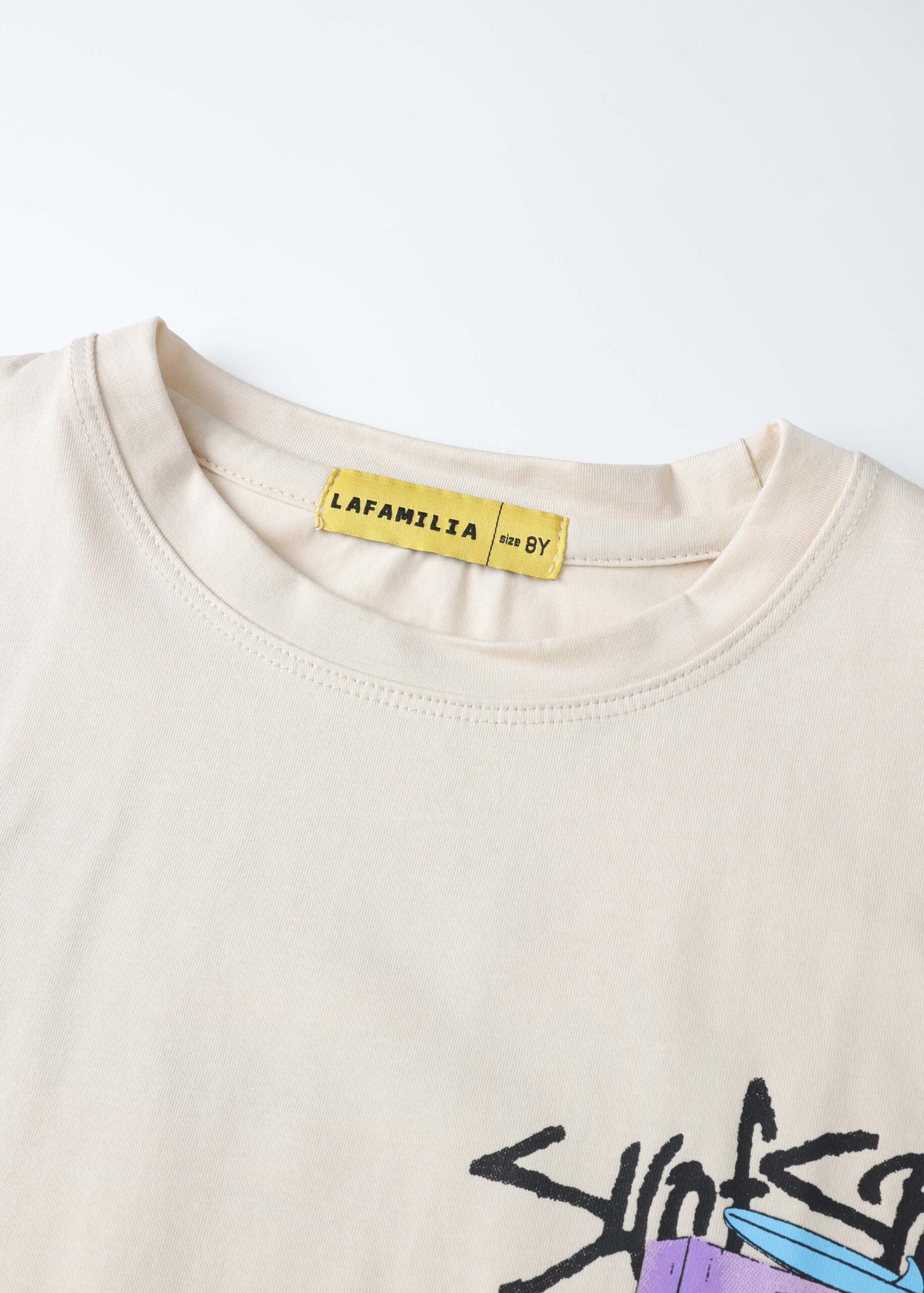 Kids boy t-shirt, “Surf Shop”printed from the front and back, round neck, short sleeves, practical and modern