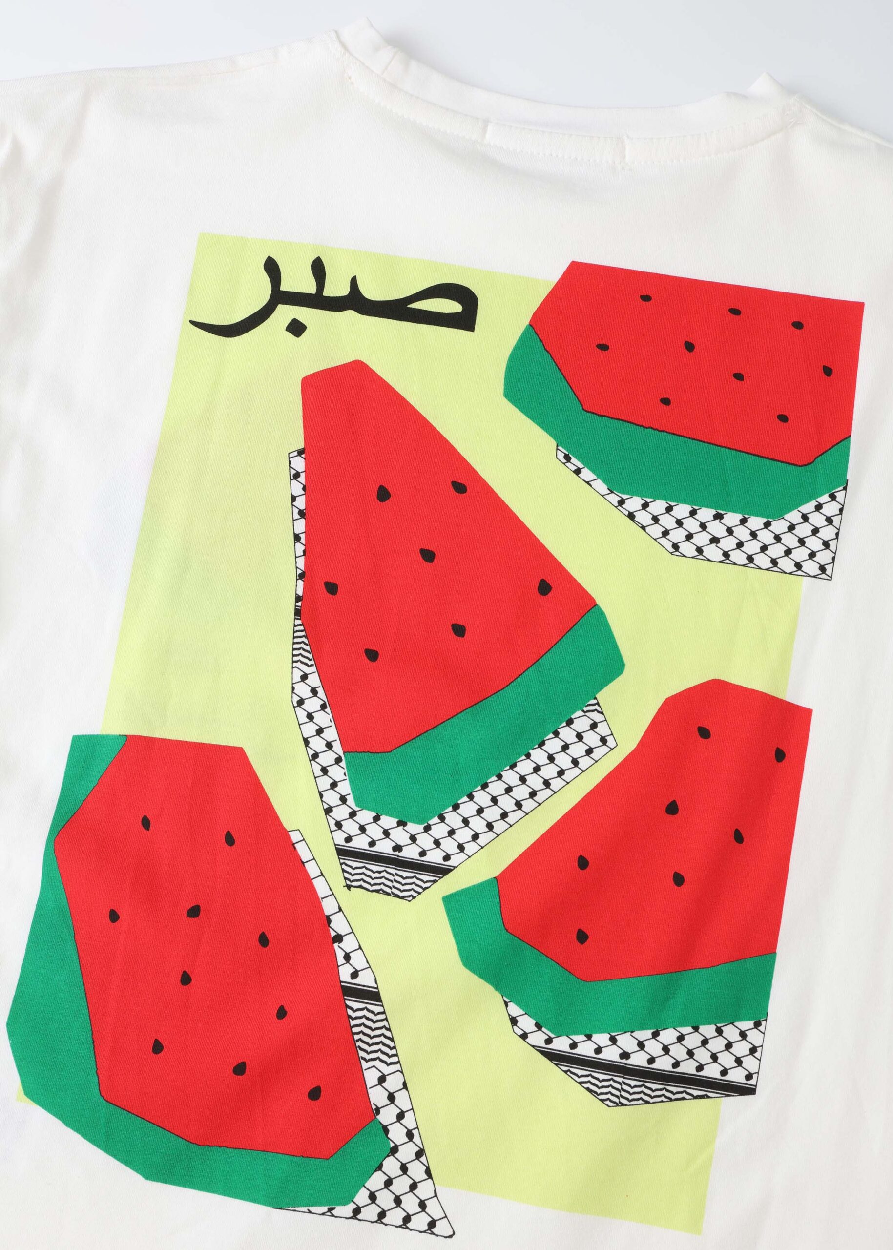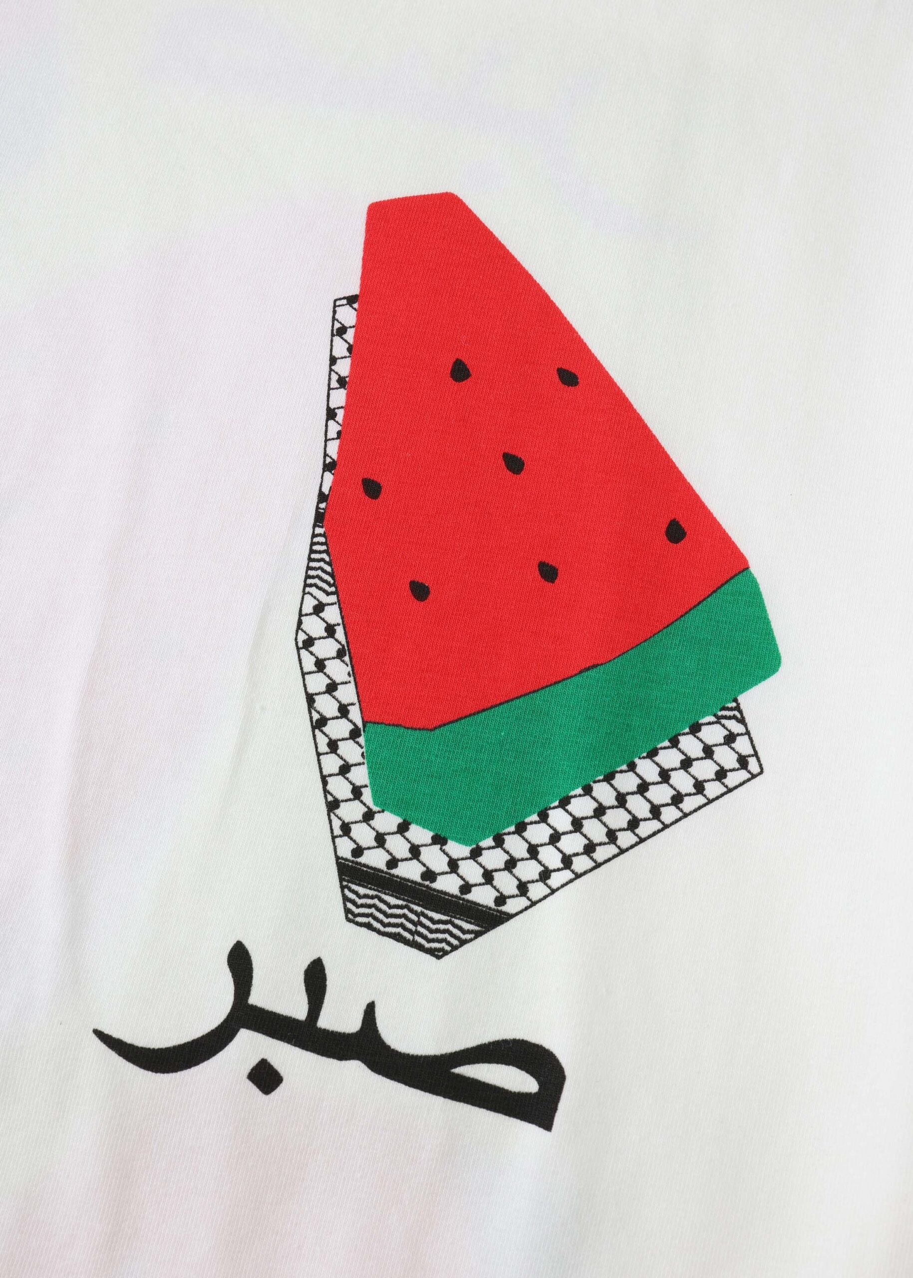 Kids boy t-shirt, “صبر” with watermelon and Palestinian Keffiyeh printed, round neck, short sleeves, unique and modern
