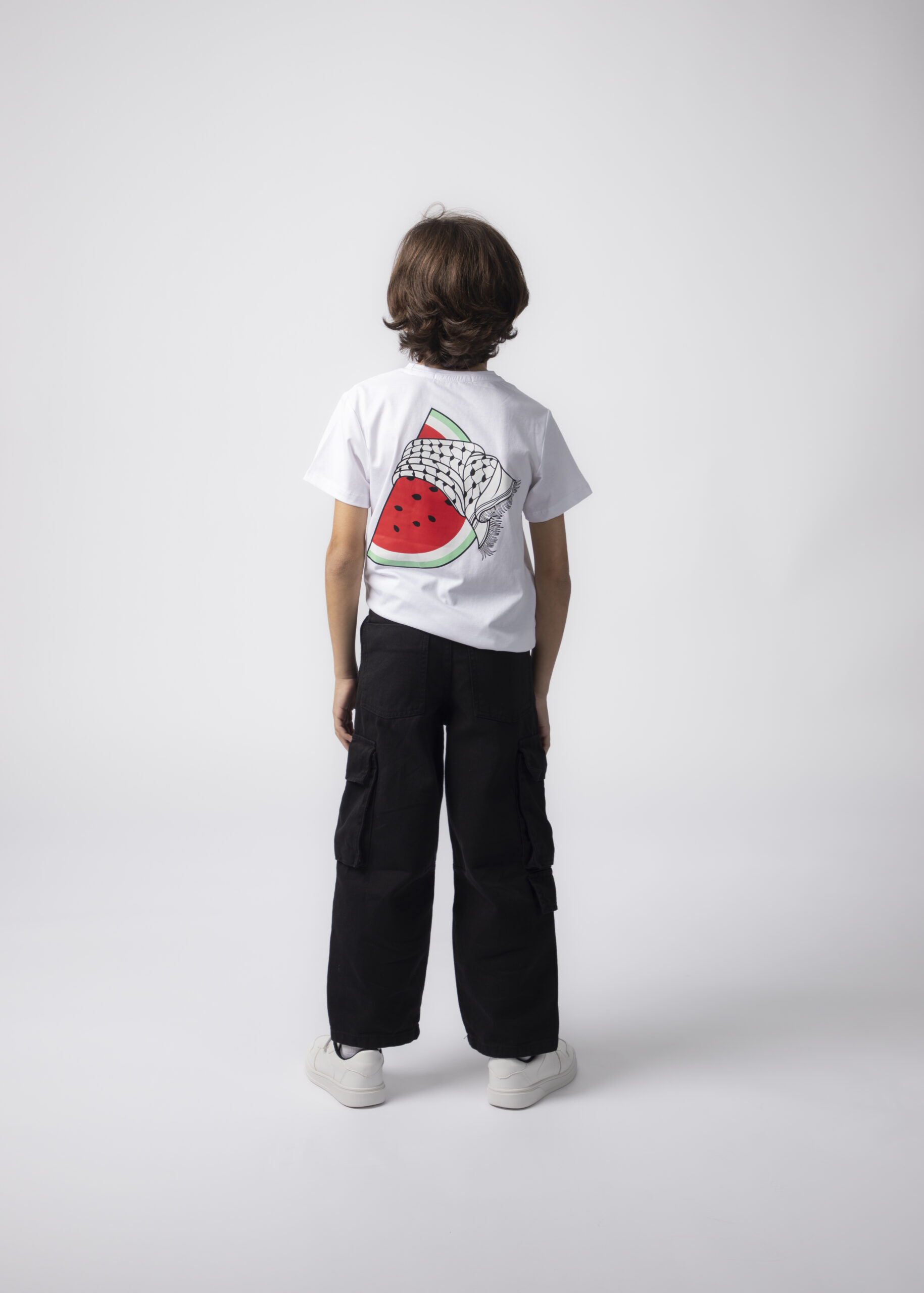 Kids boy t-shirt, keffiyeh printed from the front, round neck, short sleeves, unique and practical