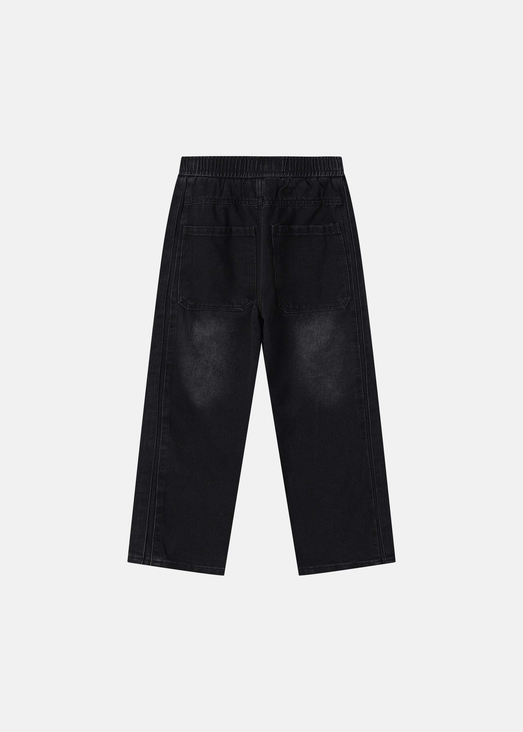 Kids boy trouser, jeans, wide-leg, elastic waist with front tie, front and back pockets, unique and modern