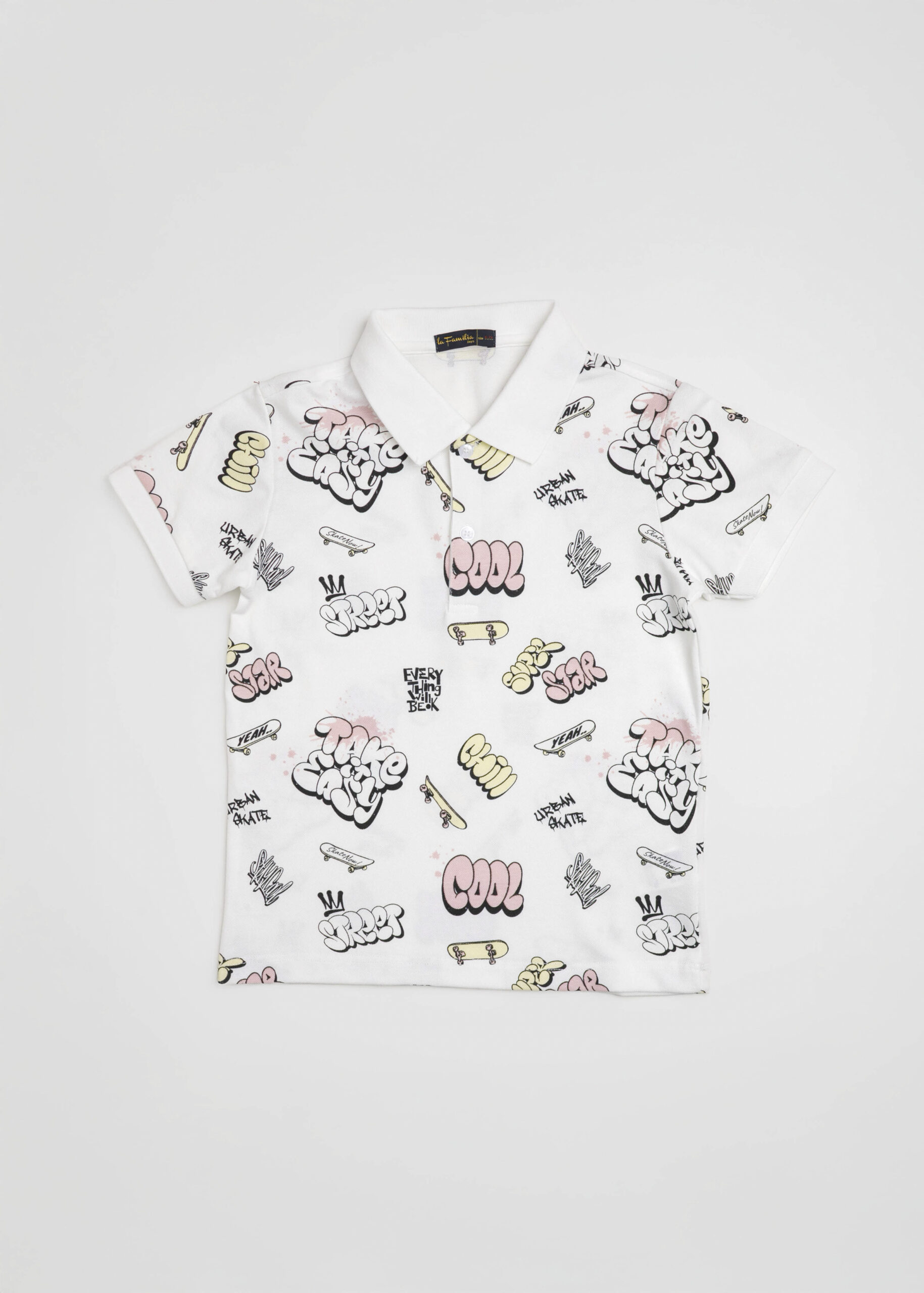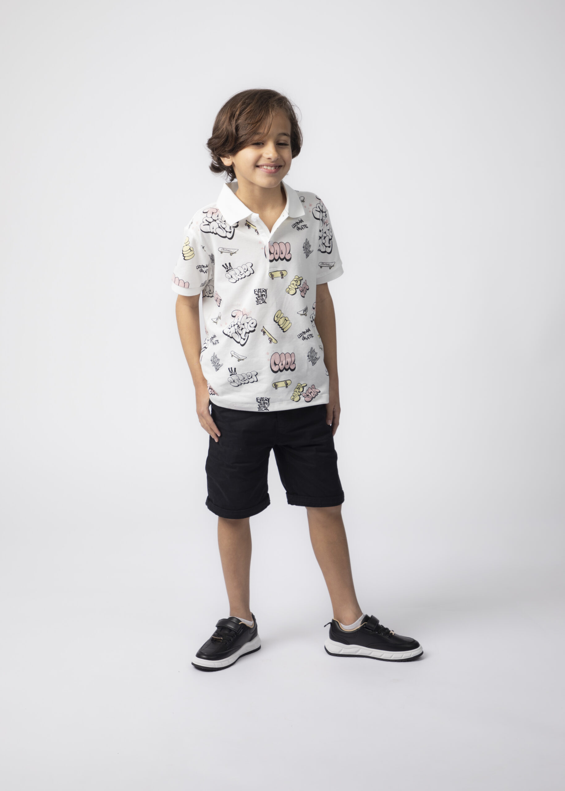 Kids boy polo shirt, writings printed, rolled collar with front buttons, short sleeves, unique and modern