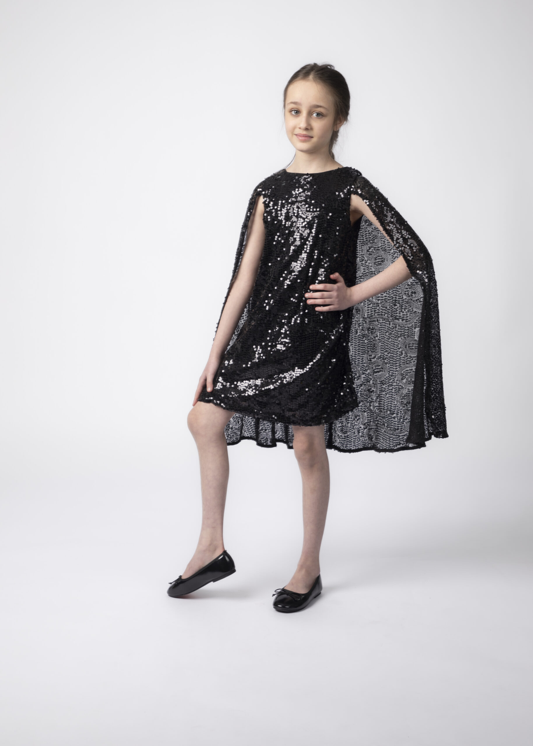 Kids girl dress, short, beads decor, sleeveless with shawl design on the shoulders, round neck, unique and modern