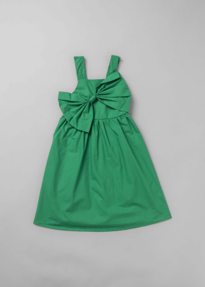 Kids girl dress, bow decor from the front, sleeveless, elastic back, unique and practical